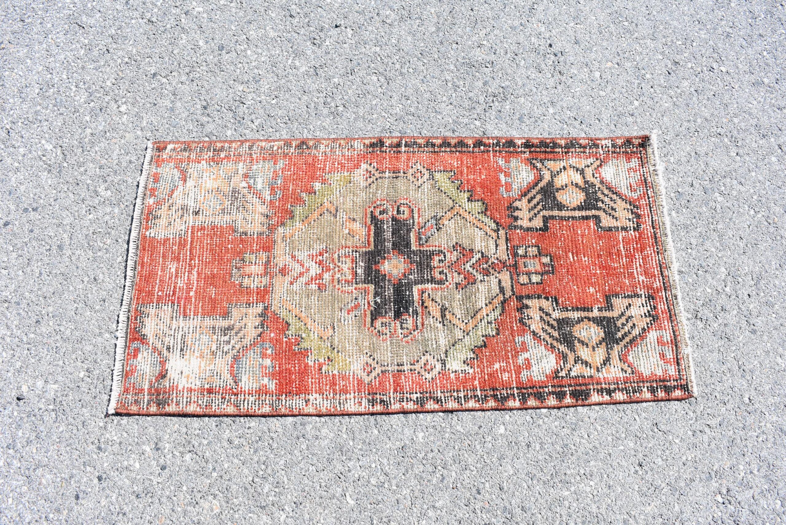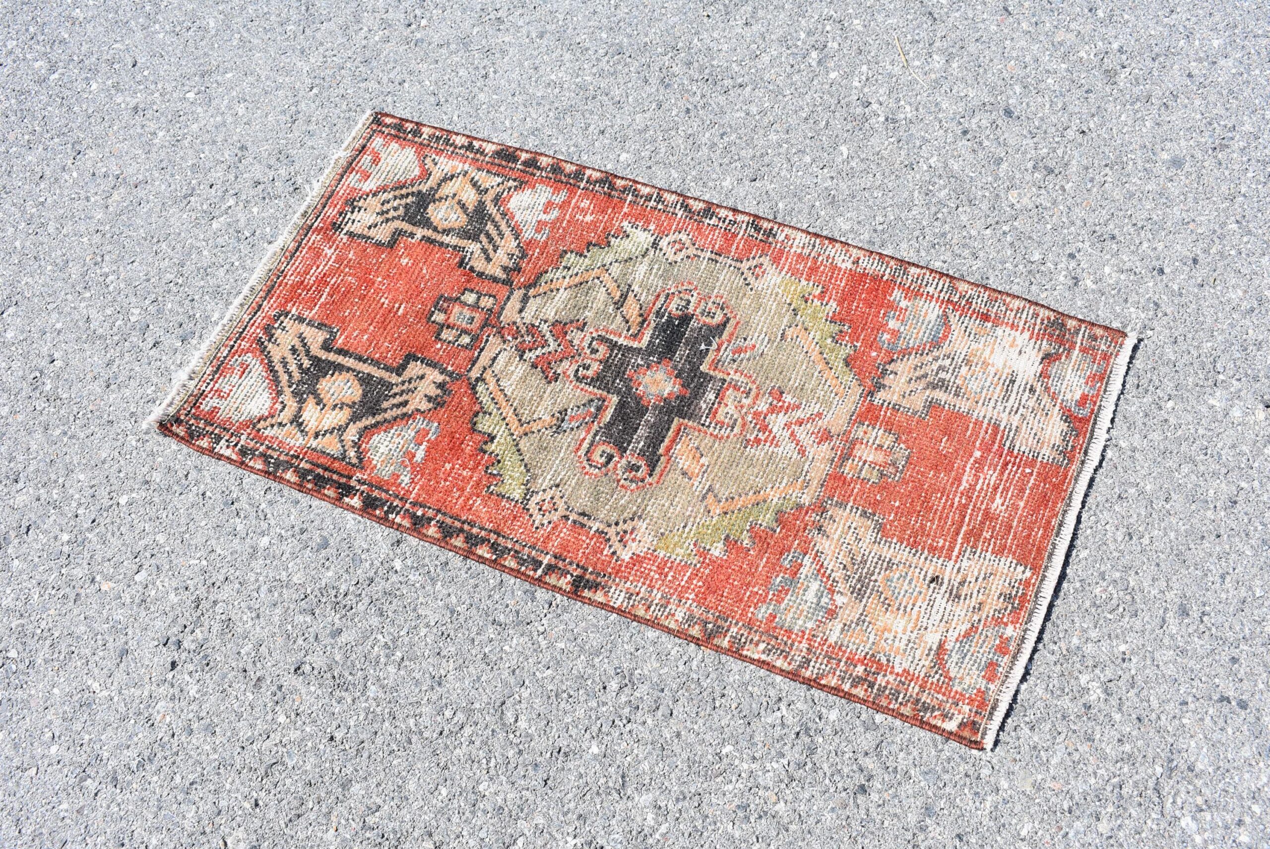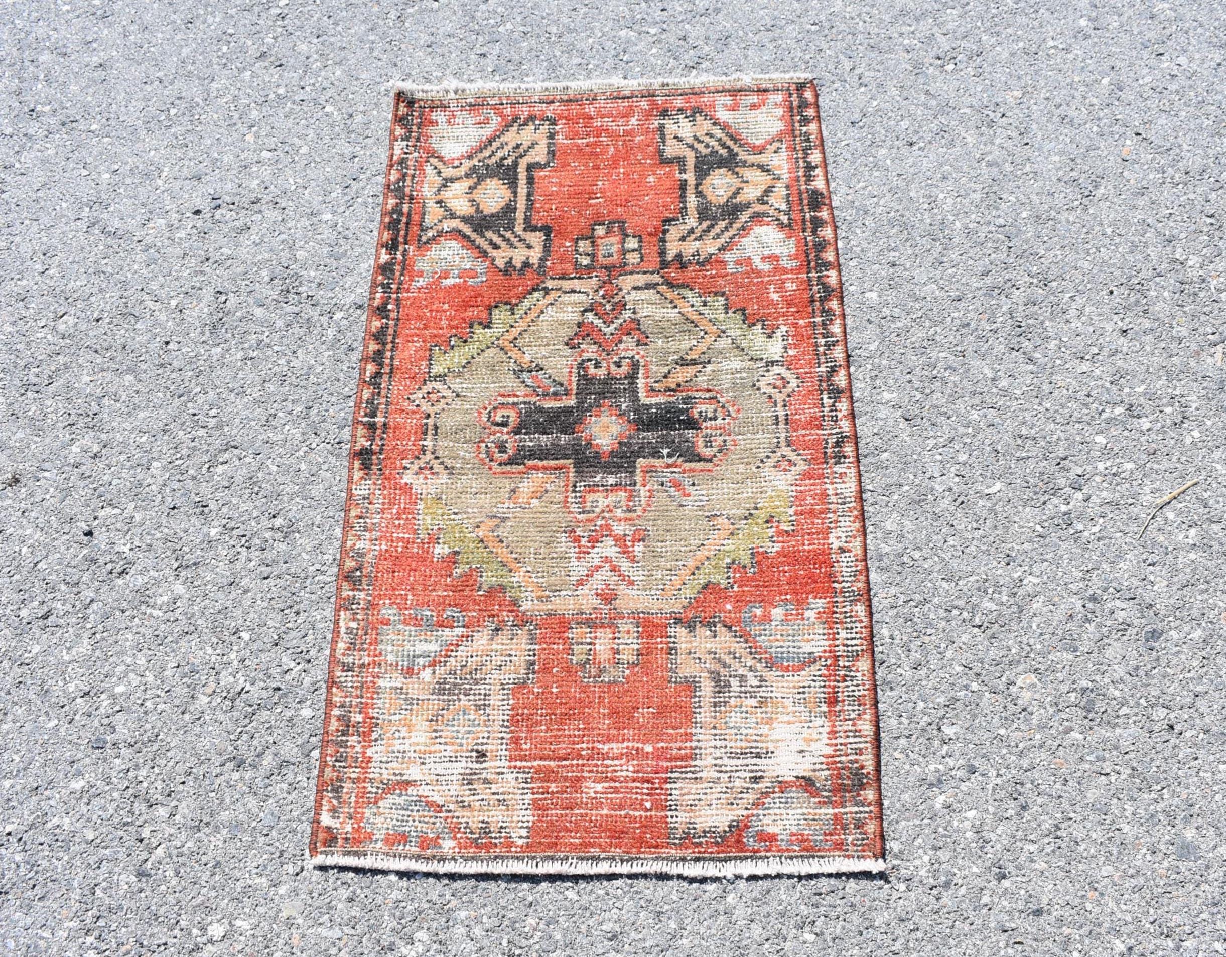 Lovely and unique 1.6 ft. x 3 ft. (50 cm x 91 cm) vintage Turkish rug hand-knotted in Turkey from organic wool. This is an authentic vintage Turkish rug from the 1980s that has worn beautifully to perfection.