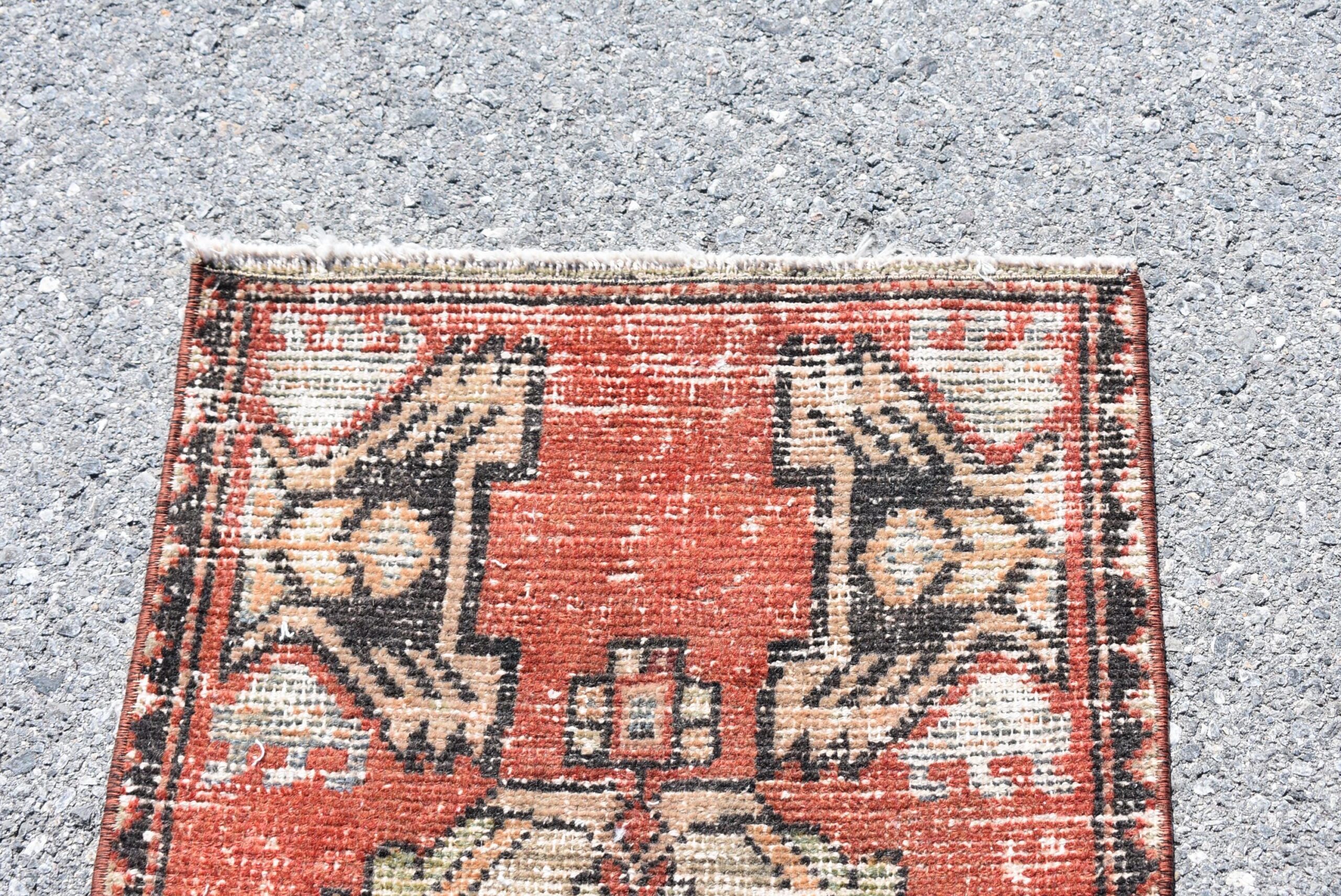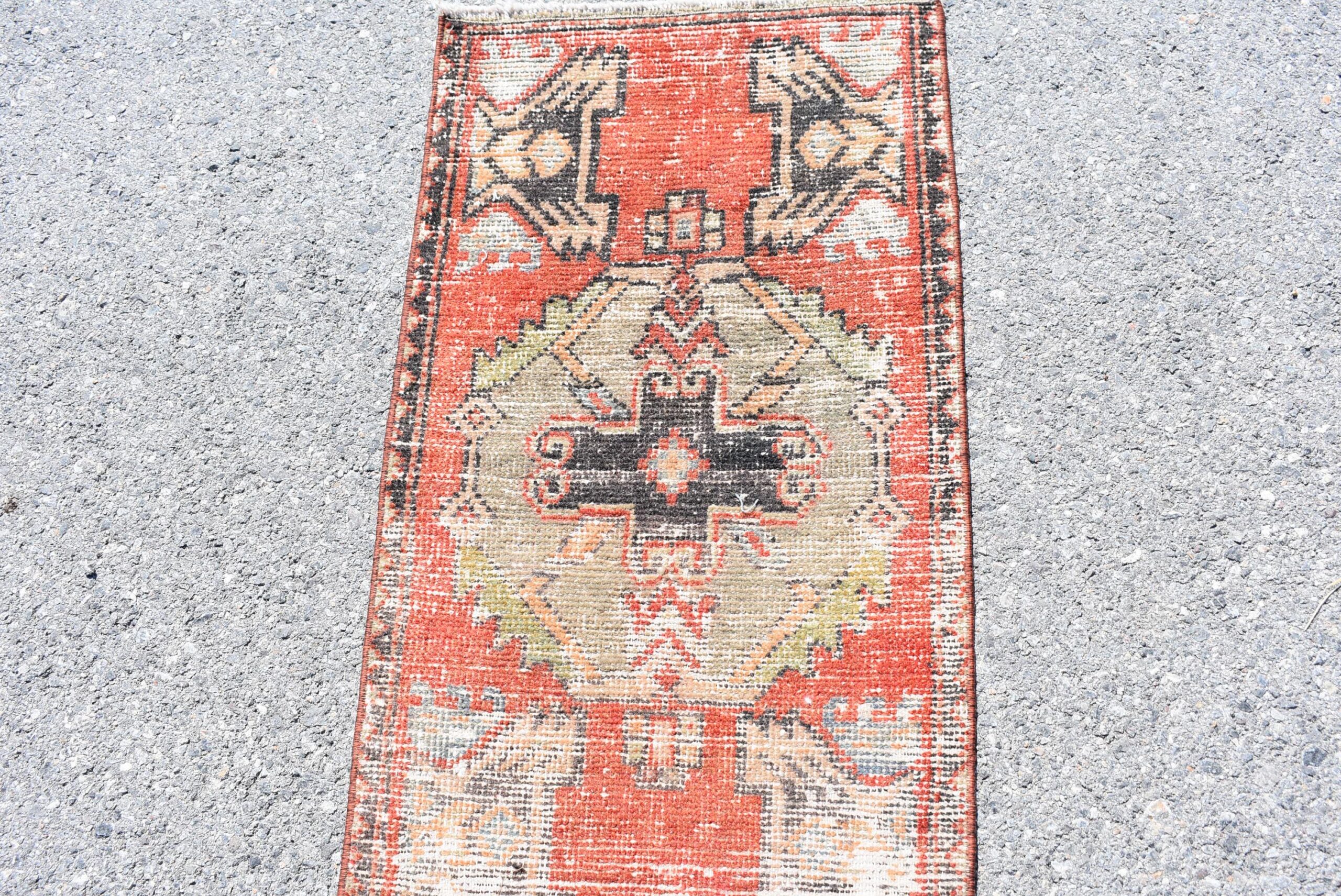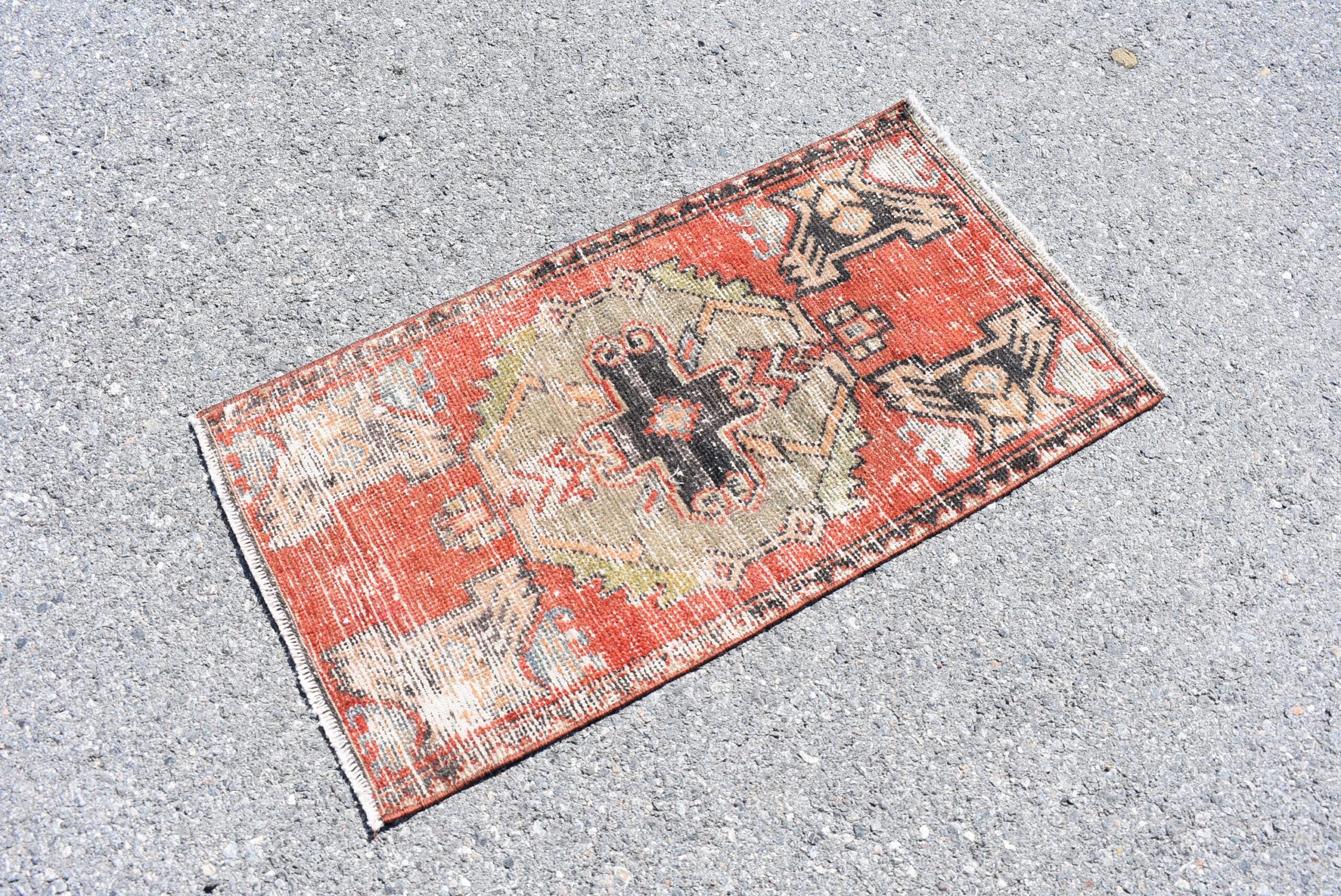 Lovely and unique 1.6 ft. x 3 ft. (50 cm x 91 cm) vintage Turkish rug hand-knotted in Turkey from organic wool. This is an authentic vintage Turkish rug from the 1980s that has worn beautifully to perfection.