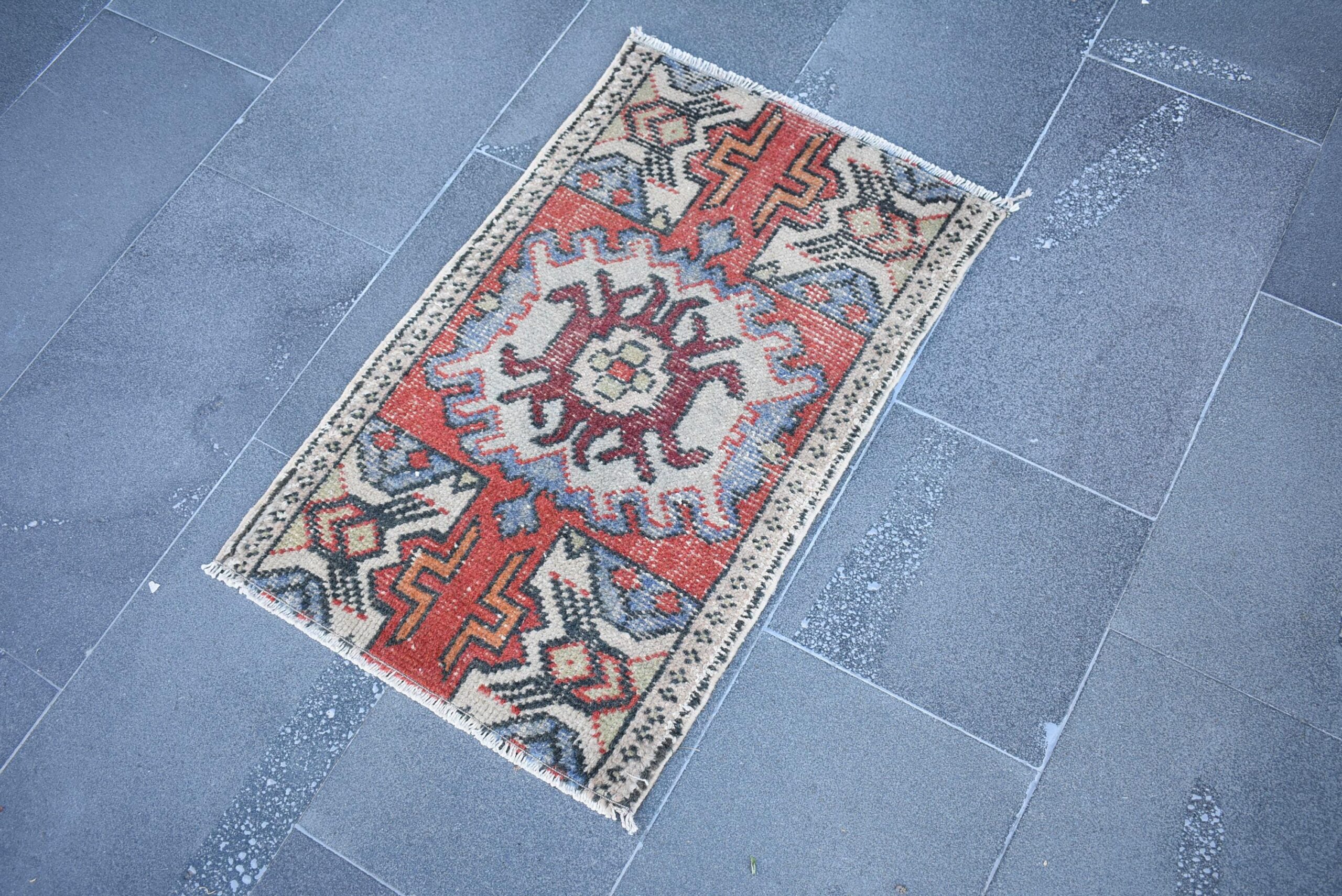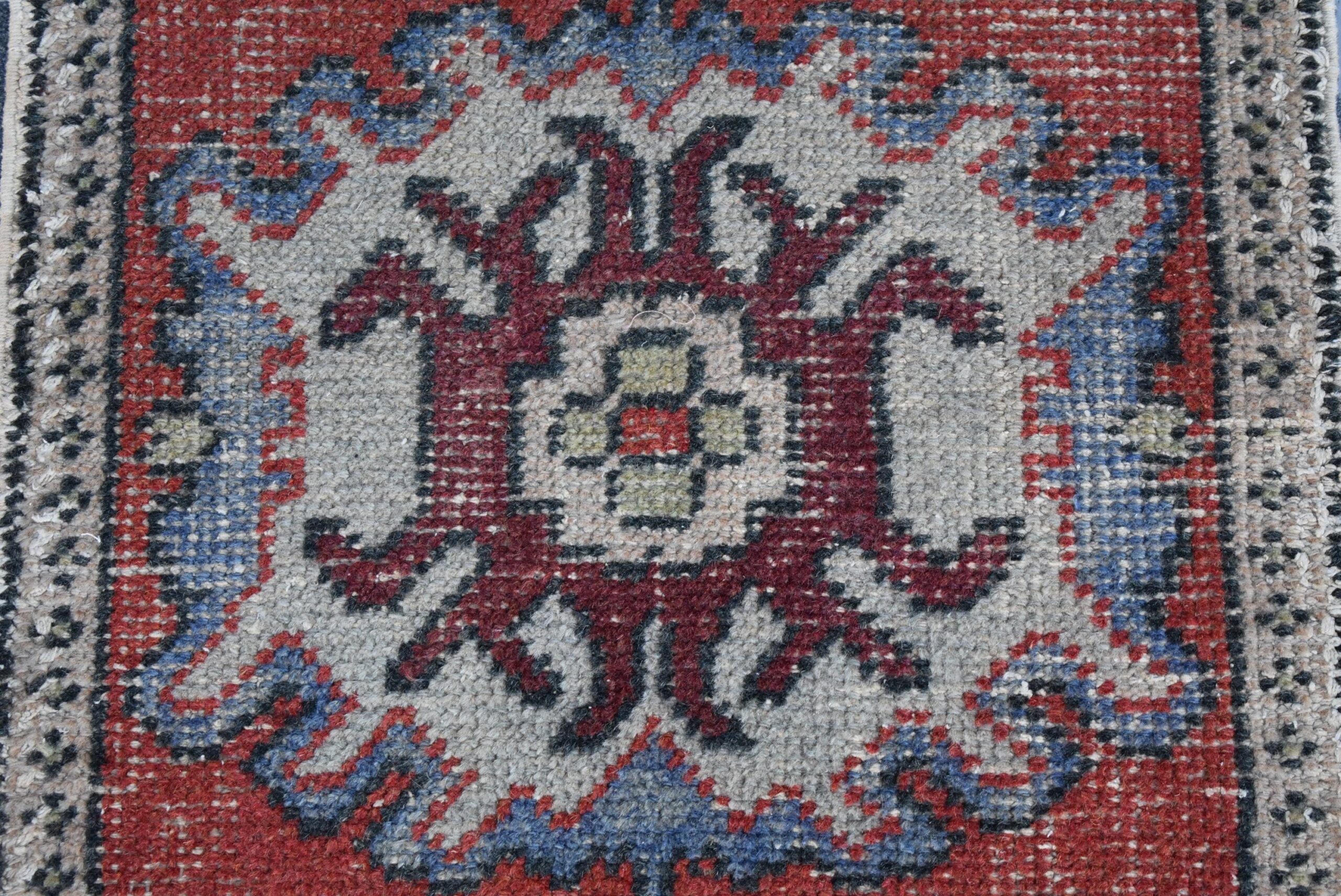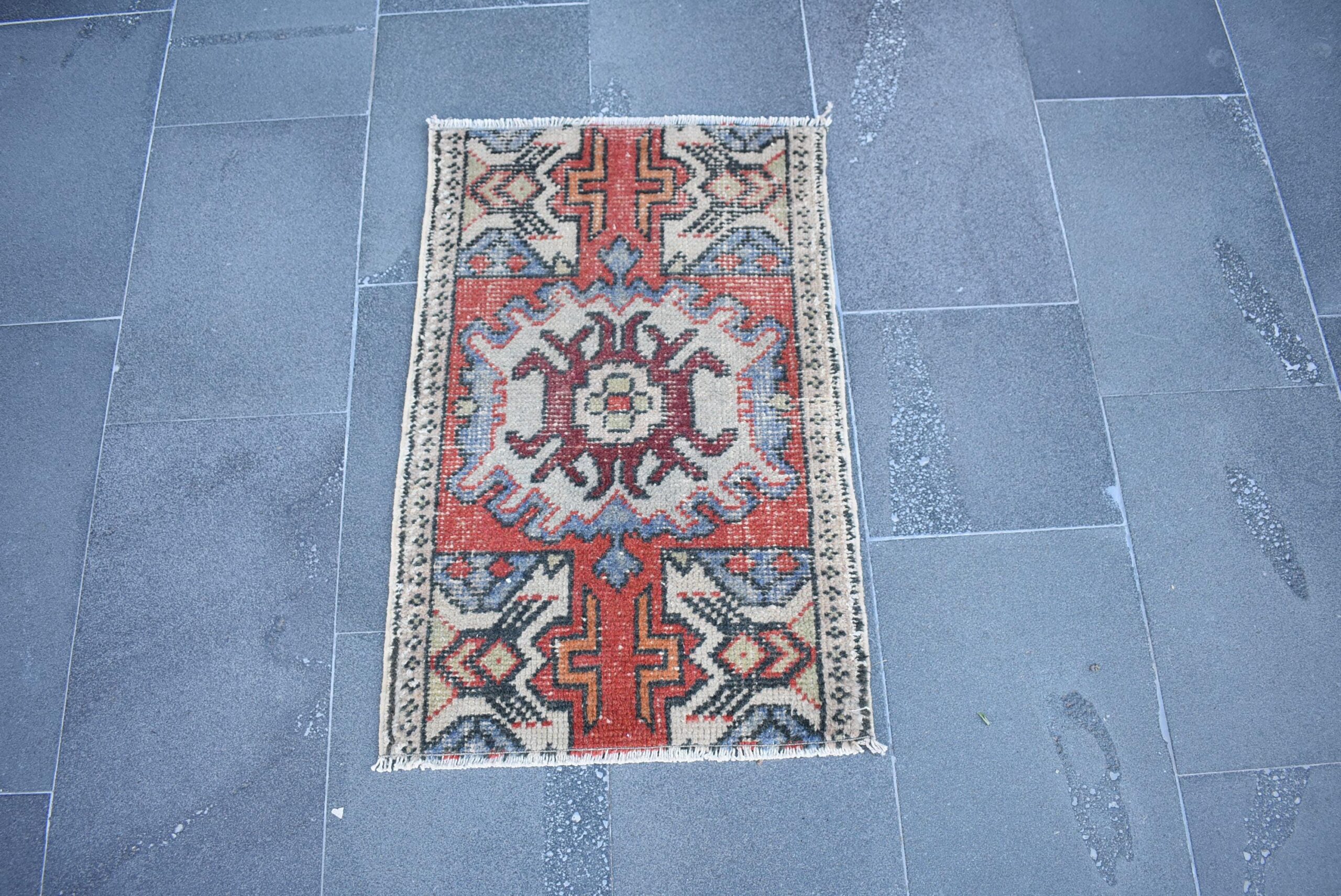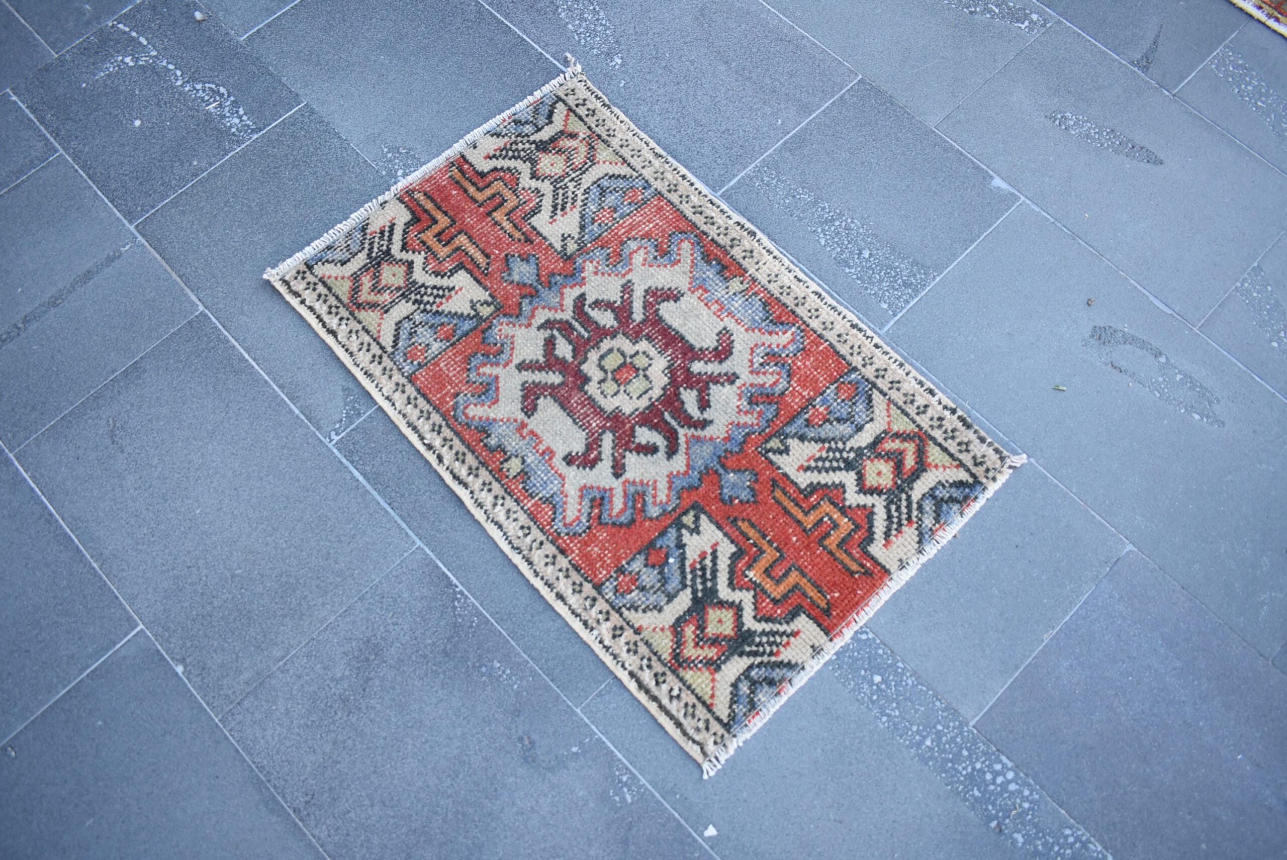 Lovely and unique 1.7 ft. x 2.7 ft. (53 cm x 82 cm) vintage Turkish rug hand-knotted in Turkey from organic wool. This is an authentic vintage Turkish rug from the 1970s that has worn beautifully to perfection.