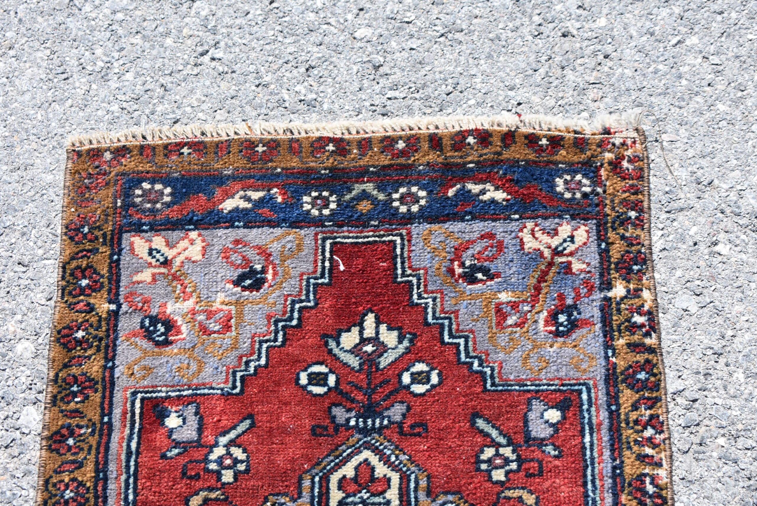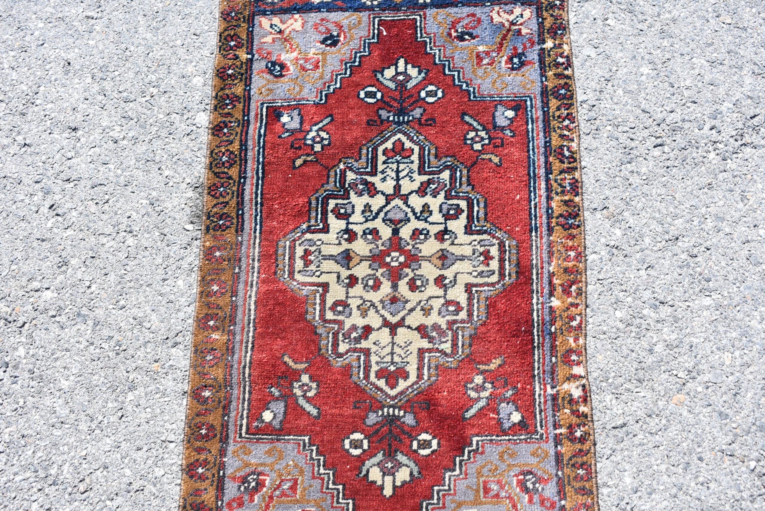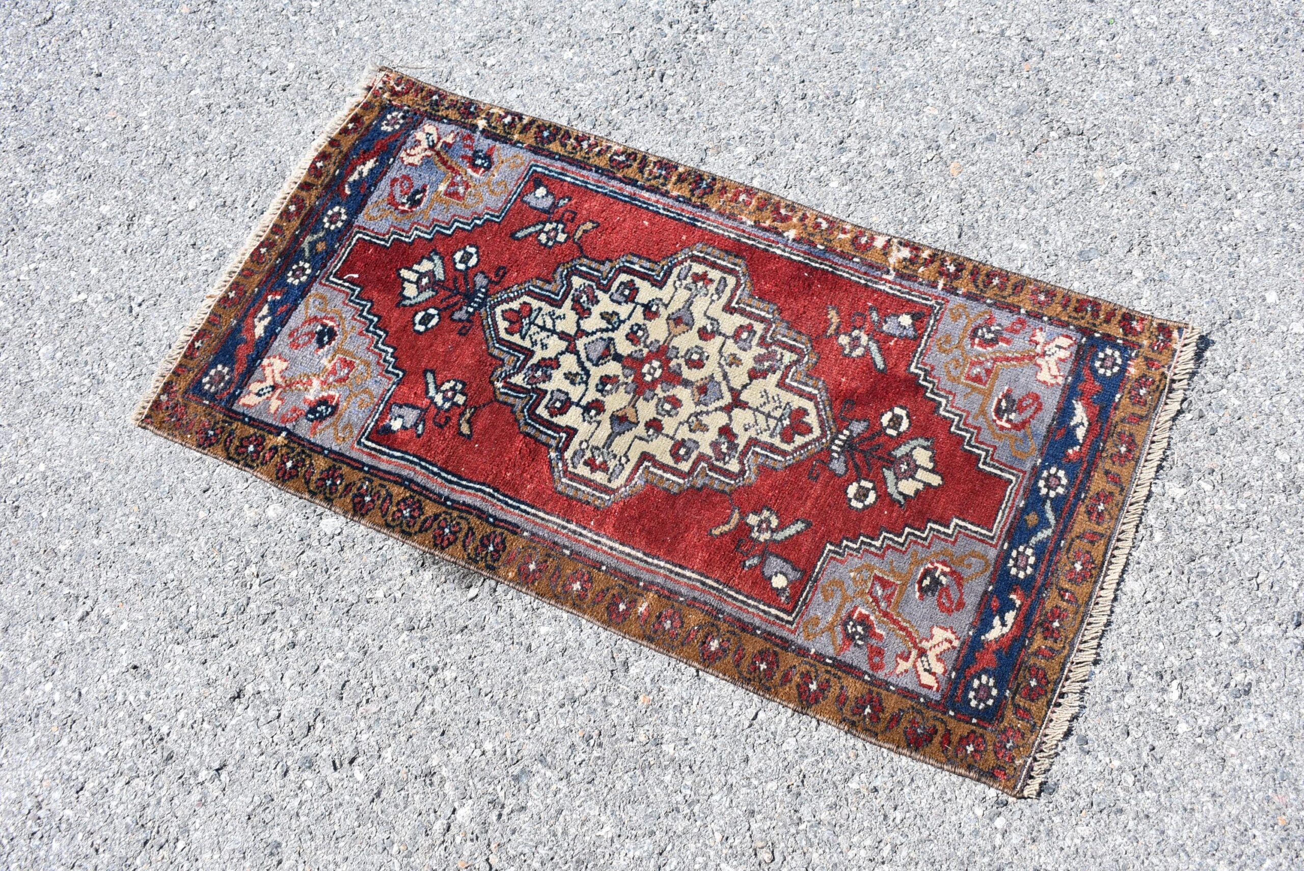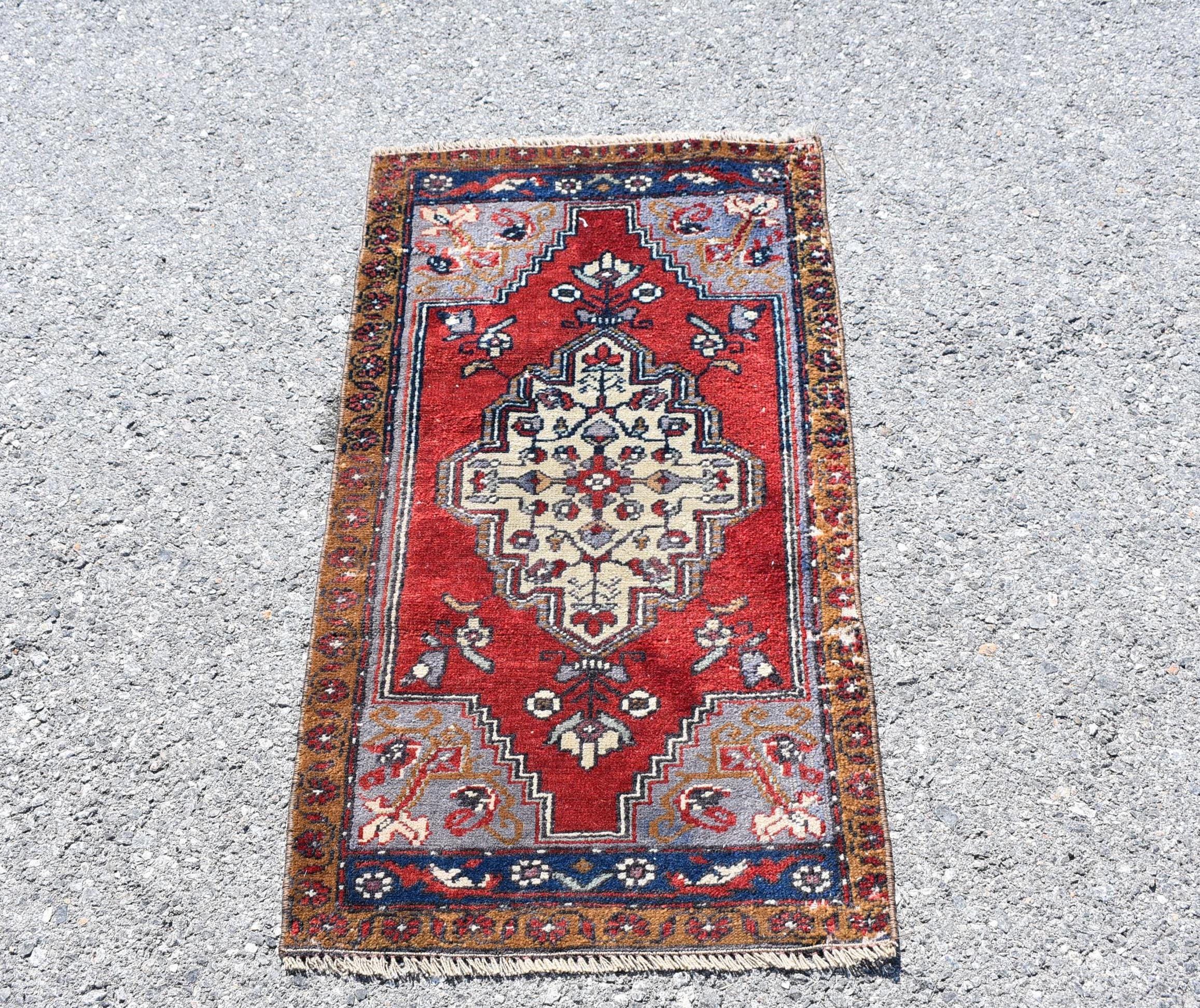 Pretty and one-of-a-kind 1.7 ft. x 3.1 ft. (52 cm x 96 cm) vintage Turkish rug hand-knotted in Turkey from organic wool. This is an authentic vintage Turkish rug from the 1990s that has worn splendidly to perfection.