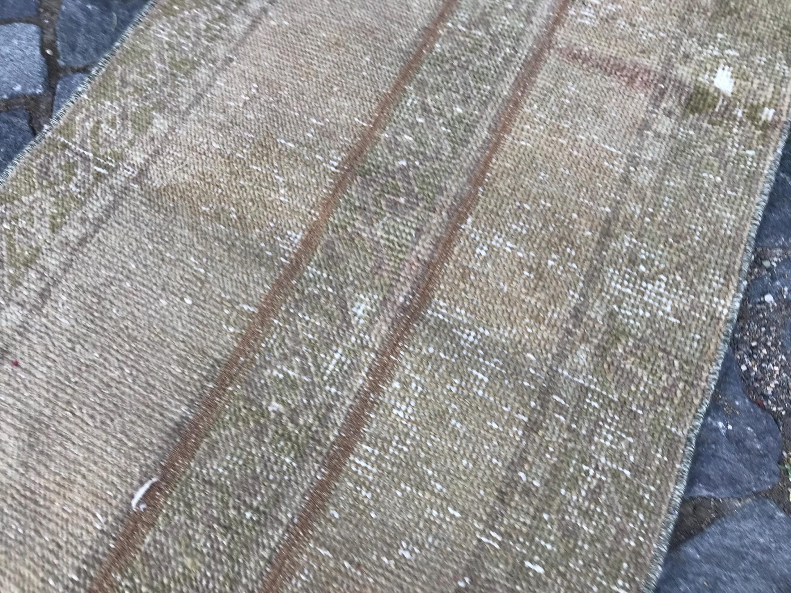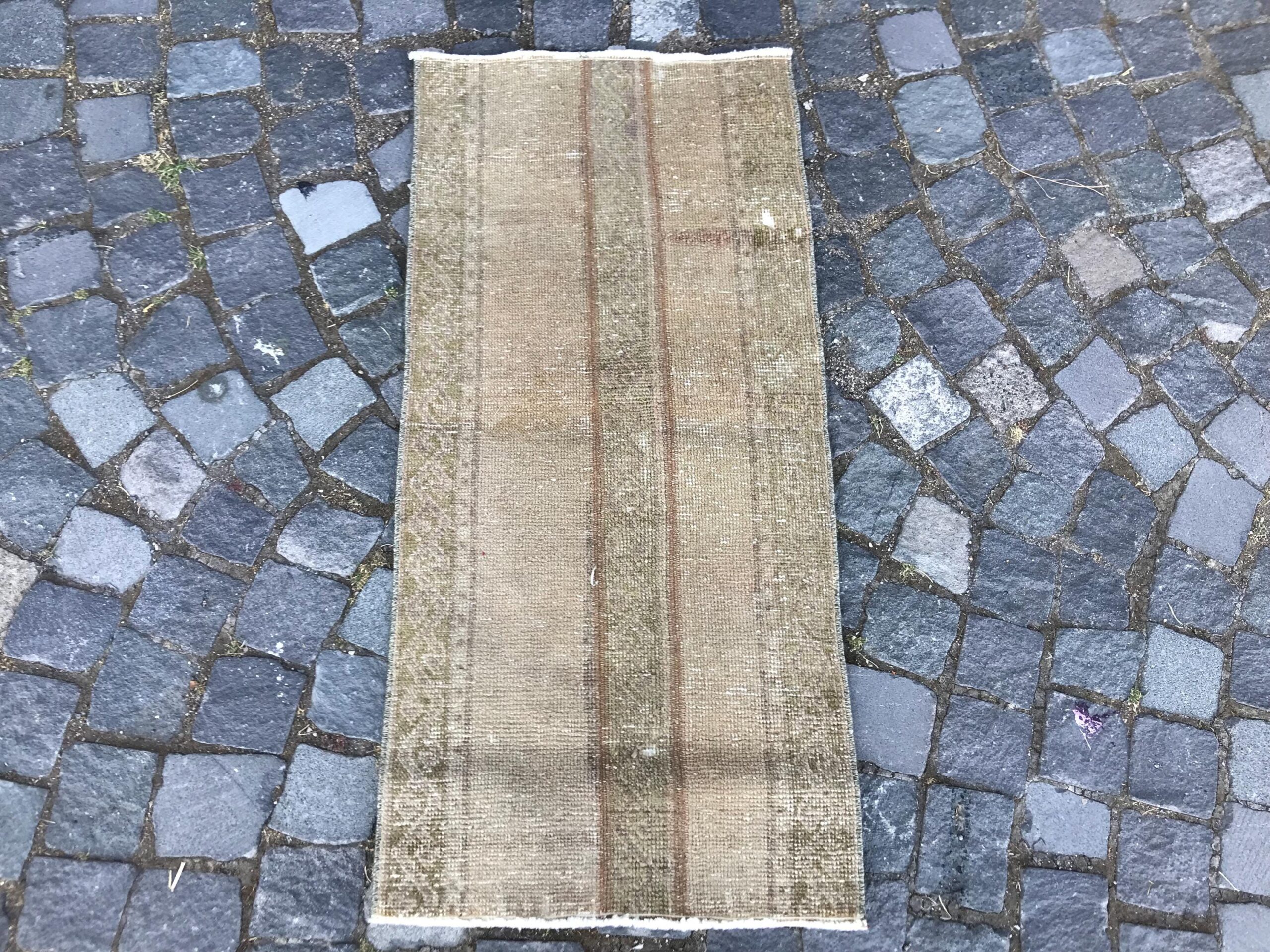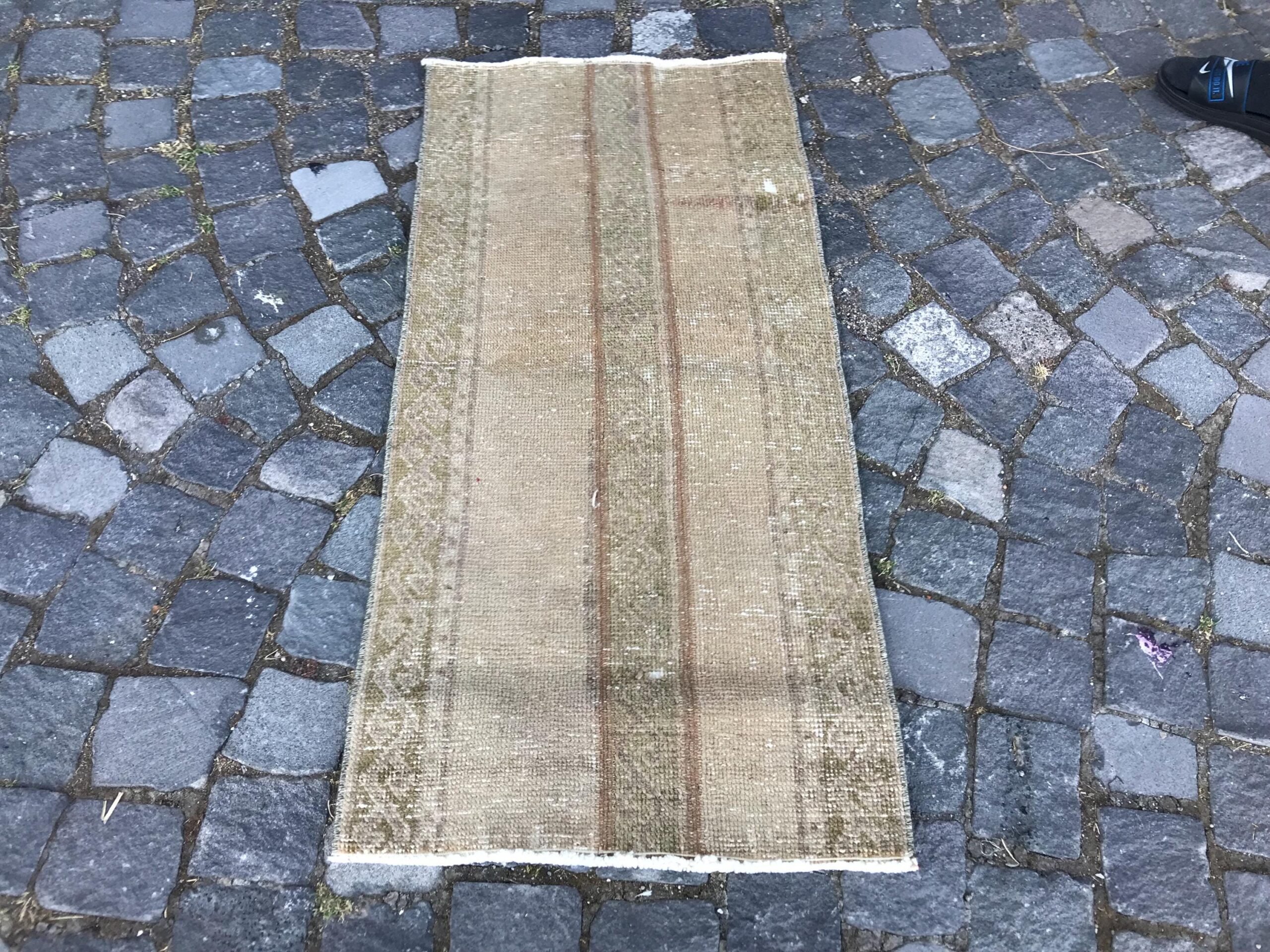 Beautiful 1.7 ft. x 3.7 ft. (53 cm x 112 cm) patchwork rug made from different pieces of hand-knotted vintage Turkish rugs to end-up with an admirable unique piece of art.