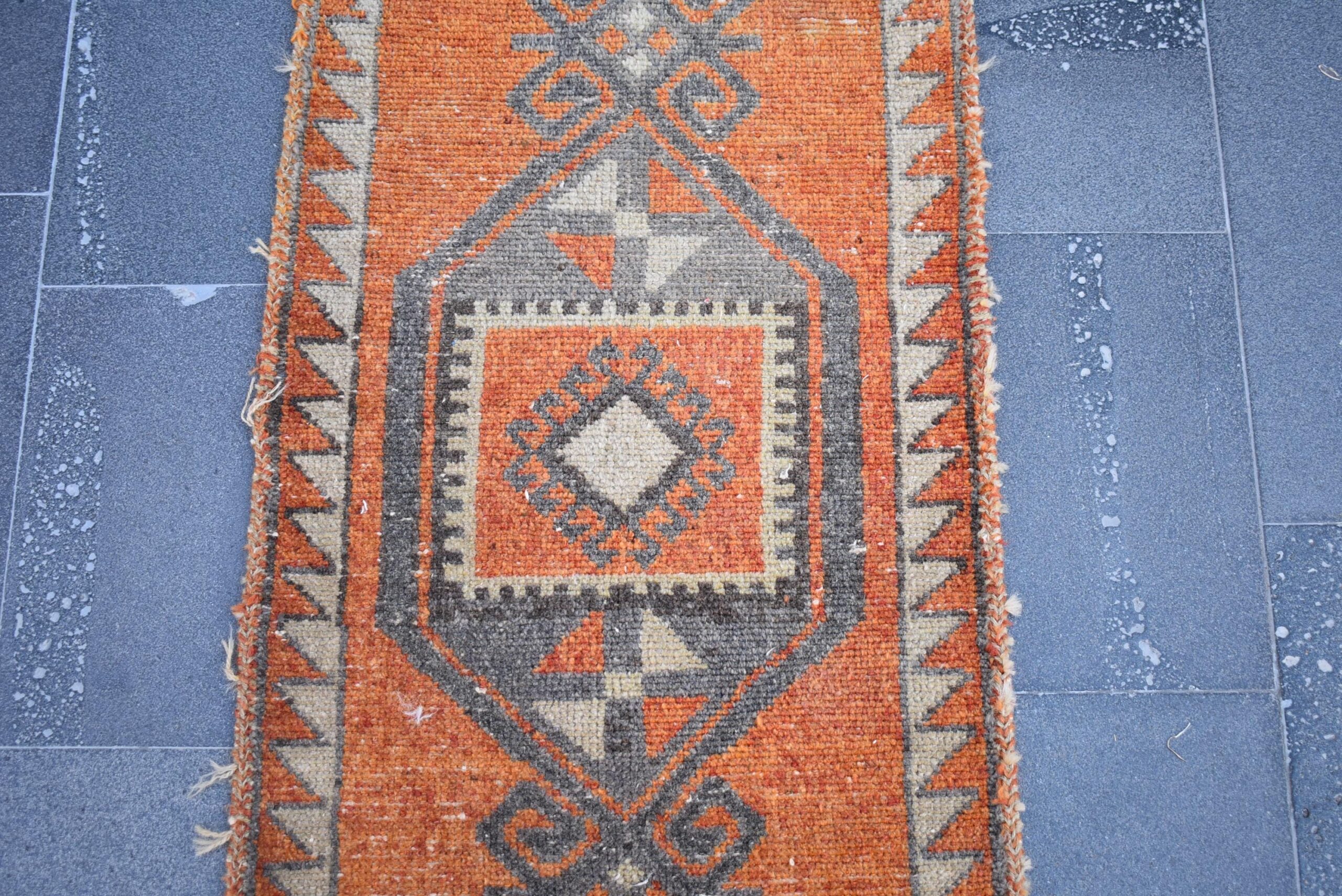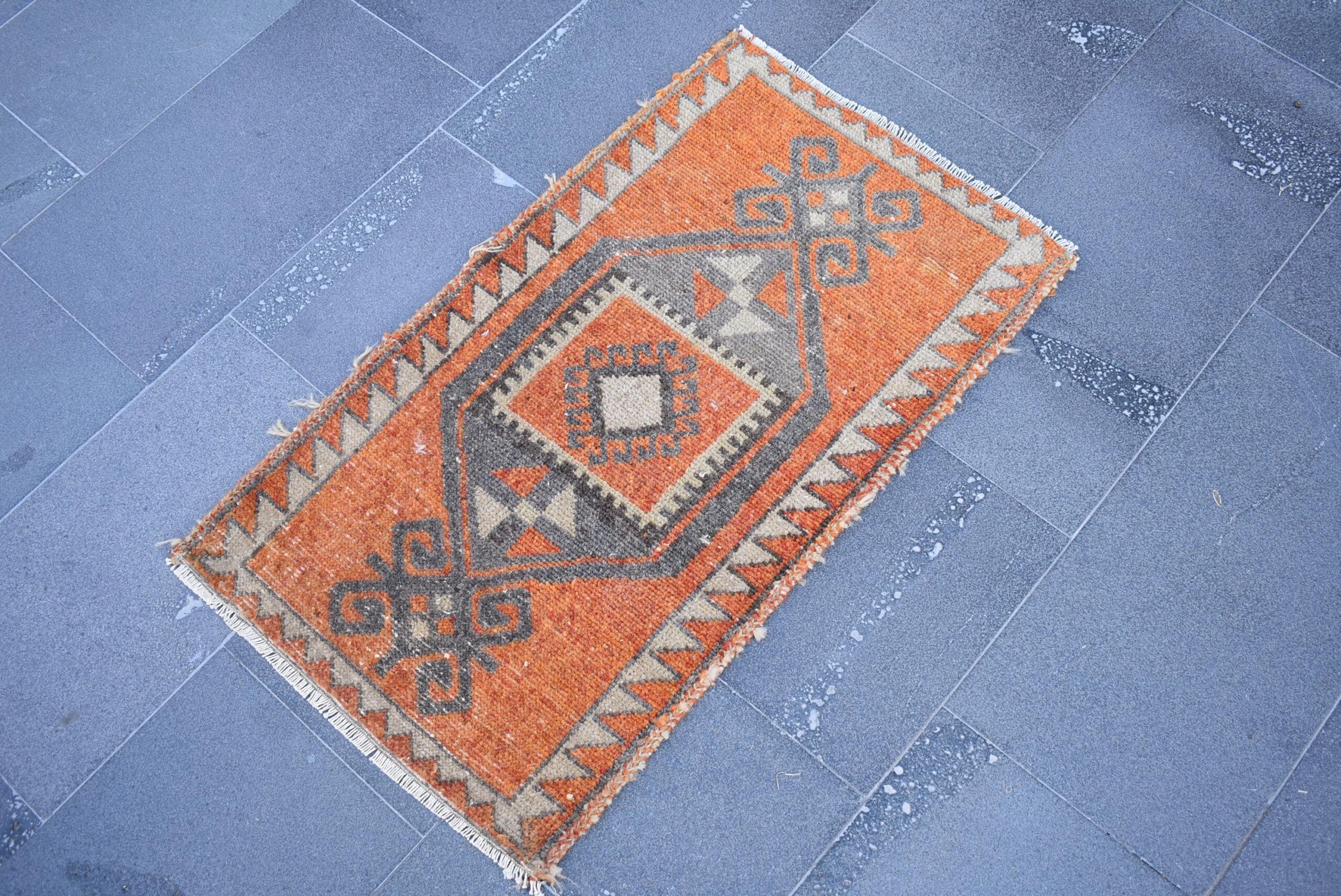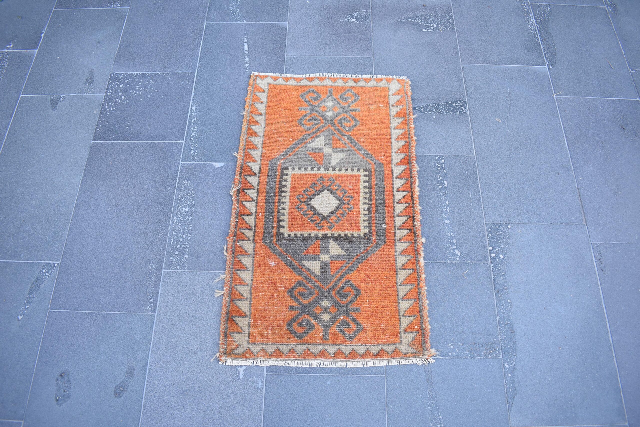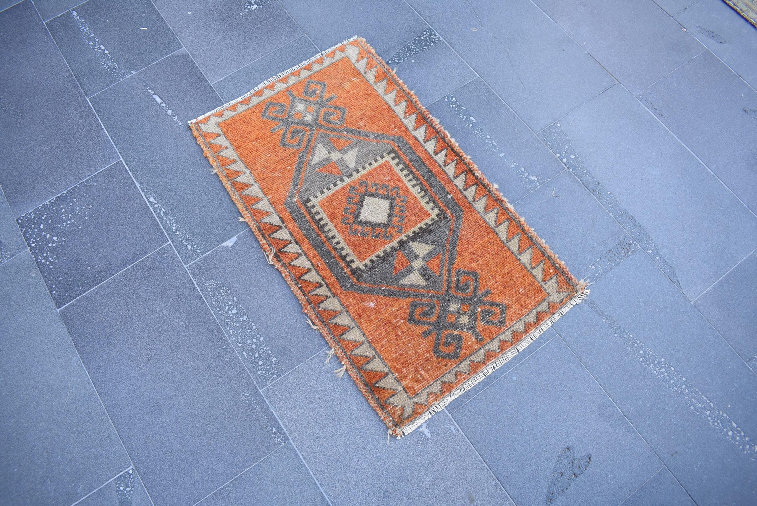 Lovely and unique 1.8 ft. x 3.1 ft. (54 cm x 94 cm) vintage Turkish rug hand-knotted in Turkey from organic wool. This is an authentic vintage Turkish rug from the 1980s that has worn beautifully to perfection.