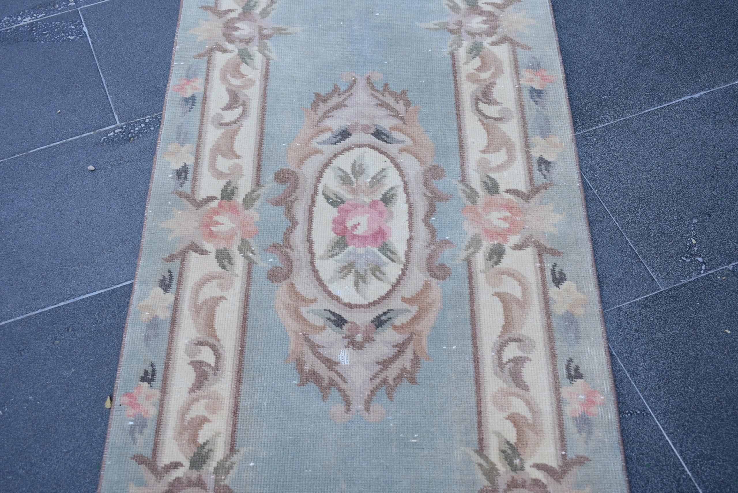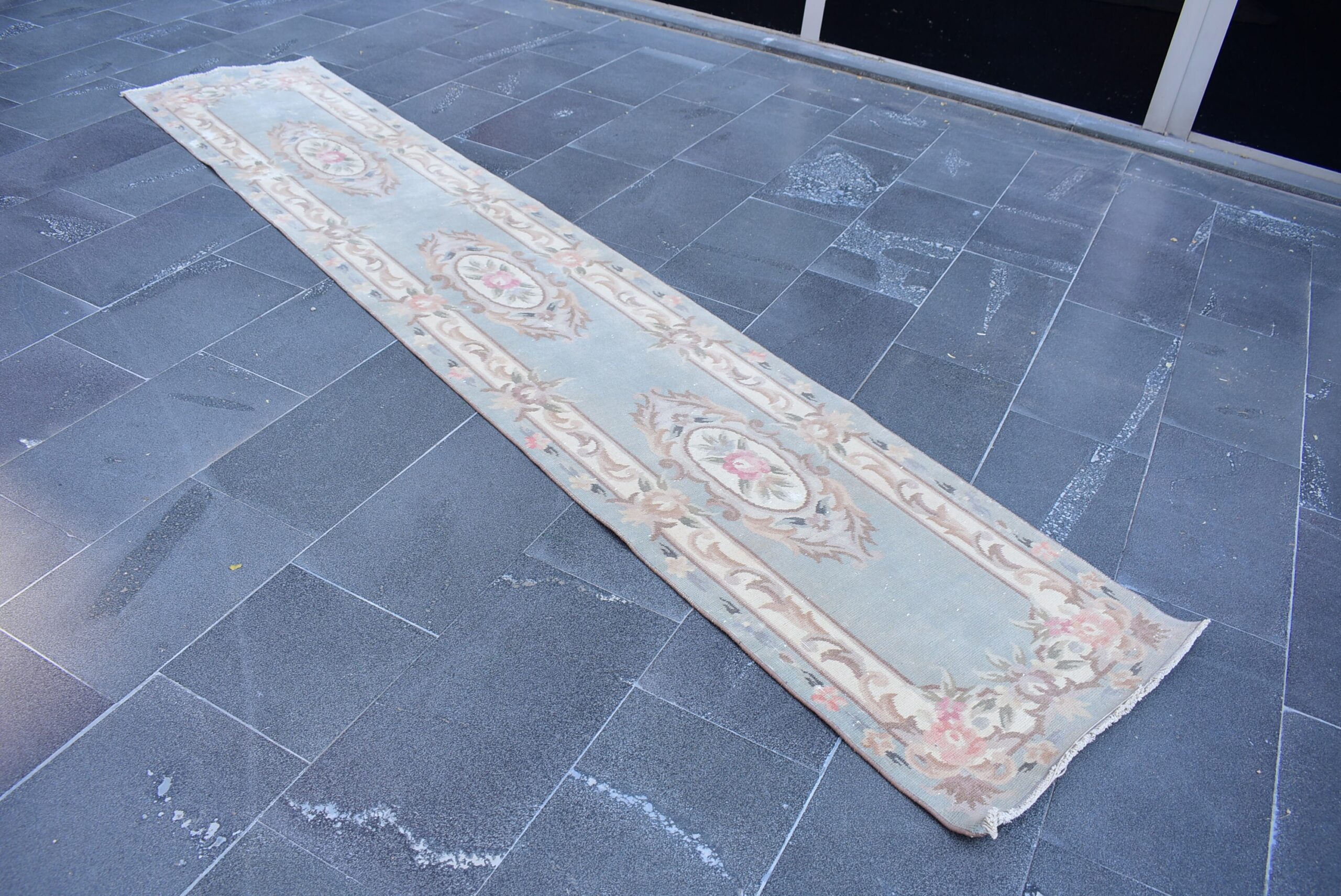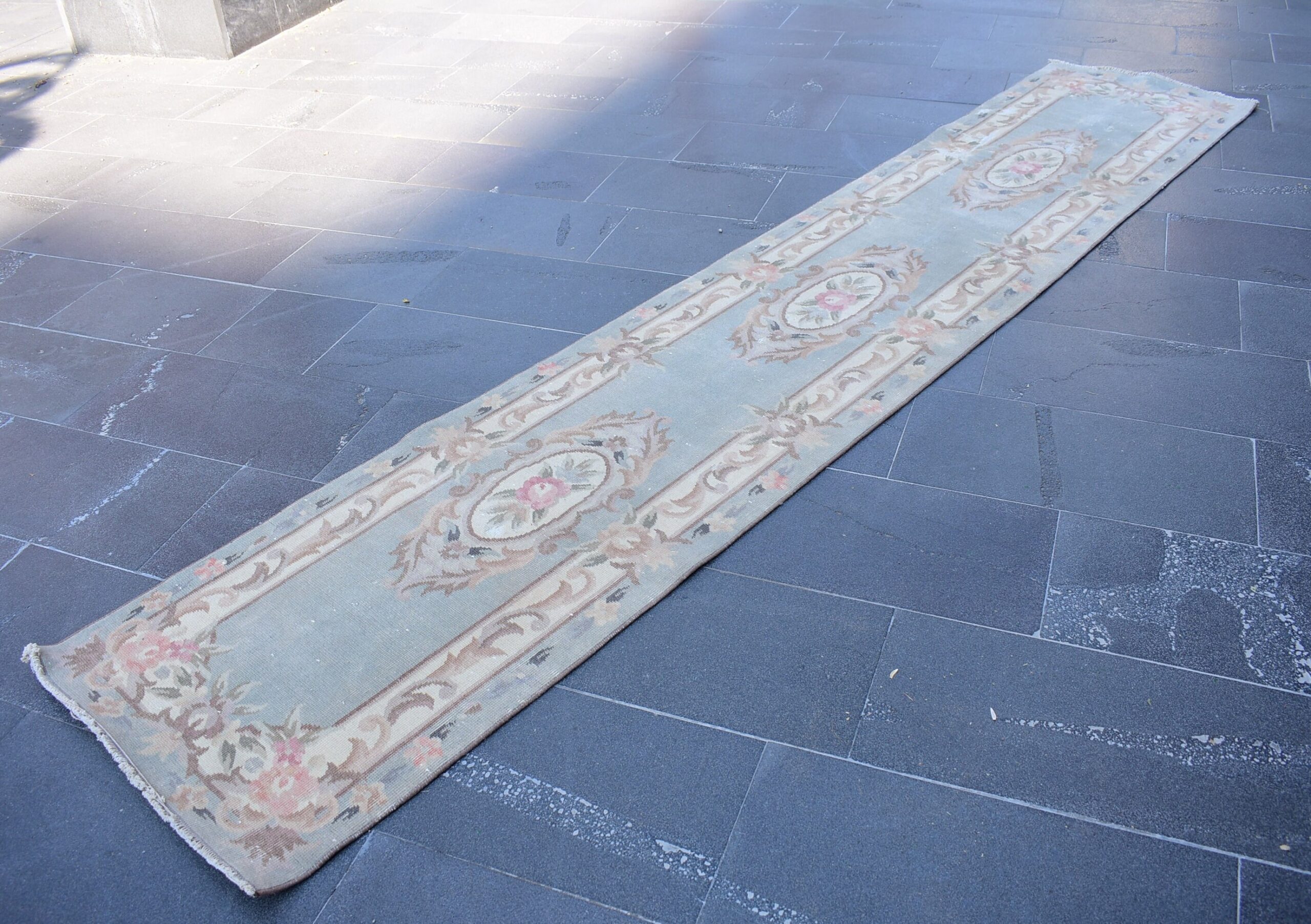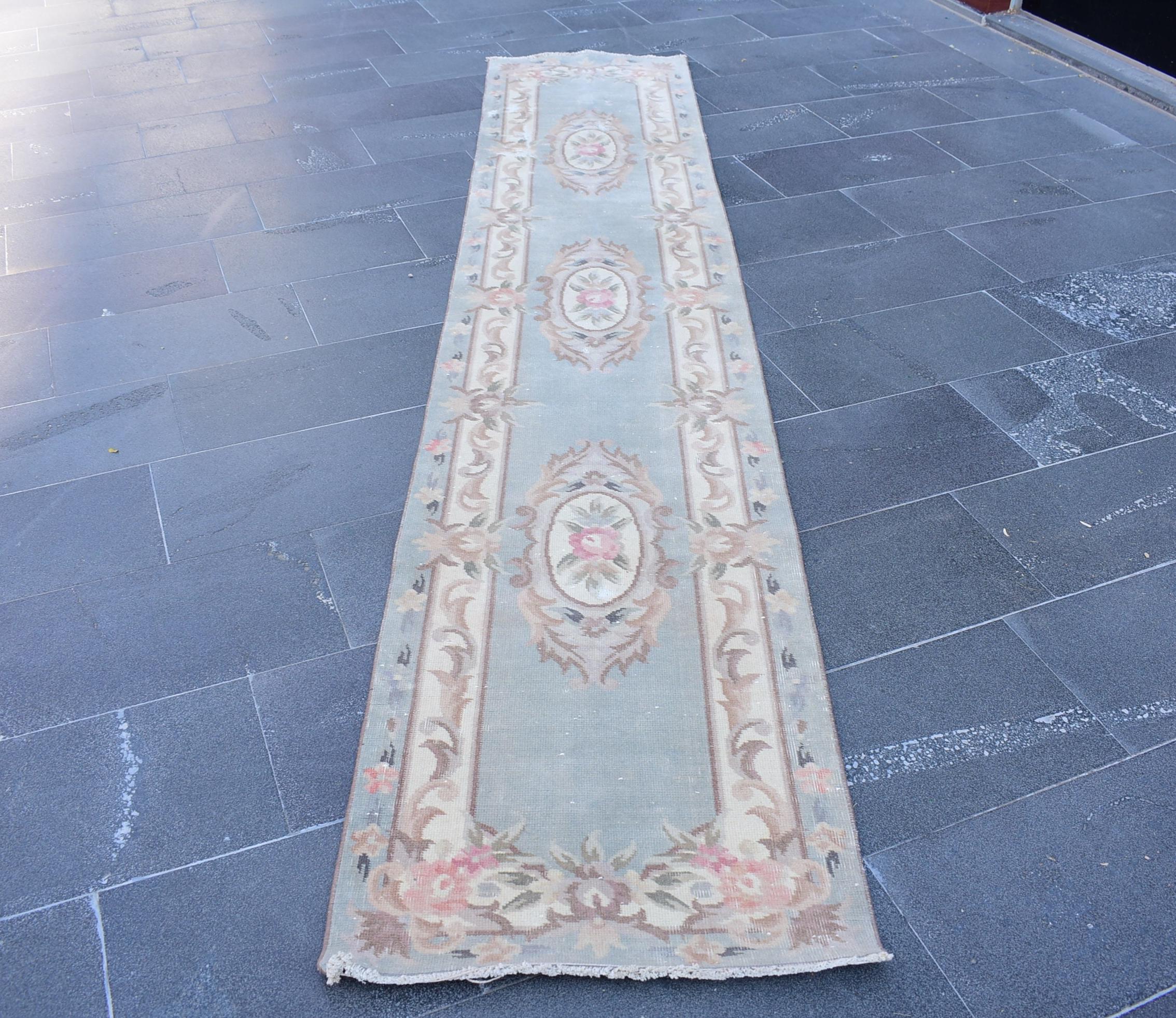 Lovely and unique 2.2 ft. x 11 ft. (66 cm x 334 cm) vintage Turkish rug hand-knotted in Turkey from organic wool. This is an authentic vintage Turkish rug from the 1980s that has worn beautifully to perfection.