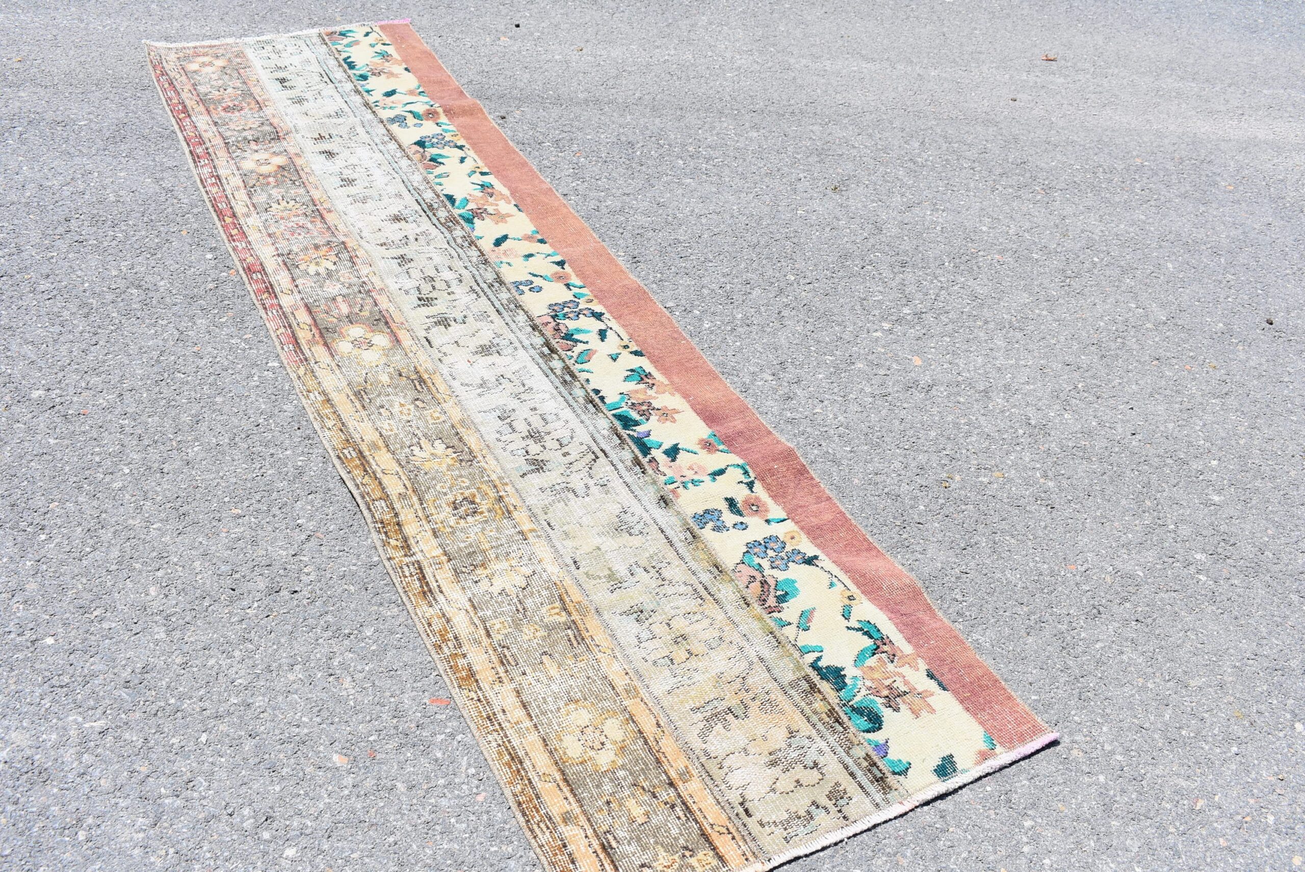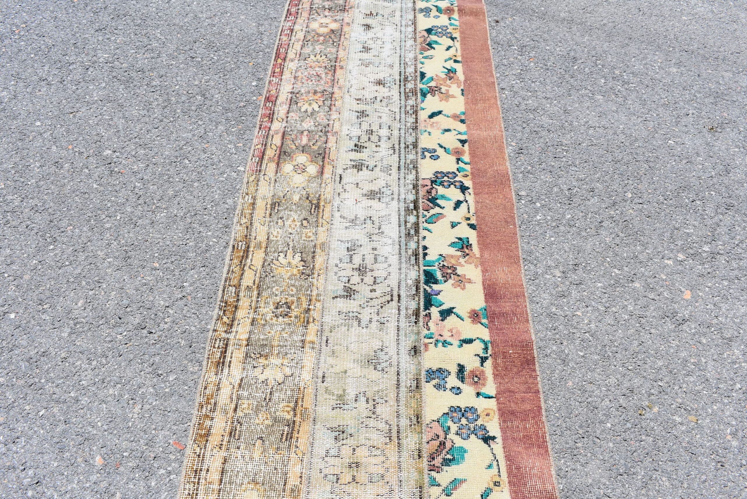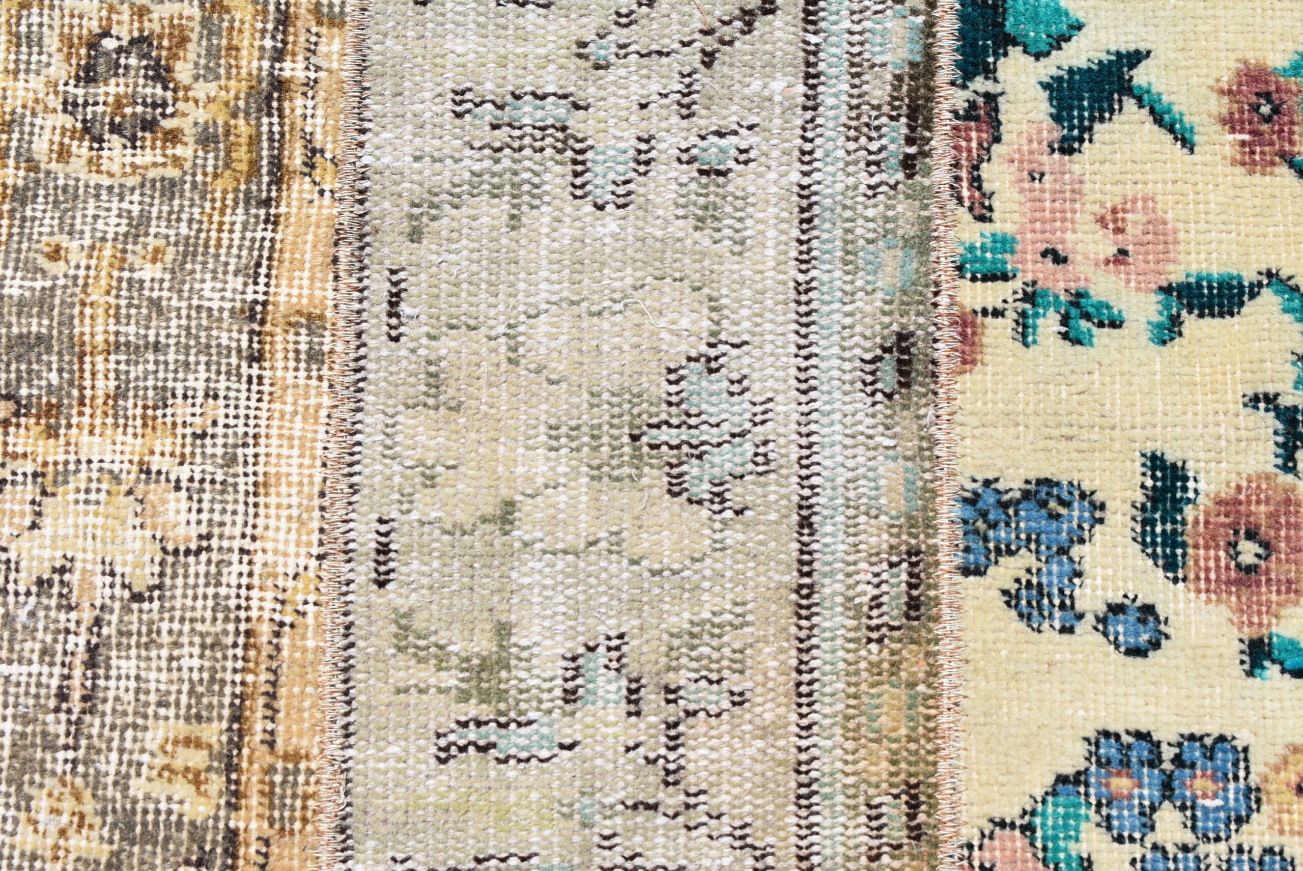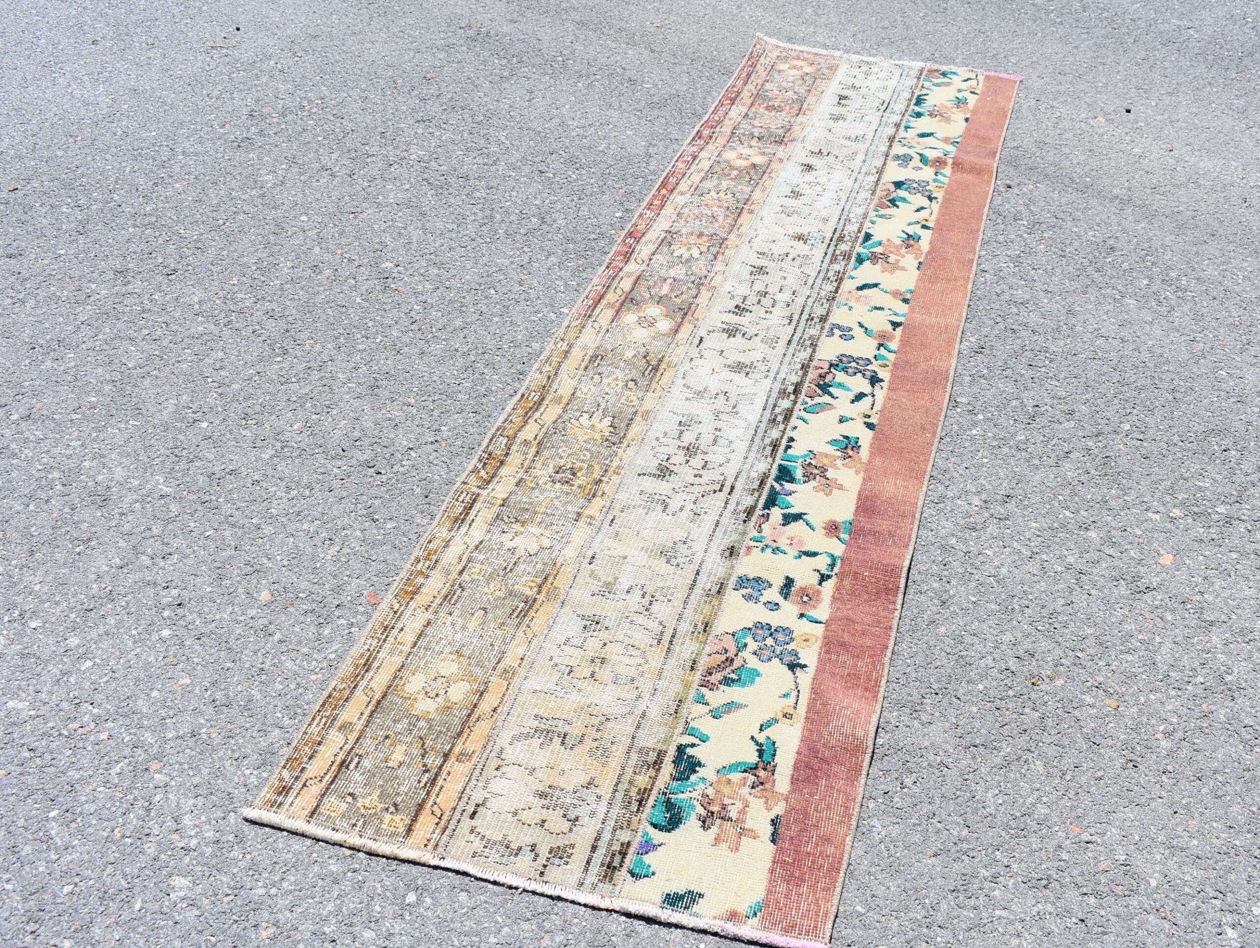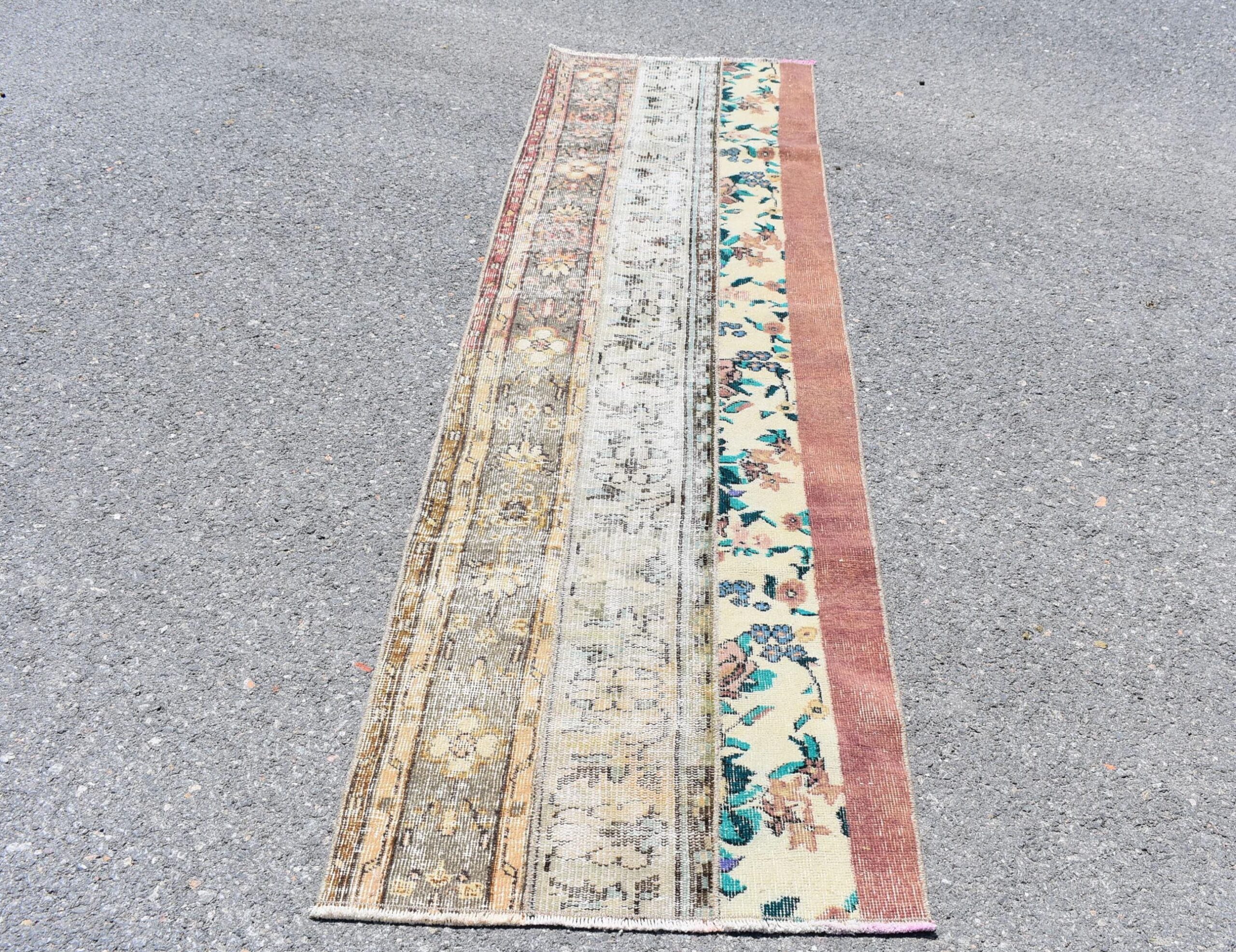 Pretty 2.2 ft. x 8.4 ft. (68 cm x 257 cm) patchwork rug made from different pieces of hand-knotted vintage Turkish rugs to end-up with a splendid one-off piece of art.