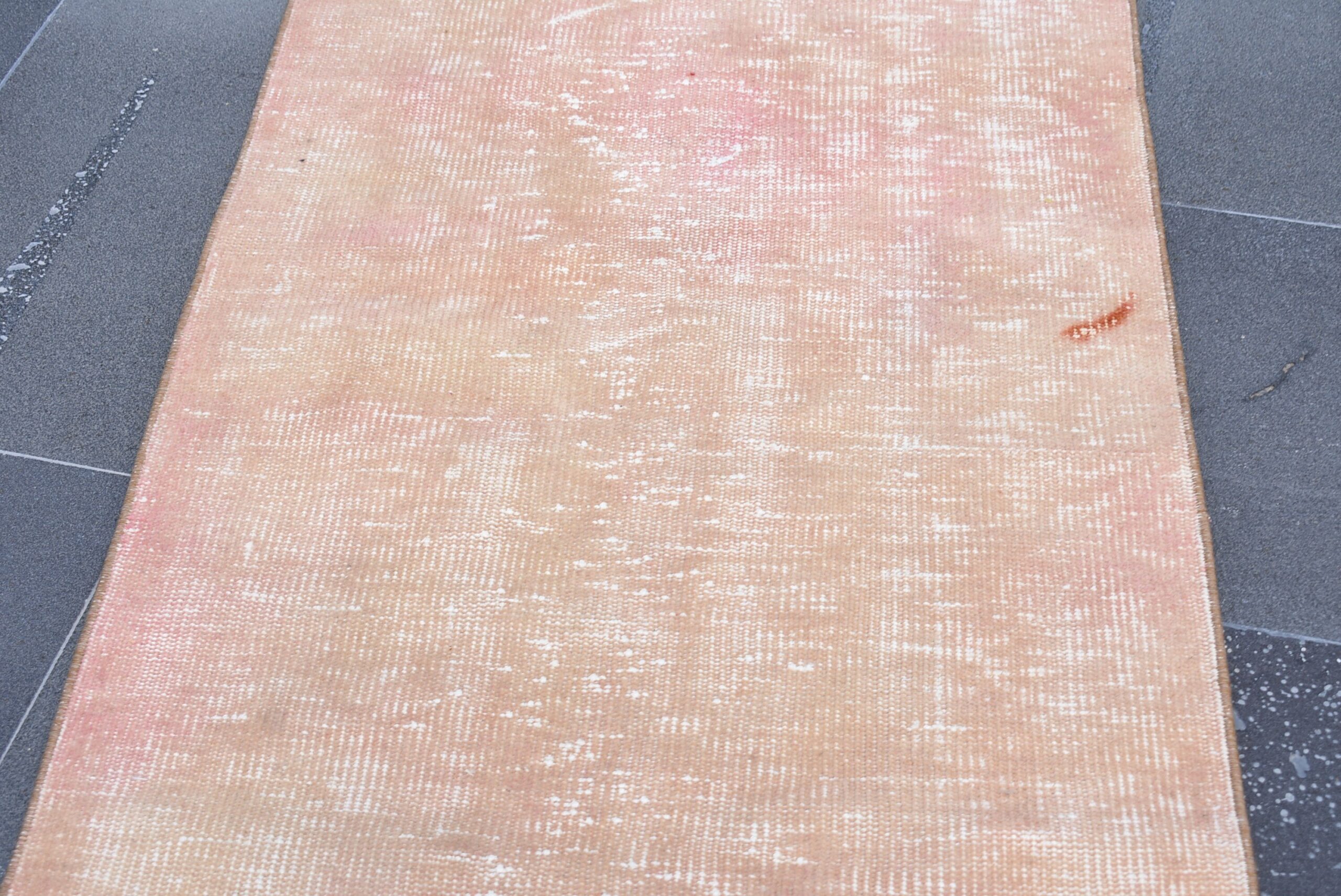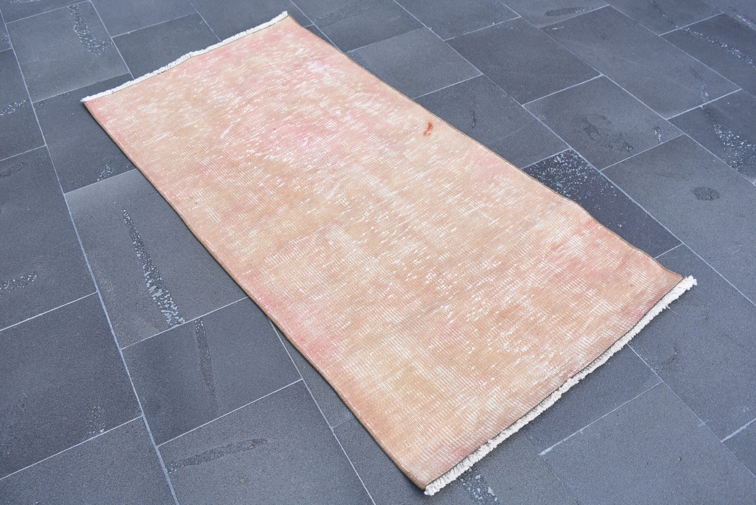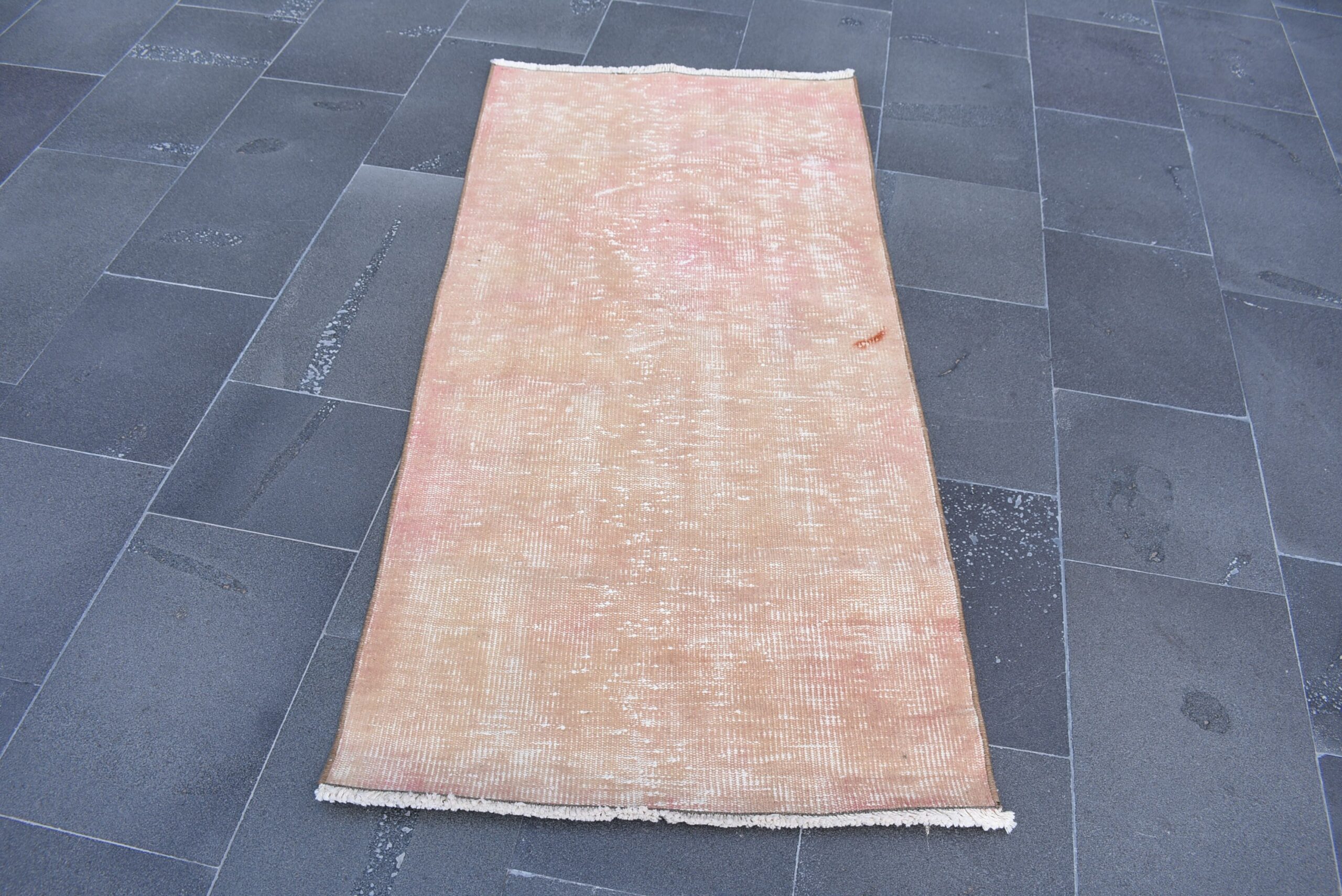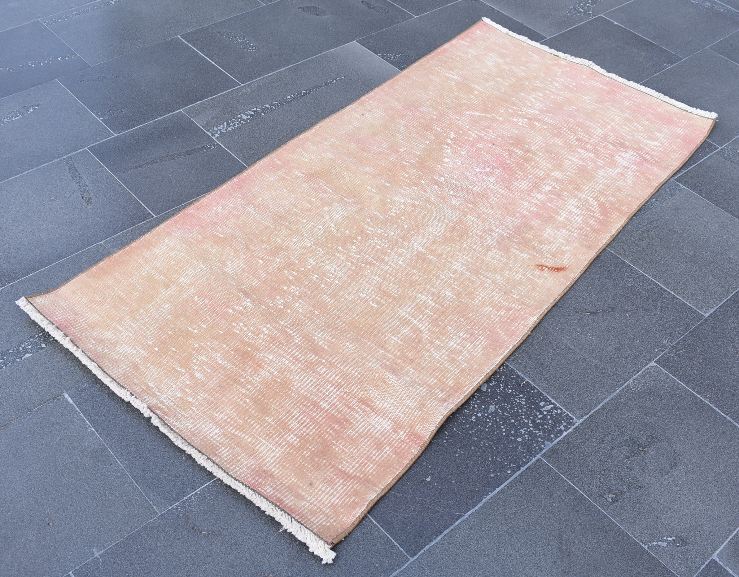 Pretty and one-of-a-kind 2.4 ft. x 5.1 ft. (74 cm x 155 cm) vintage overdyed rug hand-knotted in Turkey from organic wool. This is an authentic vintage rug from the 1970s that has worn splendidly to perfection.