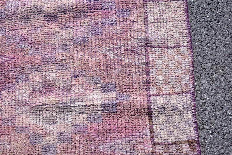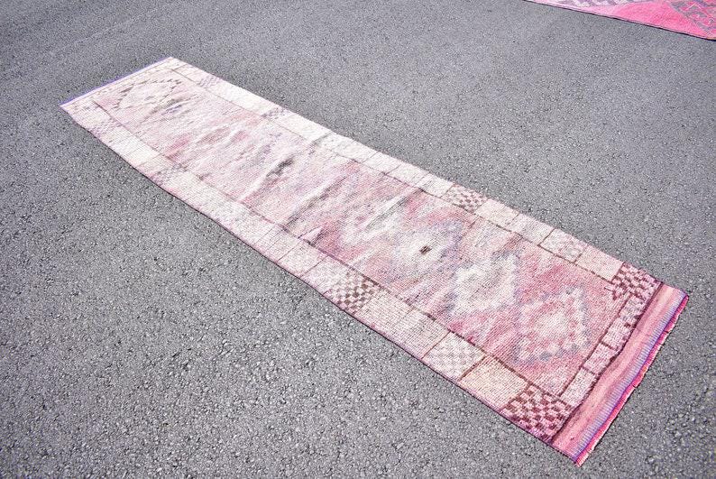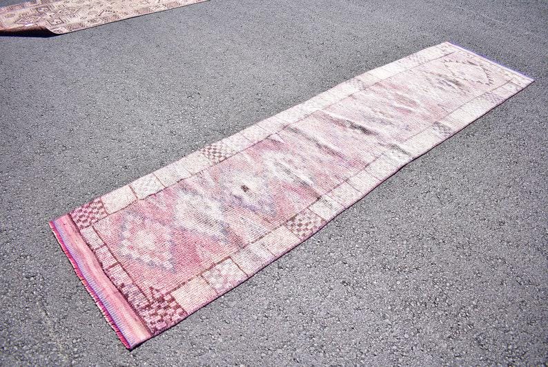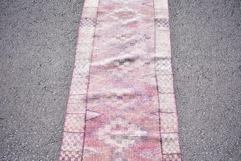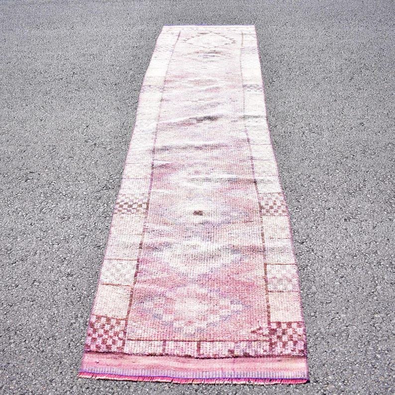 Pretty and one-of-a-kind 2.5 ft. x 10.2 ft. (76 cm x 310 cm) vintage Turkish rug hand-knotted in Turkey from organic wool. This is an authentic vintage Turkish rug from the 1970s that has worn splendidly to perfection.