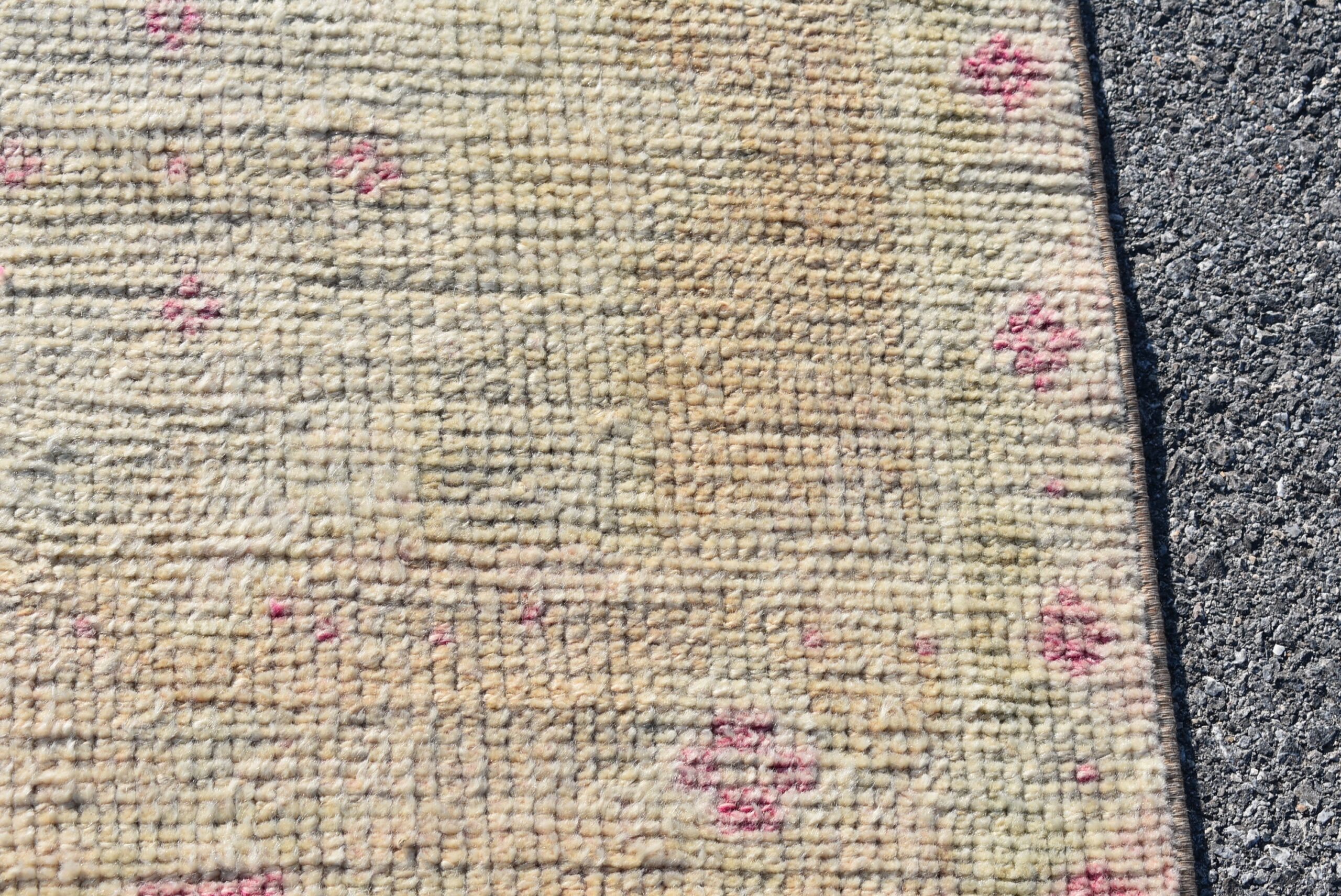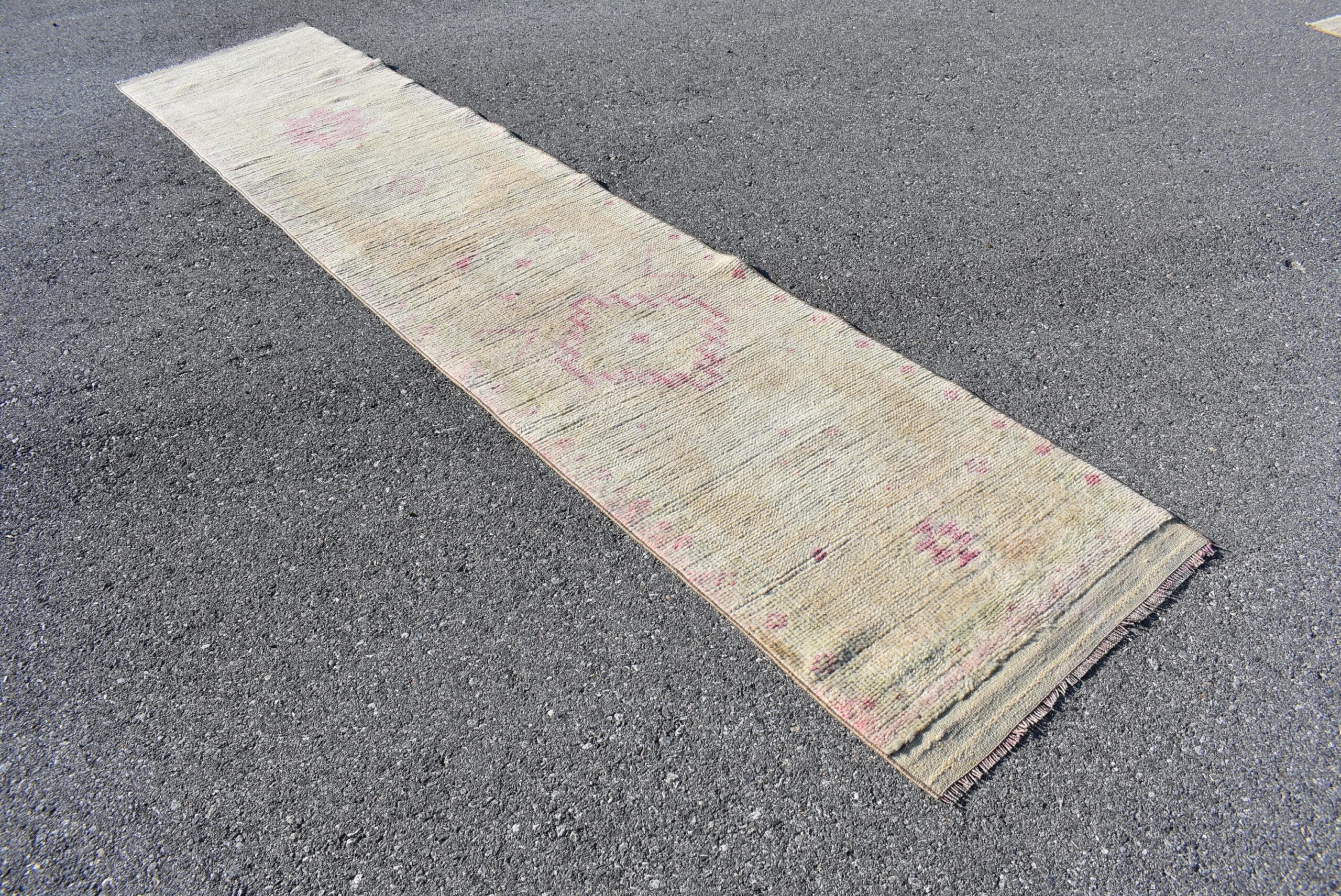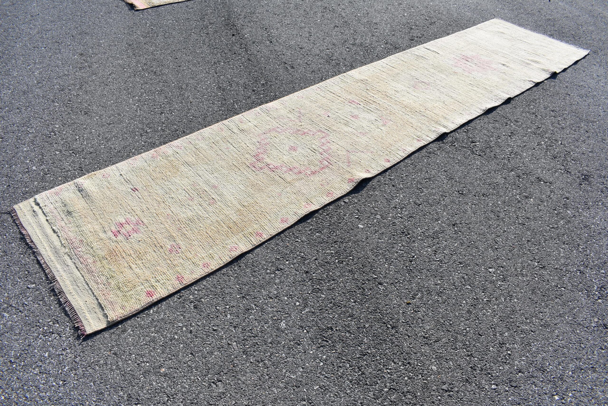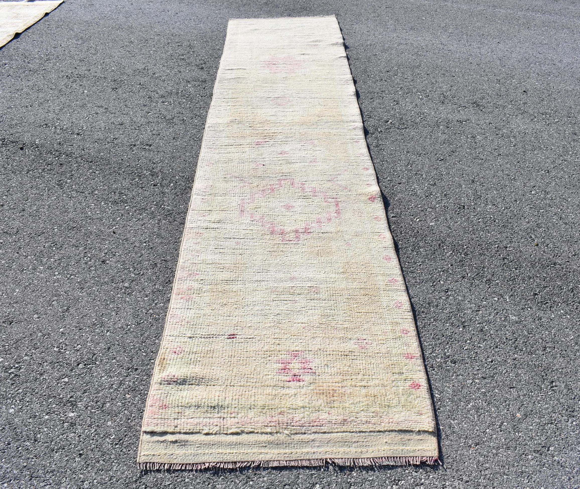 Pretty and one-of-a-kind 2.5 ft. x 12.4 ft. (77 cm x 378 cm) vintage Turkish rug hand-knotted in Turkey from organic wool. This is an authentic vintage Turkish rug from the 1960s that has worn splendidly to perfection.