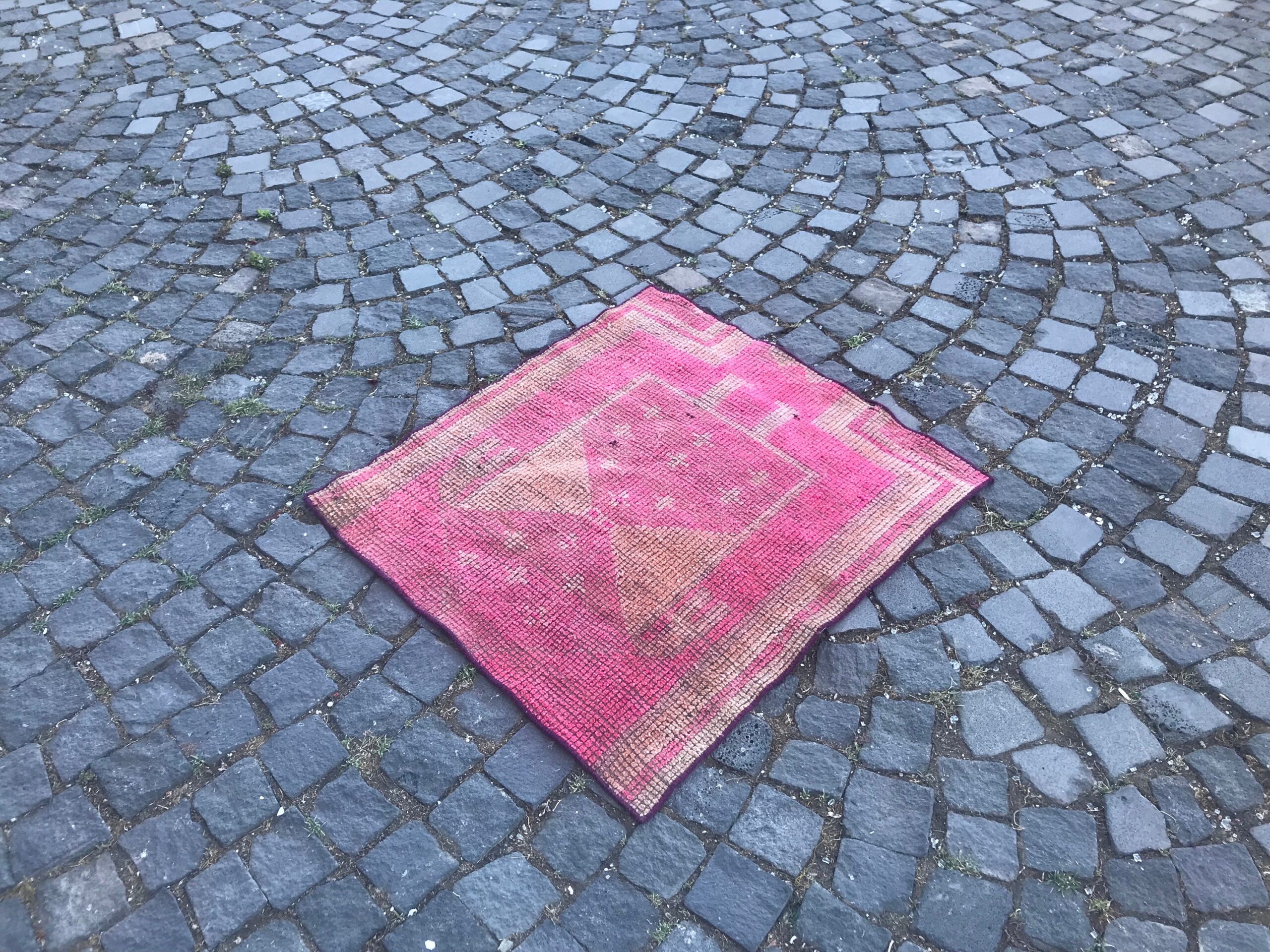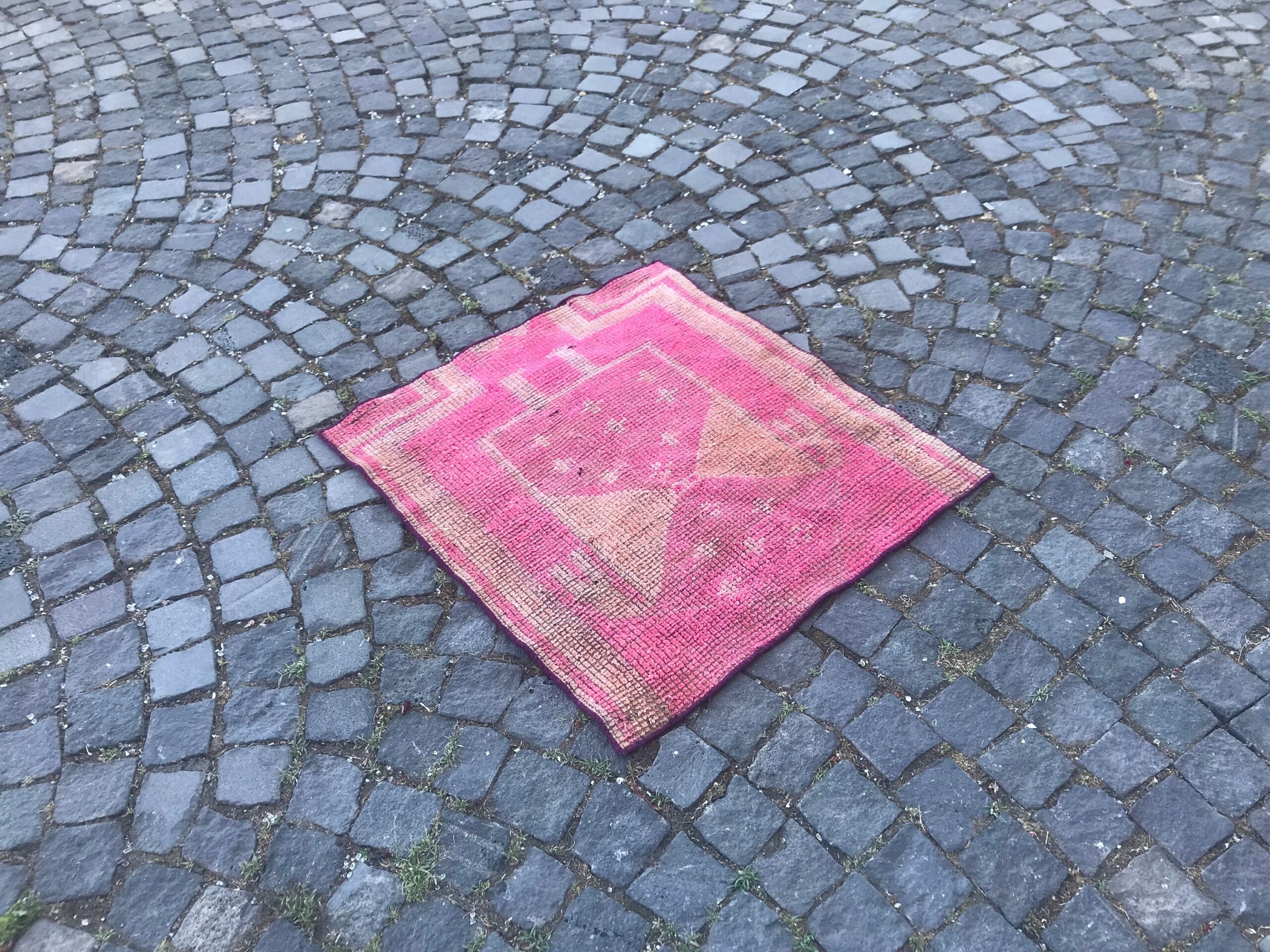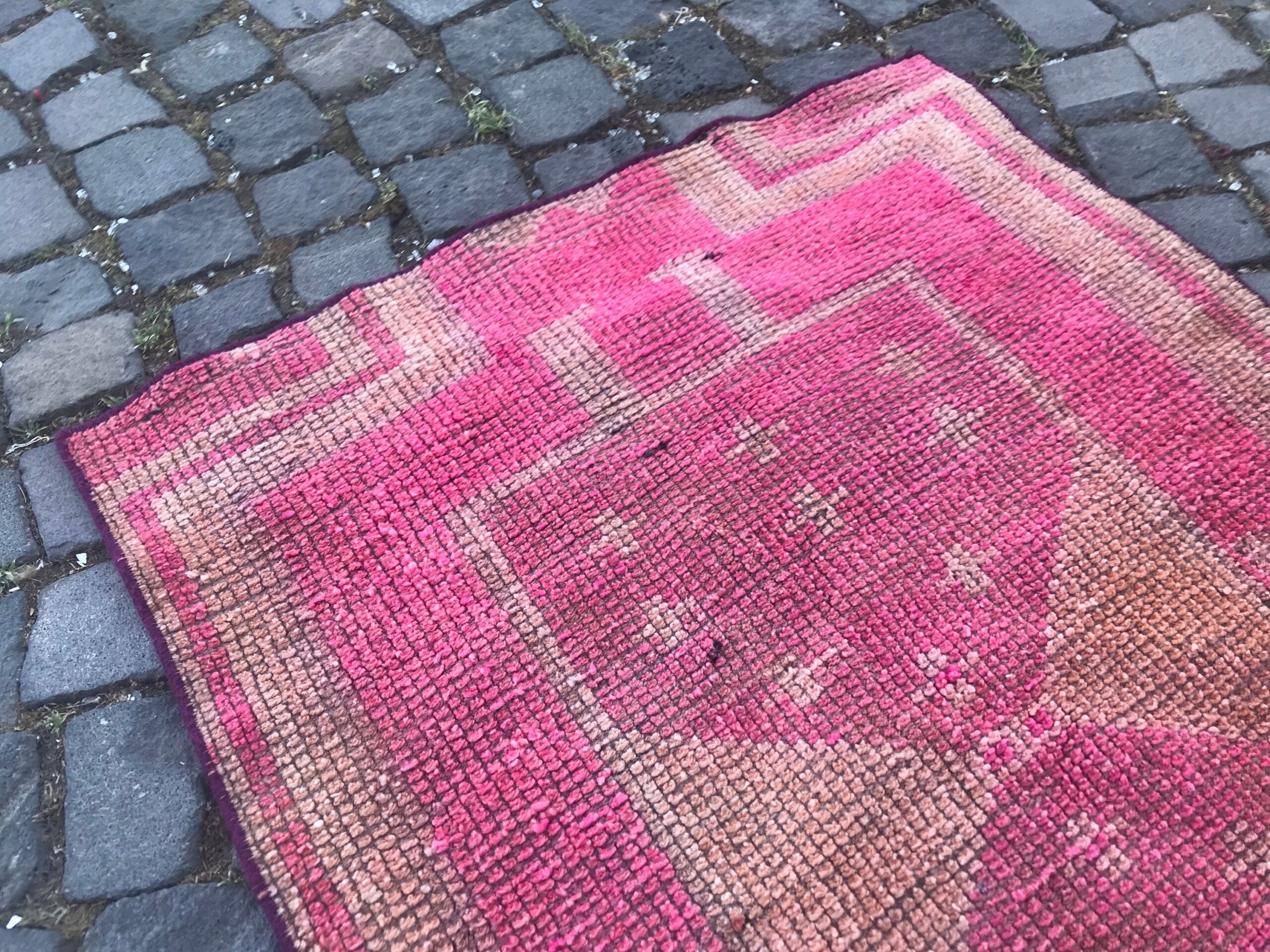 Pretty and one-of-a-kind 2.7 ft. x 2.9 ft. (83 cm x 88 cm) vintage Turkish rug hand-knotted in Turkey from organic wool. This is an authentic vintage Turkish rug from the 1990s that has worn splendidly to perfection.
