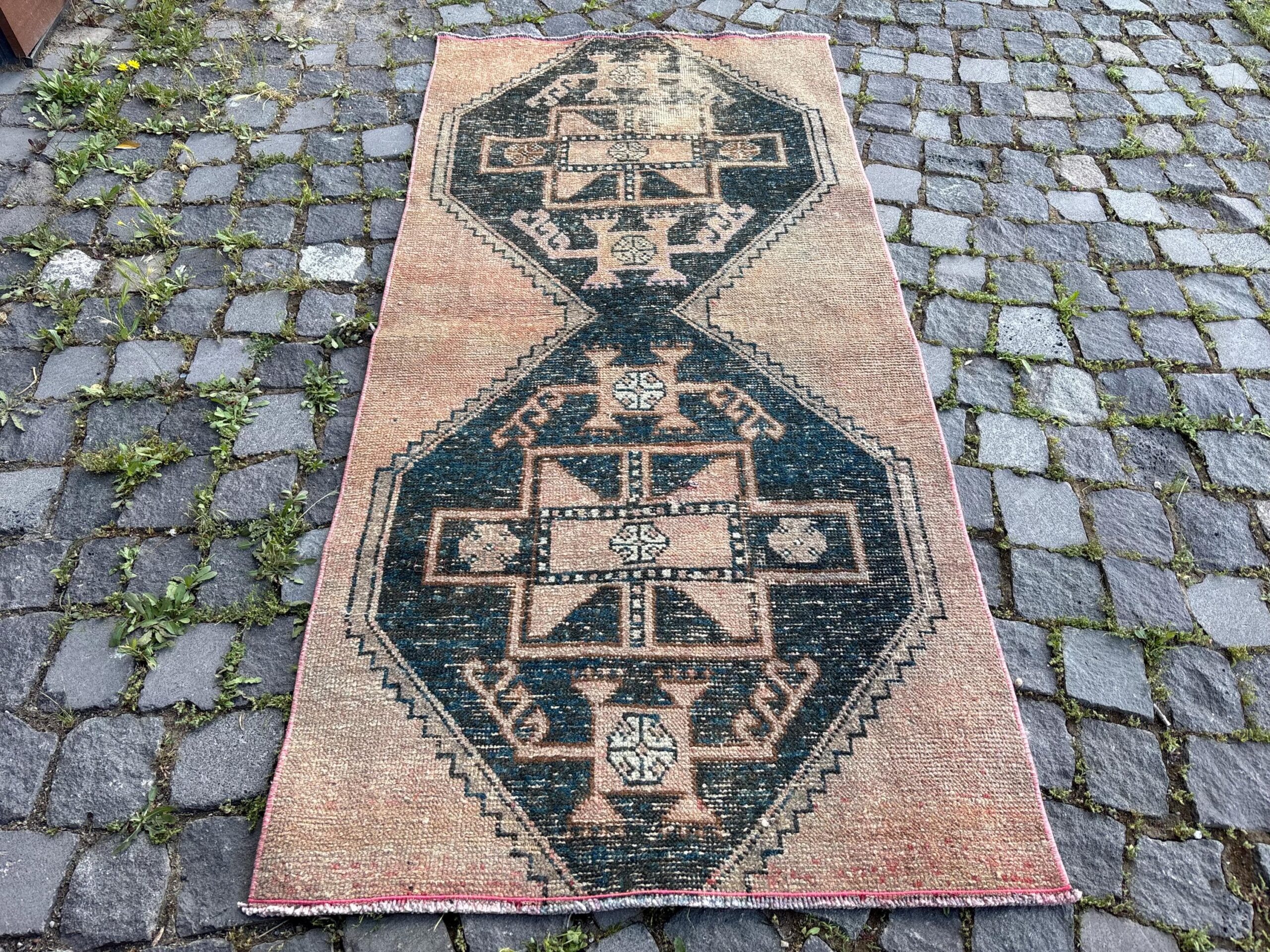 Beautiful and one-of-a-kind 2.7 ft. x 5.9 ft. (83 cm x 179 cm) vintage Turkish rug hand-knotted in Turkey from organic wool. This is an authentic vintage Turkish rug from the 1980s that has worn admirably to perfection.