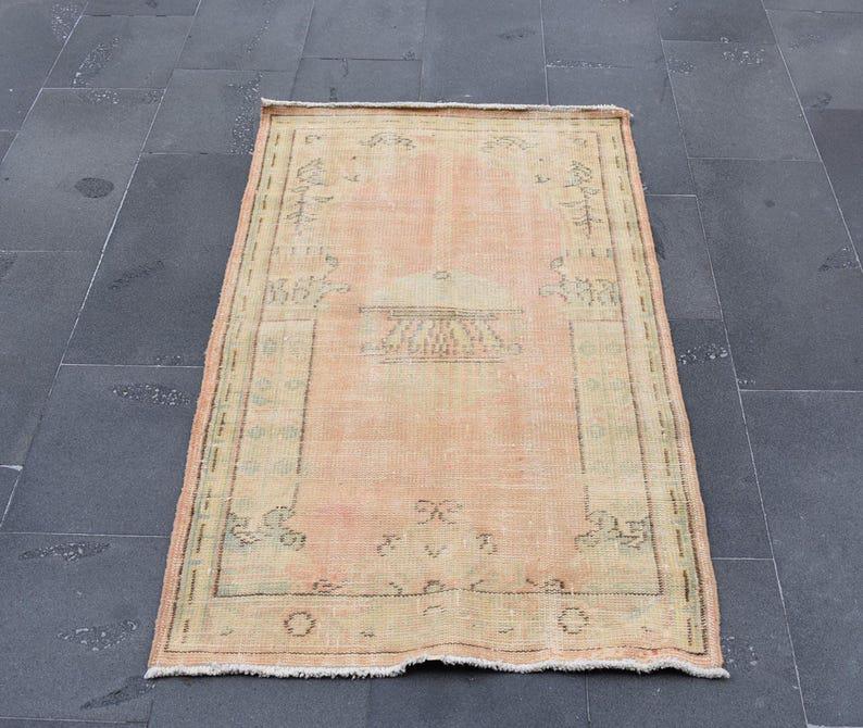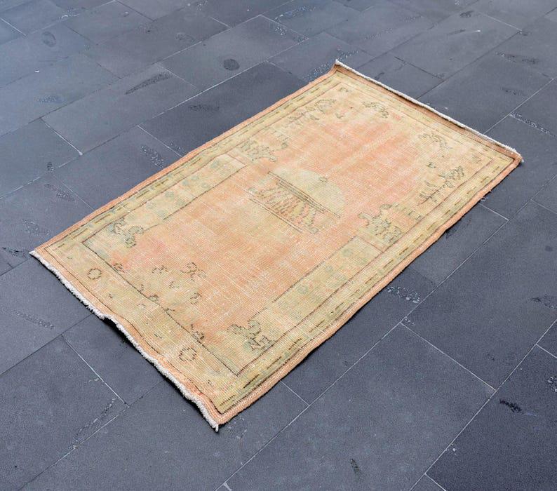 Lovely and unique 2.8 ft. x 4.7 ft. (84 cm x 144 cm) vintage Turkish rug hand-knotted in Turkey from organic wool. This is an authentic vintage Turkish rug from the 1970s that has worn beautifully to perfection.