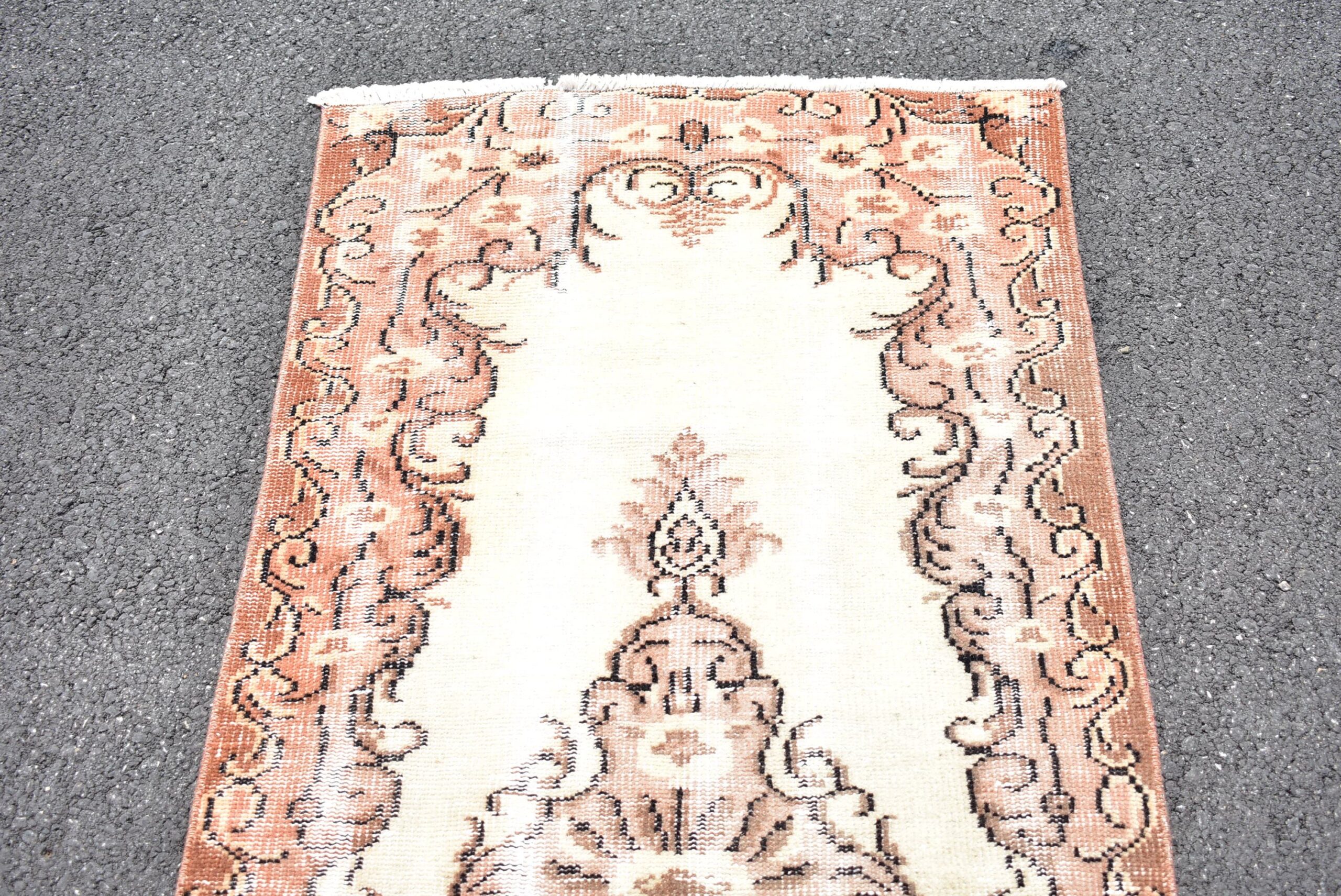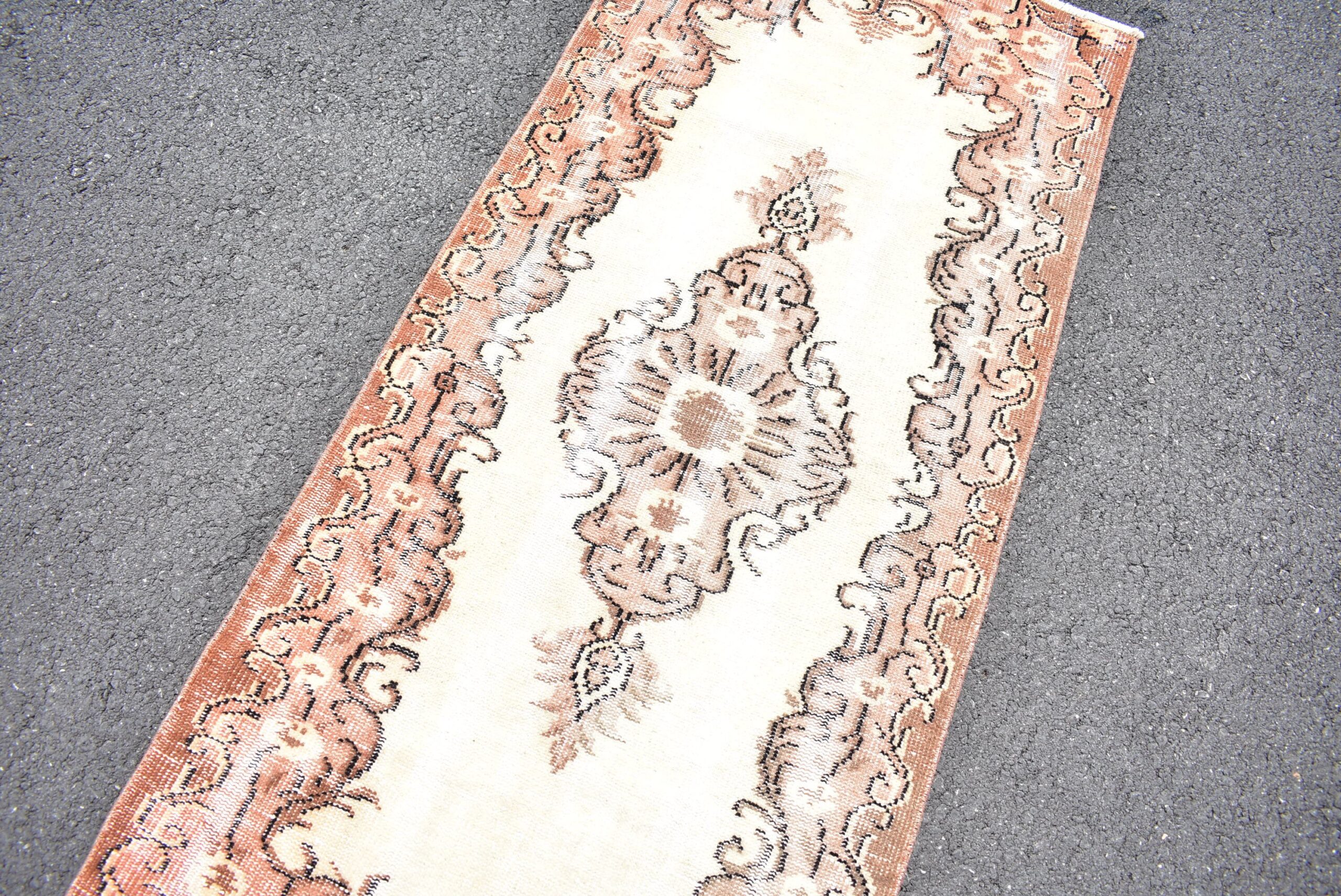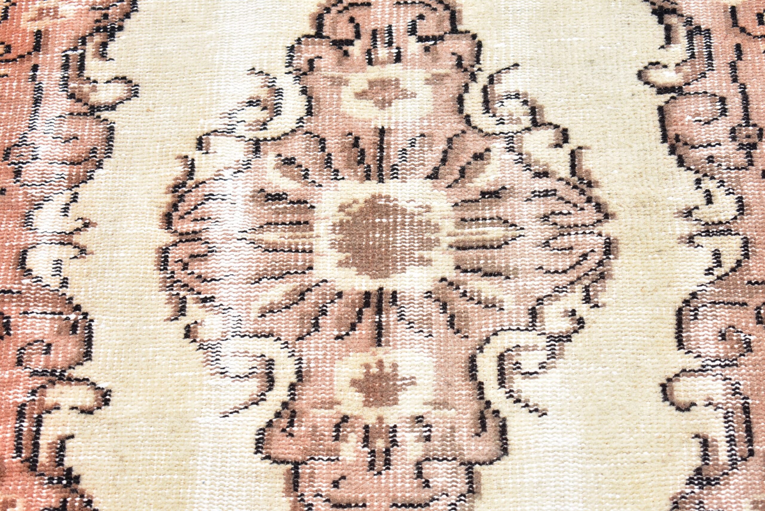 Beautiful and one-of-a-kind 2.8 ft. x 6.3 ft. (86 cm x 193 cm) vintage Turkish rug hand-knotted in Turkey from organic wool. This is an authentic vintage Turkish rug from the 1990s that has worn admirably to perfection.