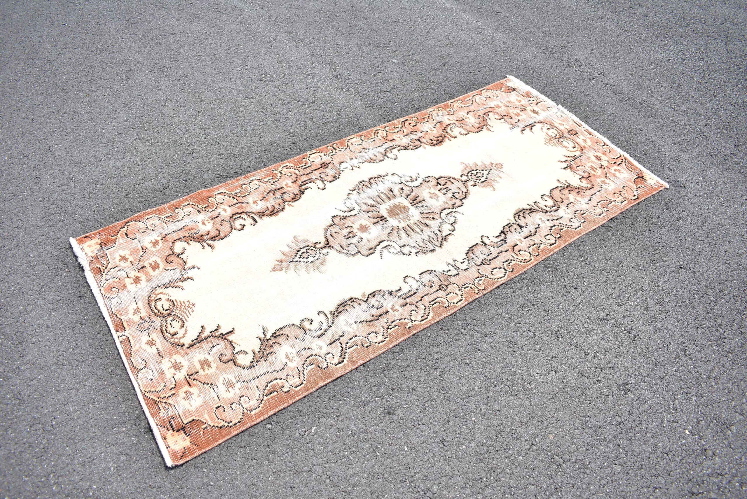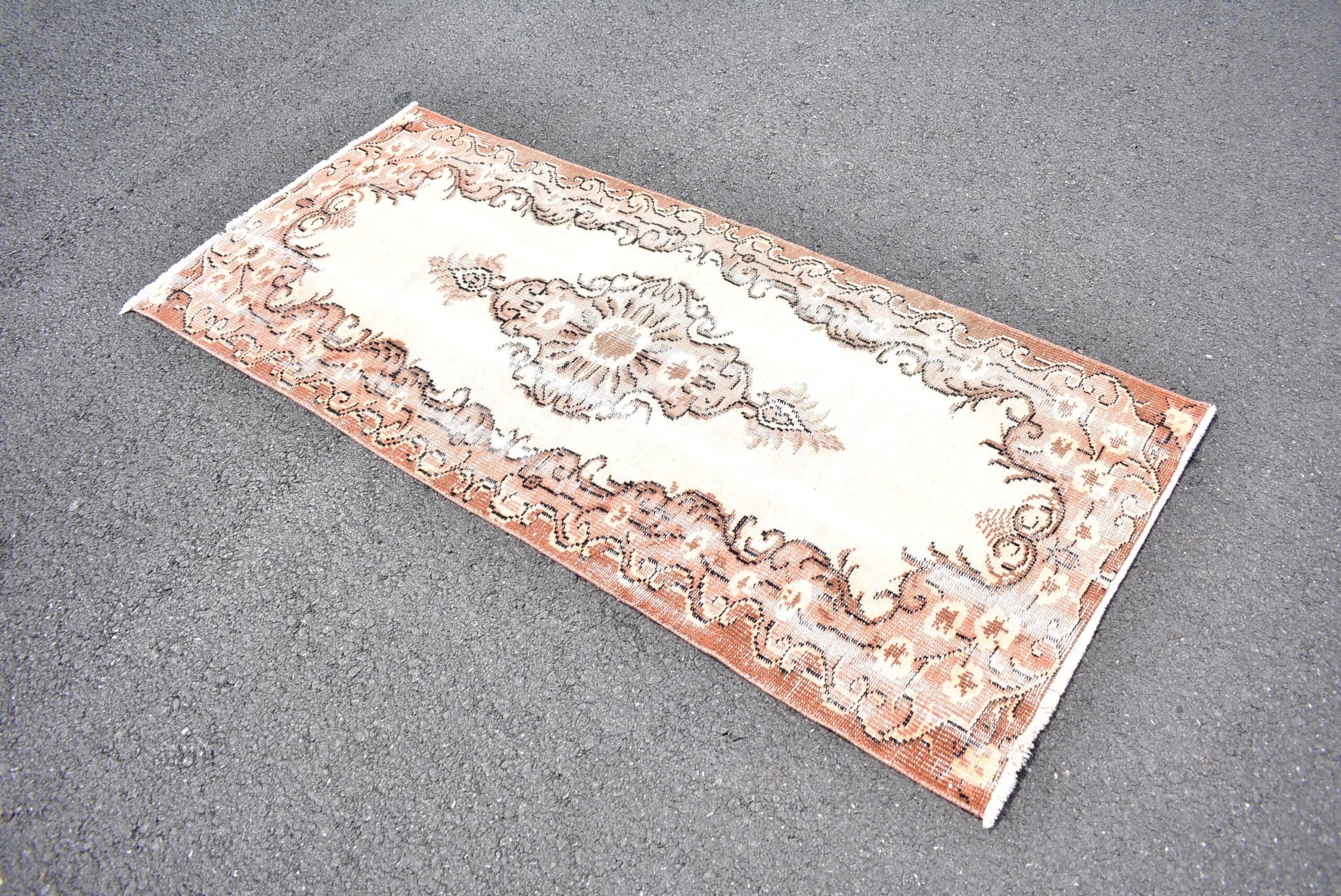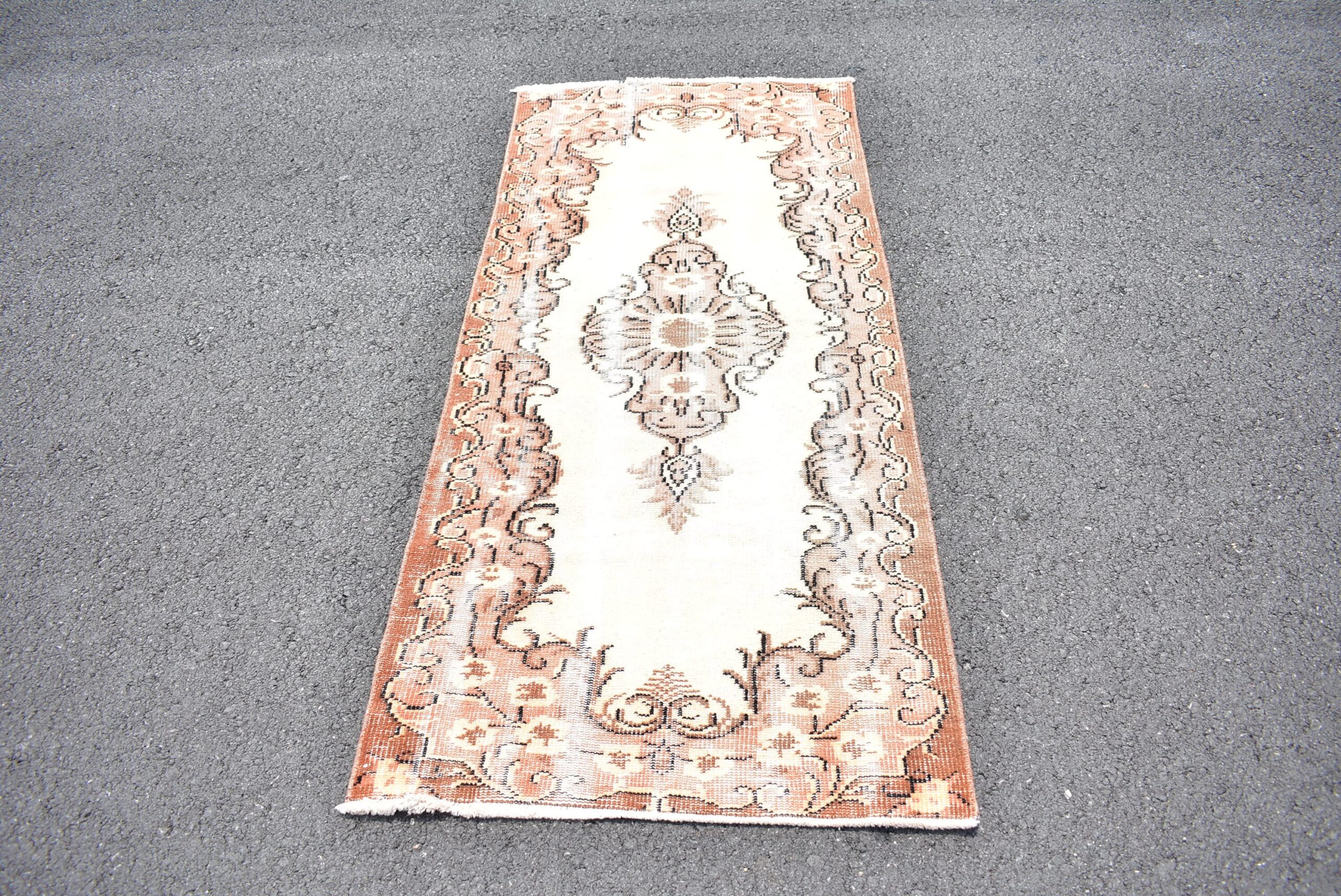 Beautiful and one-of-a-kind 2.8 ft. x 6.3 ft. (86 cm x 193 cm) vintage Turkish rug hand-knotted in Turkey from organic wool. This is an authentic vintage Turkish rug from the 1990s that has worn admirably to perfection.