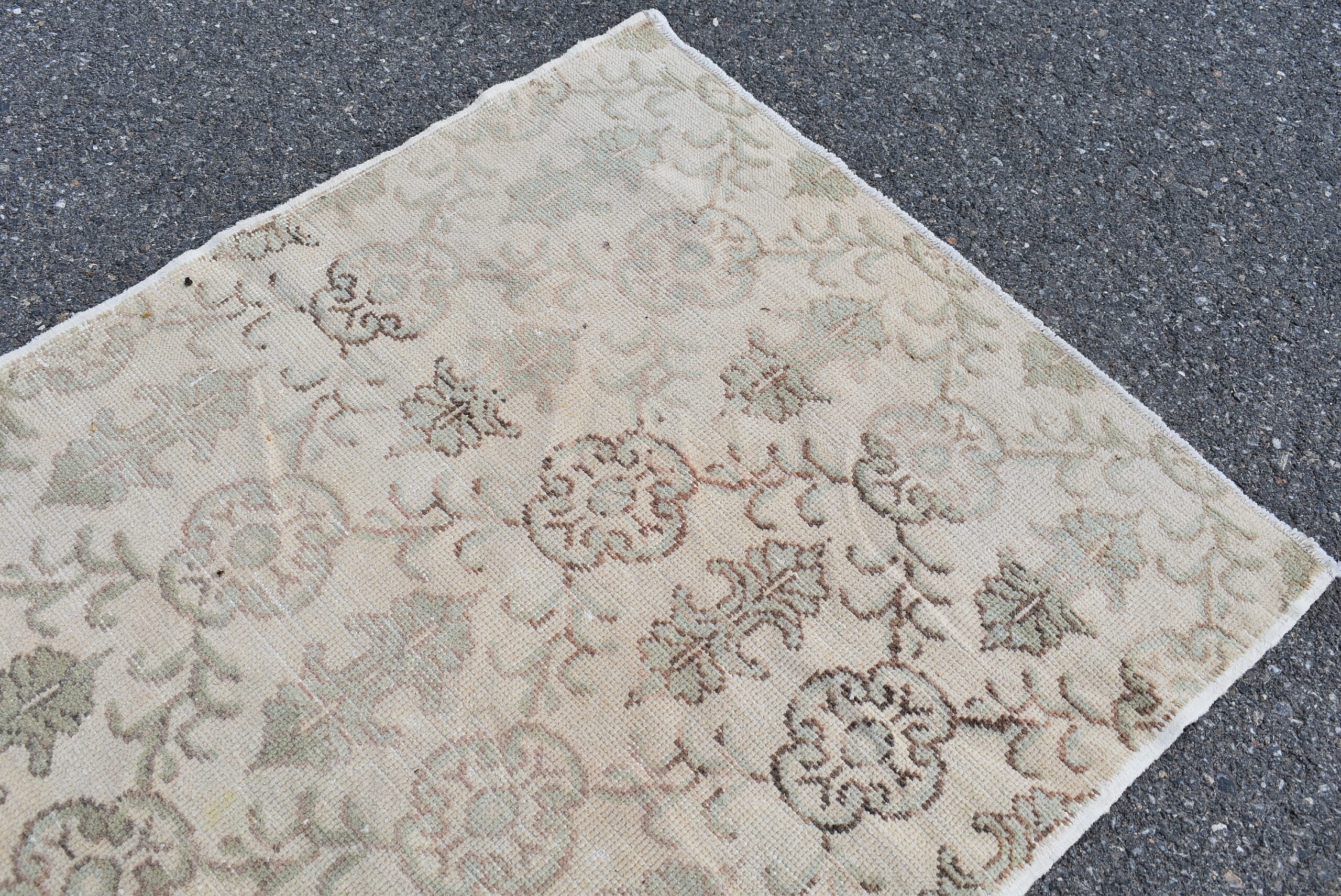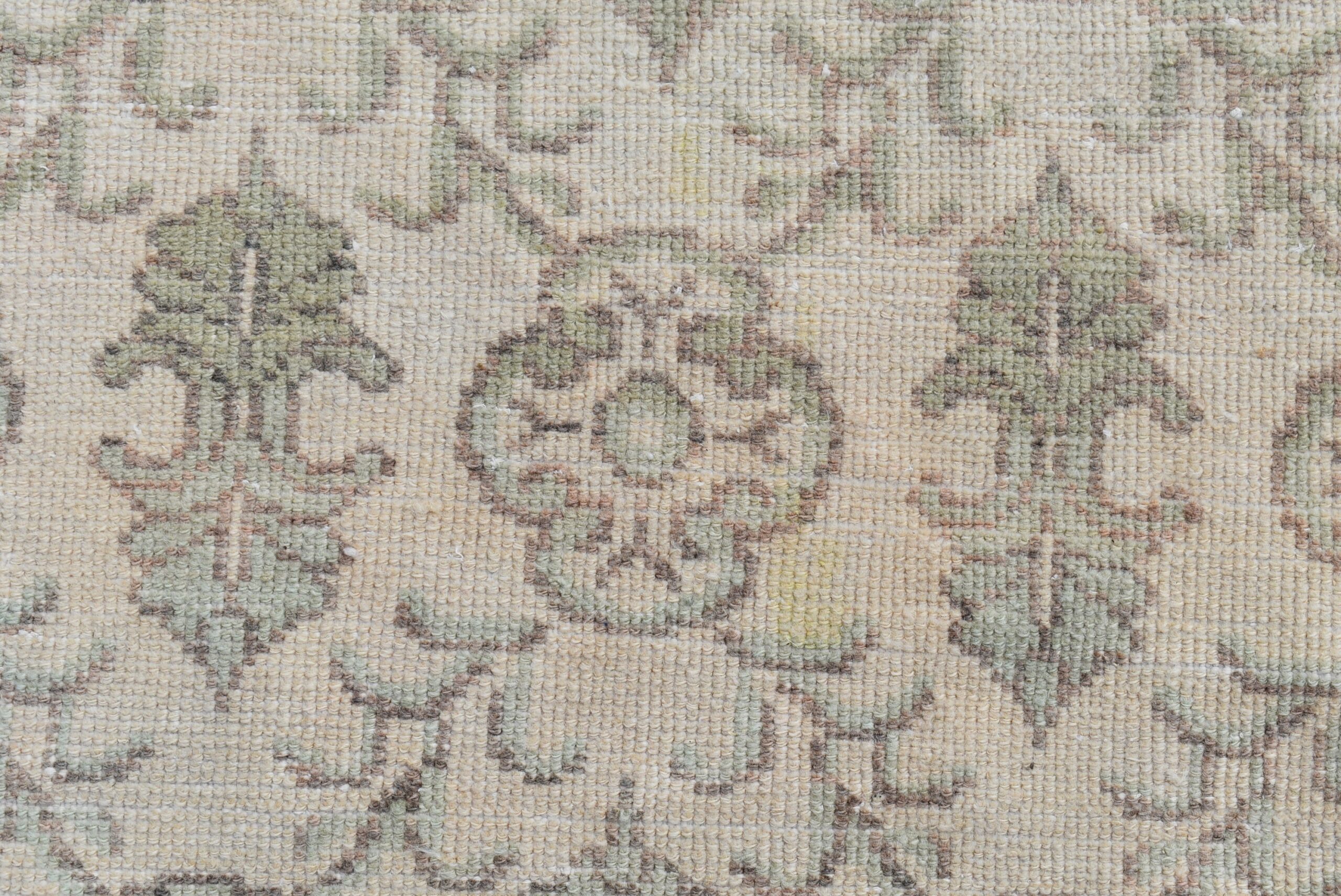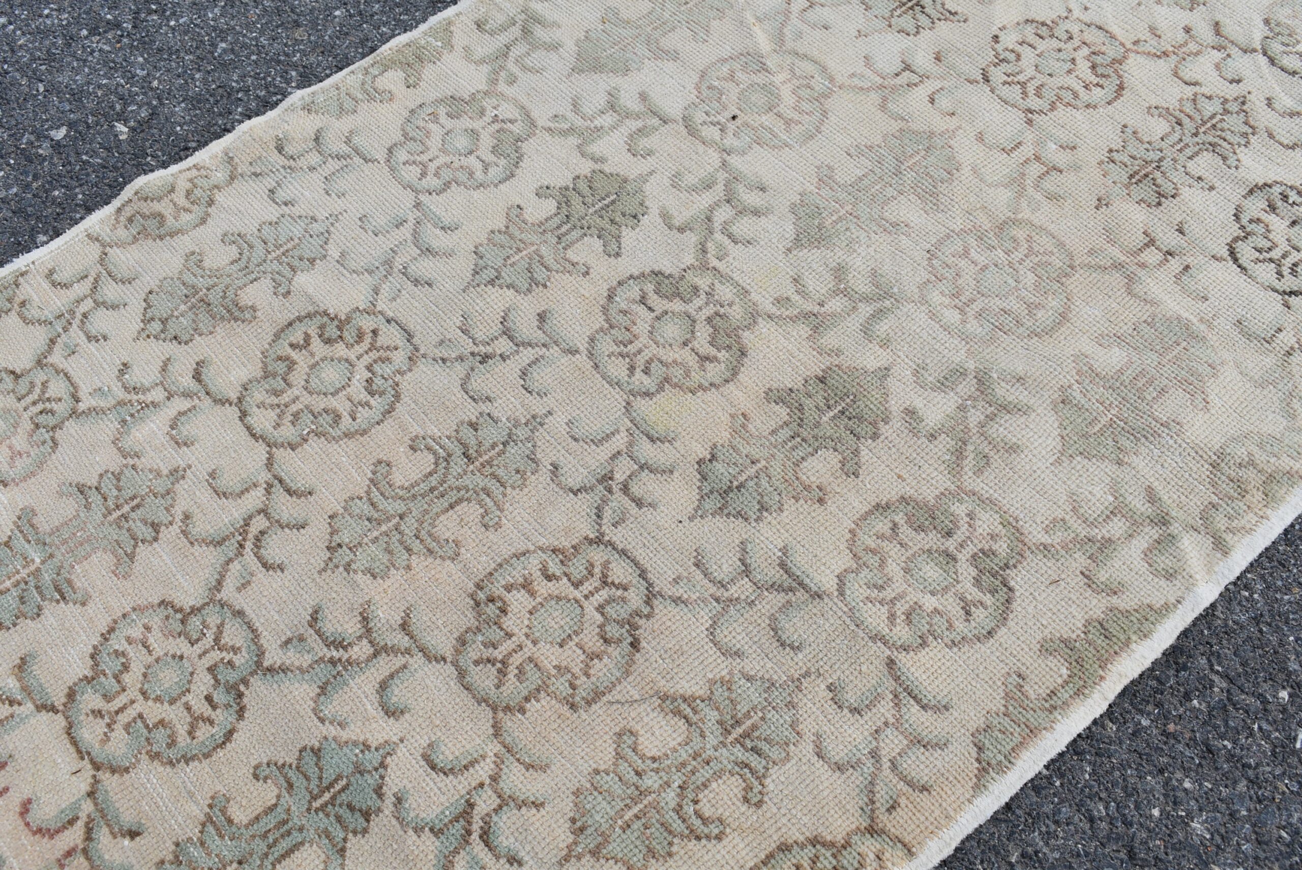 Lovely and unique 2.9 ft. x 6.1 ft. (88 cm x 186 cm) vintage Turkish rug hand-knotted in Turkey from organic wool. This is an authentic vintage Turkish rug from the 1980s that has worn beautifully to perfection.