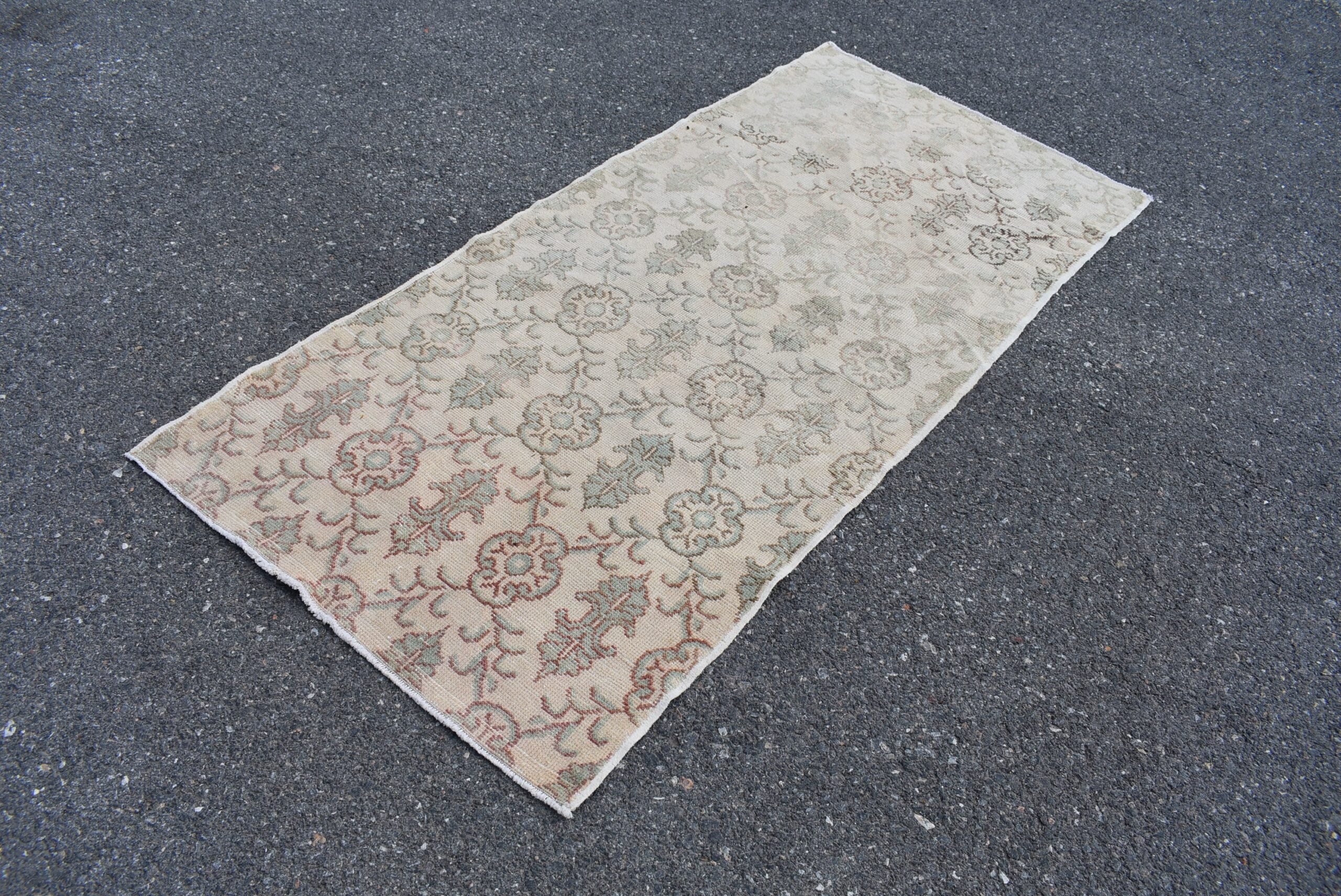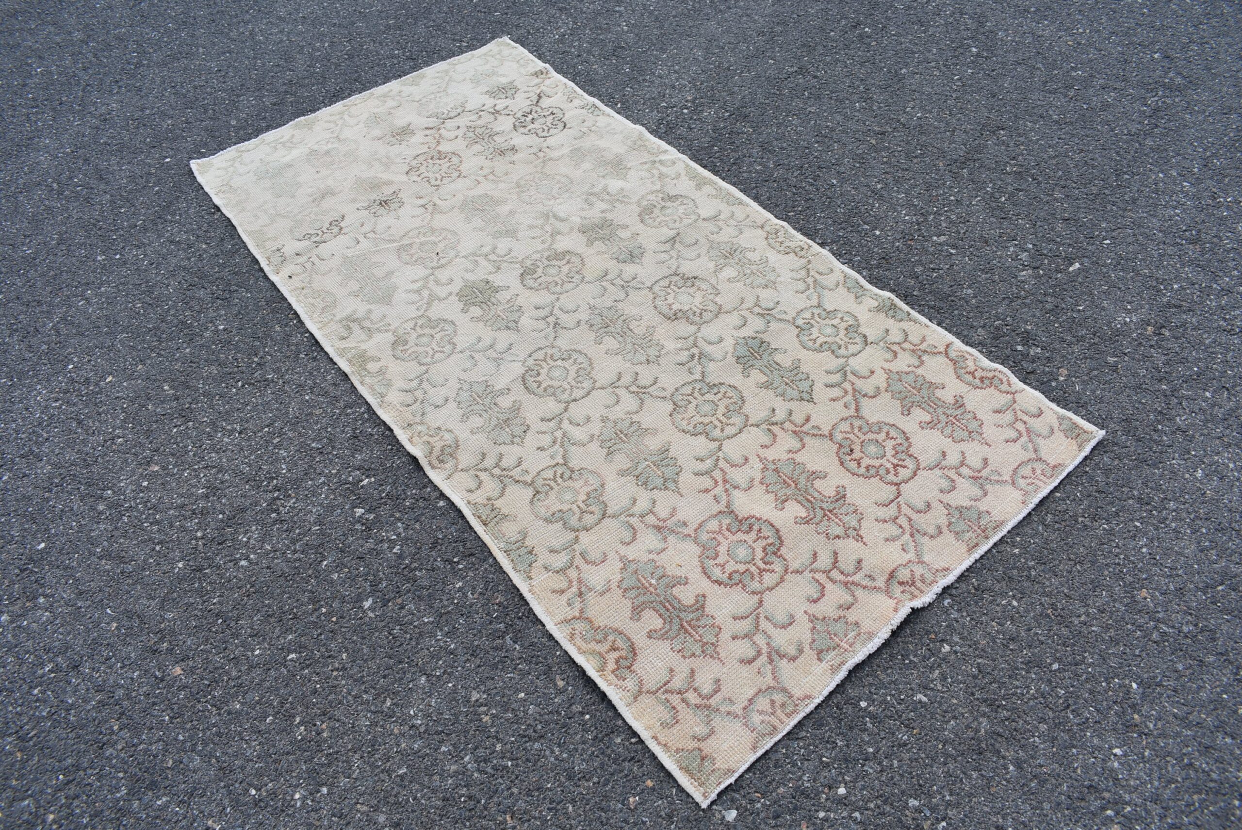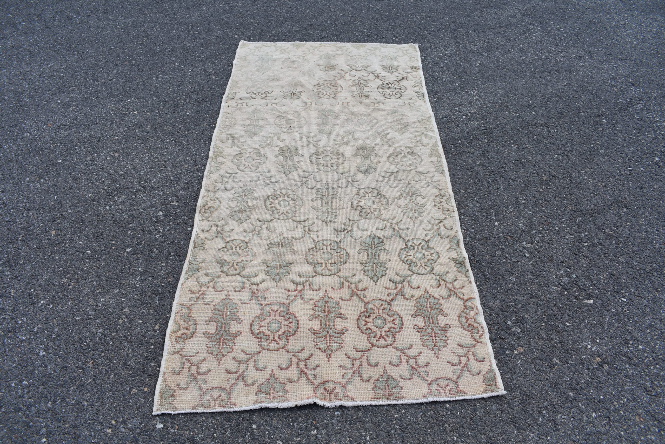 Lovely and unique 2.9 ft. x 6.1 ft. (88 cm x 186 cm) vintage Turkish rug hand-knotted in Turkey from organic wool. This is an authentic vintage Turkish rug from the 1980s that has worn beautifully to perfection.