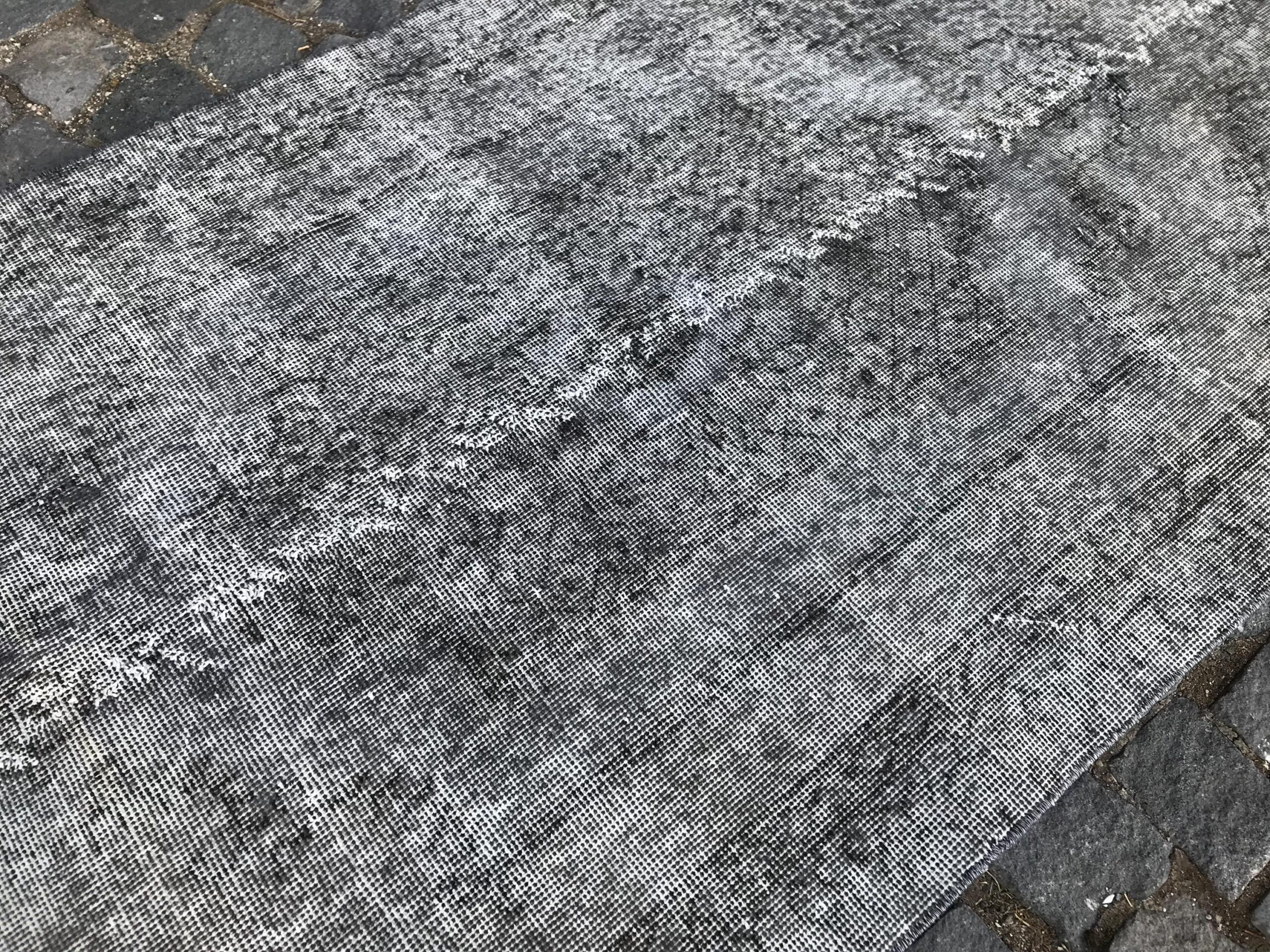 This is a vintage overdyed rug made through over-dyeing an authentic vintage Turkish rug using natural (vegetable) dyes. This rug originated in a small village in Turkey where it was hand-knotted from natural wool (sheep) by skilled Anatolian women during around the 1980s. Natural materials are more durable than synthetic materials guaranteeing a rug that can last for years while natural dyes provide colors that gets more beautiful as years pass by especially when in direct sunlight.