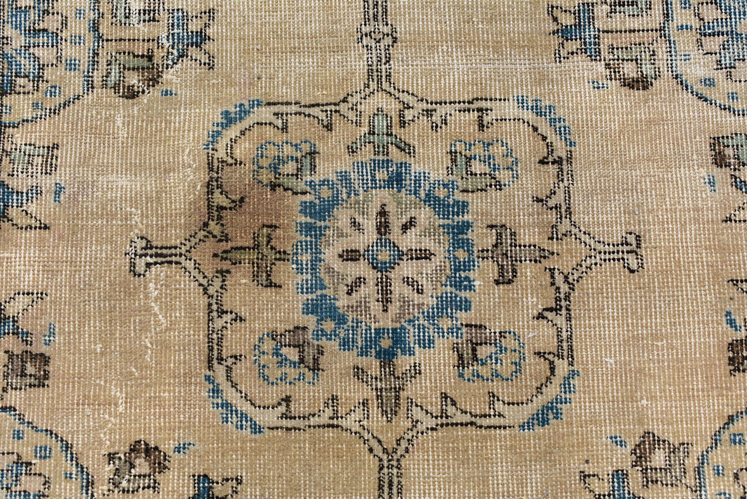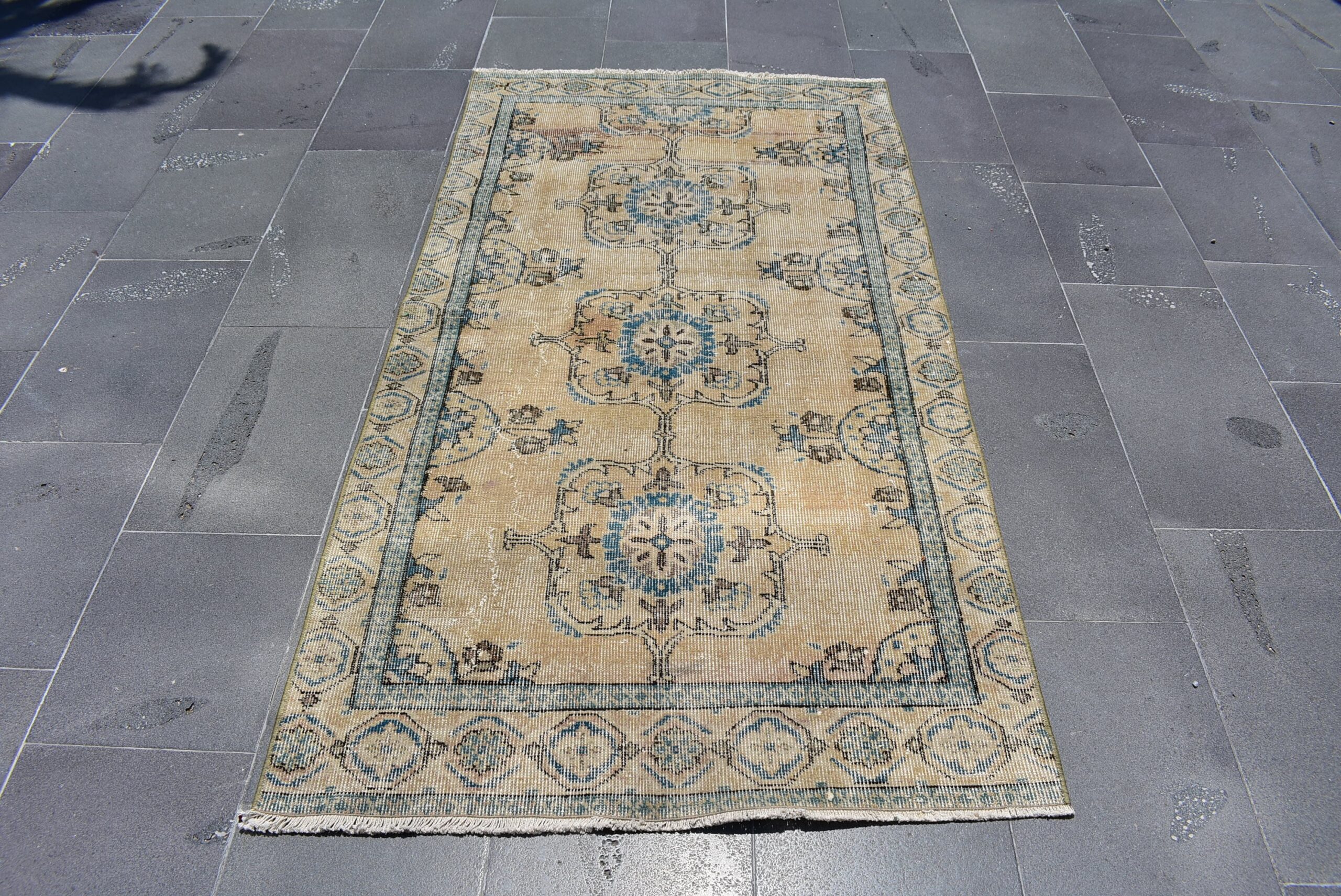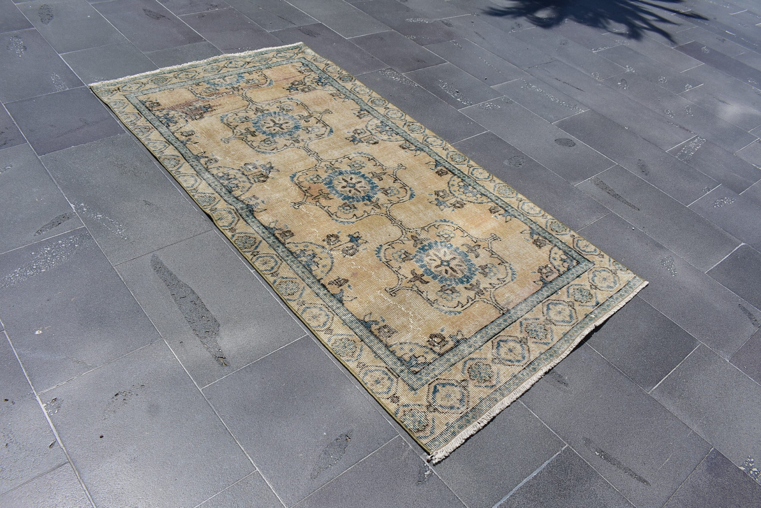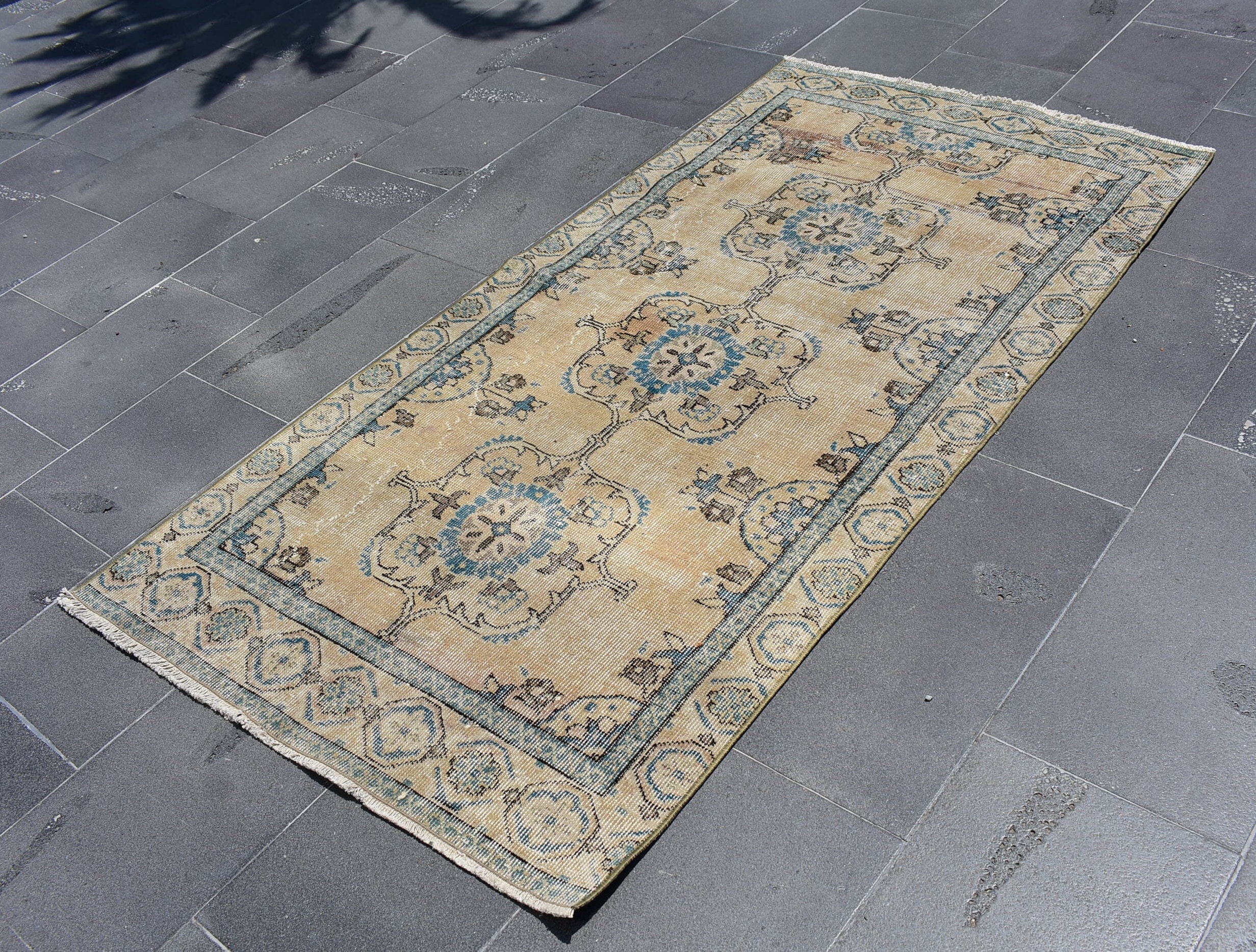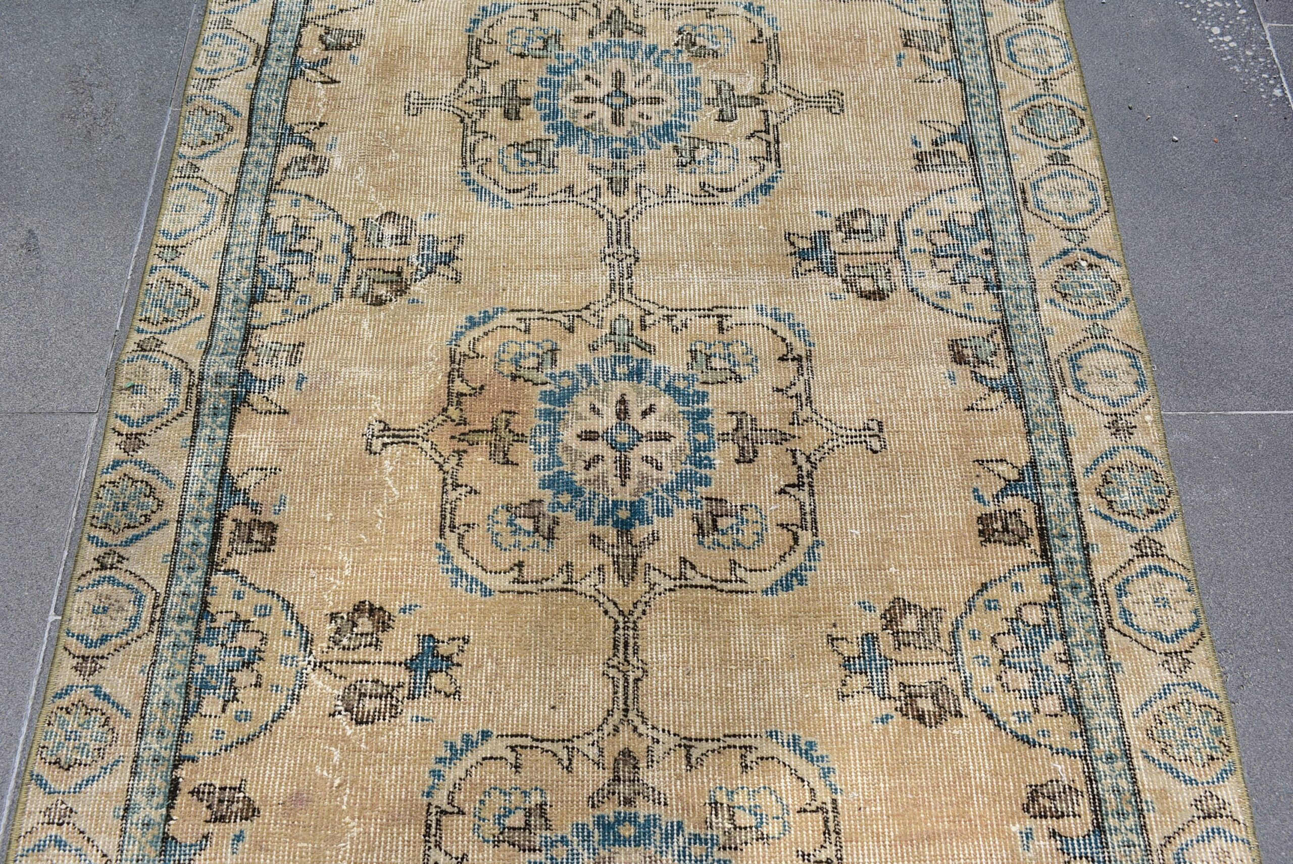 Beautiful and one-of-a-kind 3.2 ft. x 6.1 ft. (97 cm x 187 cm) vintage Turkish rug hand-knotted in Turkey from organic wool. This is an authentic vintage Turkish rug from the 1980s that has worn admirably to perfection.