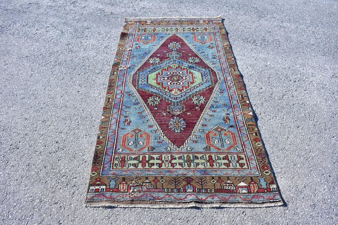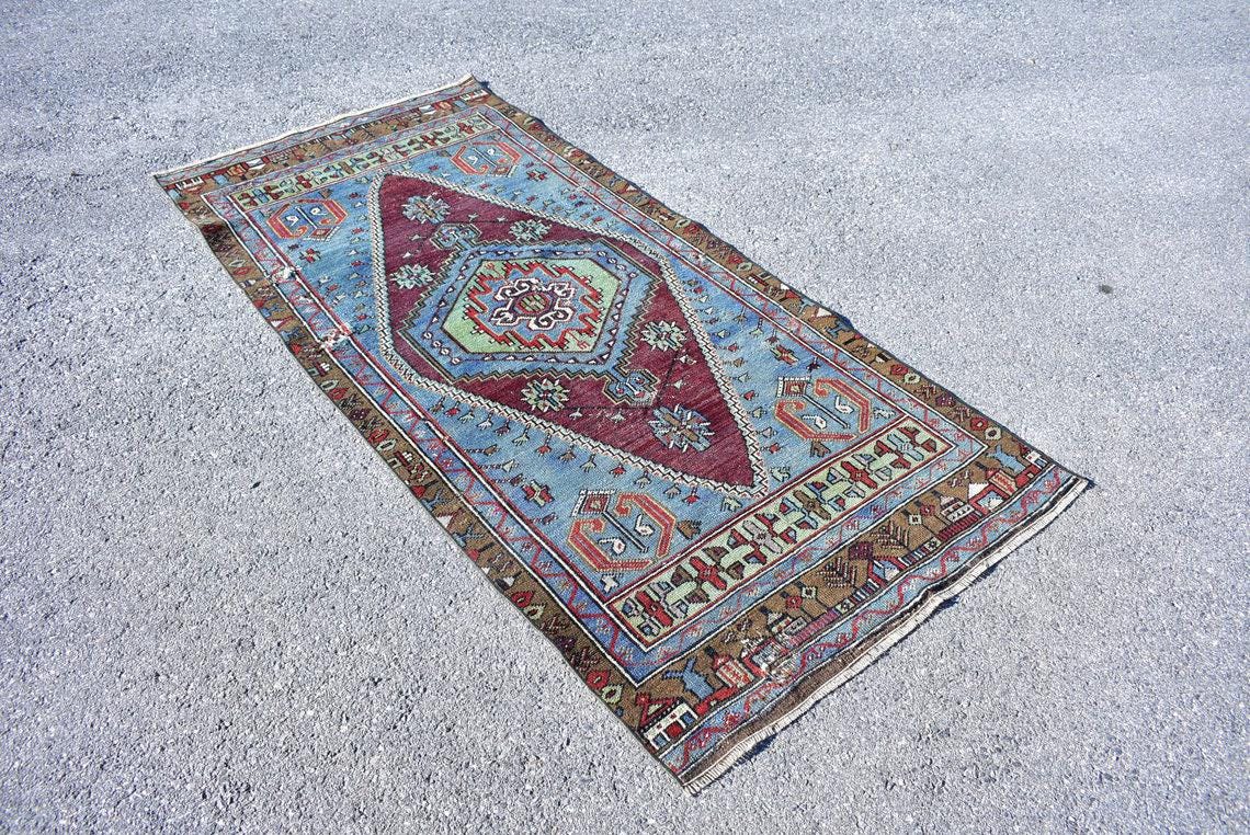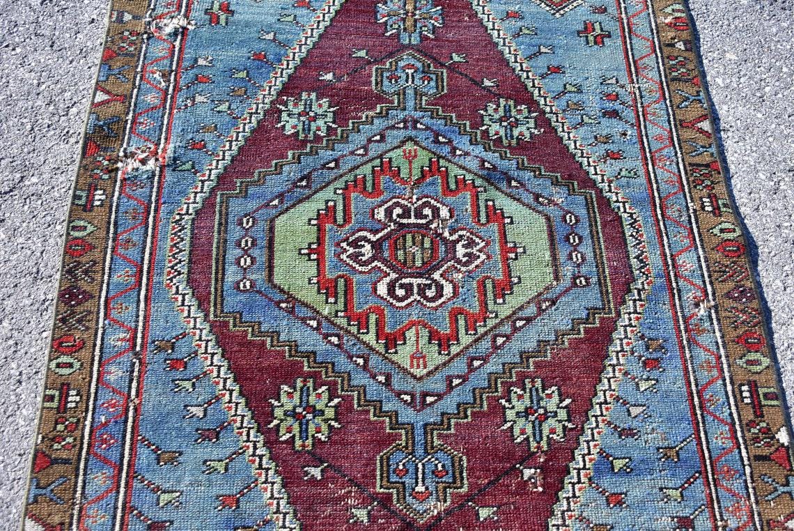 Pretty and one-of-a-kind 3.2 ft. x 6.6 ft. (97 cm x 202 cm) vintage Turkish rug hand-knotted in Turkey from organic wool. This is an authentic vintage Turkish rug from the 1980s that has worn splendidly to perfection.