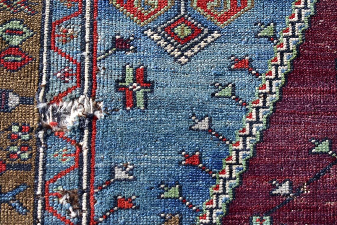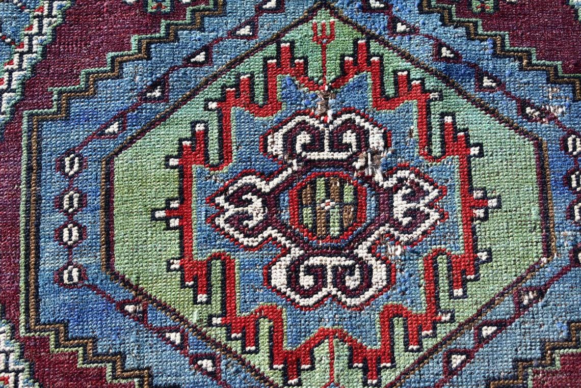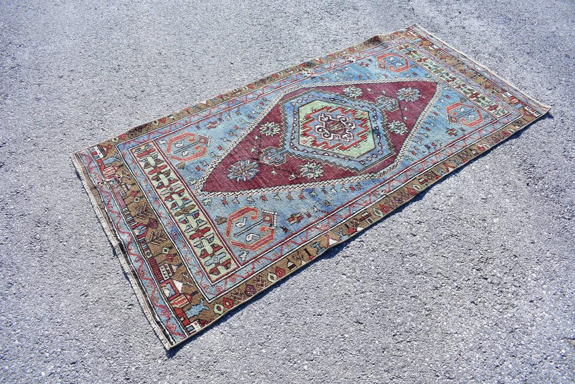 This is a vintage Turkish rug hand-knotted in a small village in Turkey by skilled Anatolian women during around the 1980s. It is made from natural wool (sheep) and dyed using all-natural (vegetable) dyes. Natural materials are more durable than synthetic materials guaranteeing a rug that can last for years while natural dyes provide colors that gets more beautiful as years pass by especially when in direct sunlight.