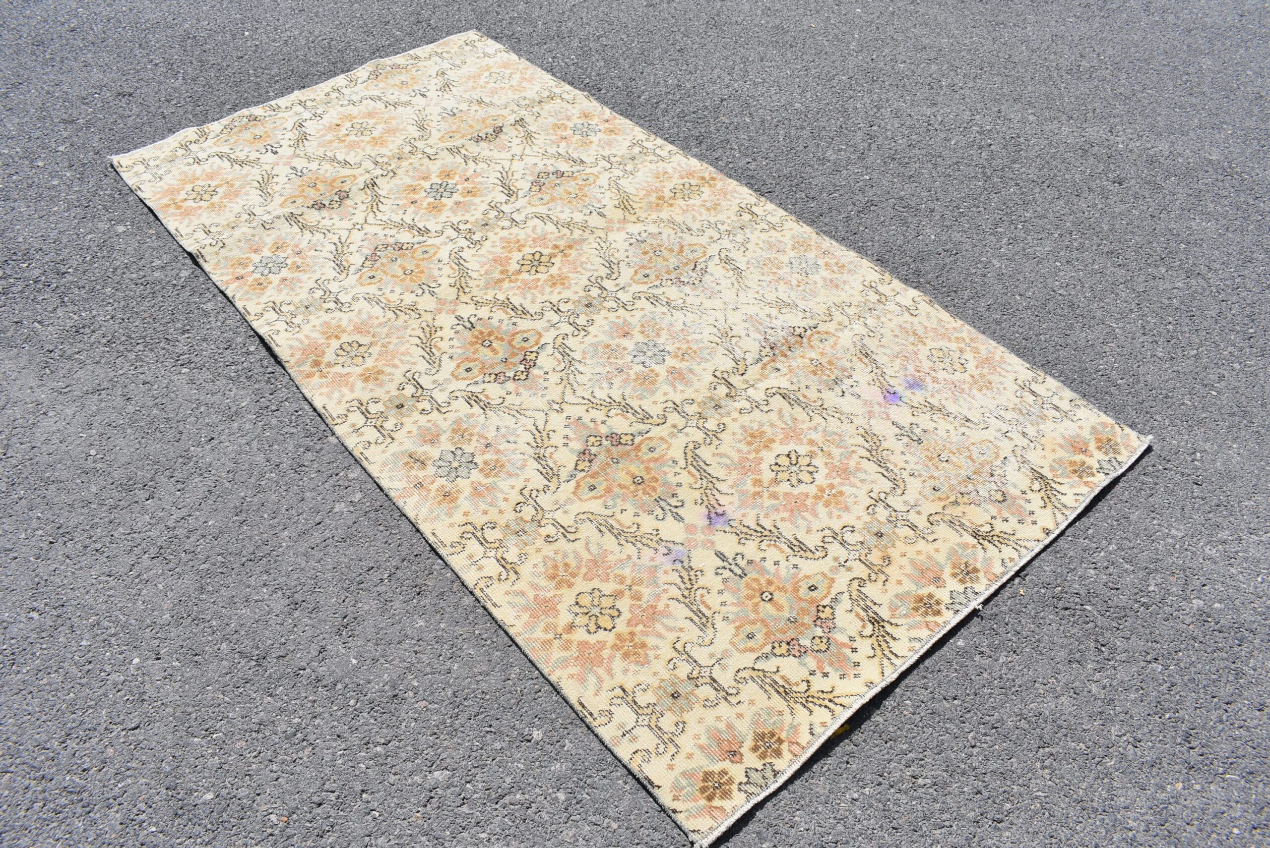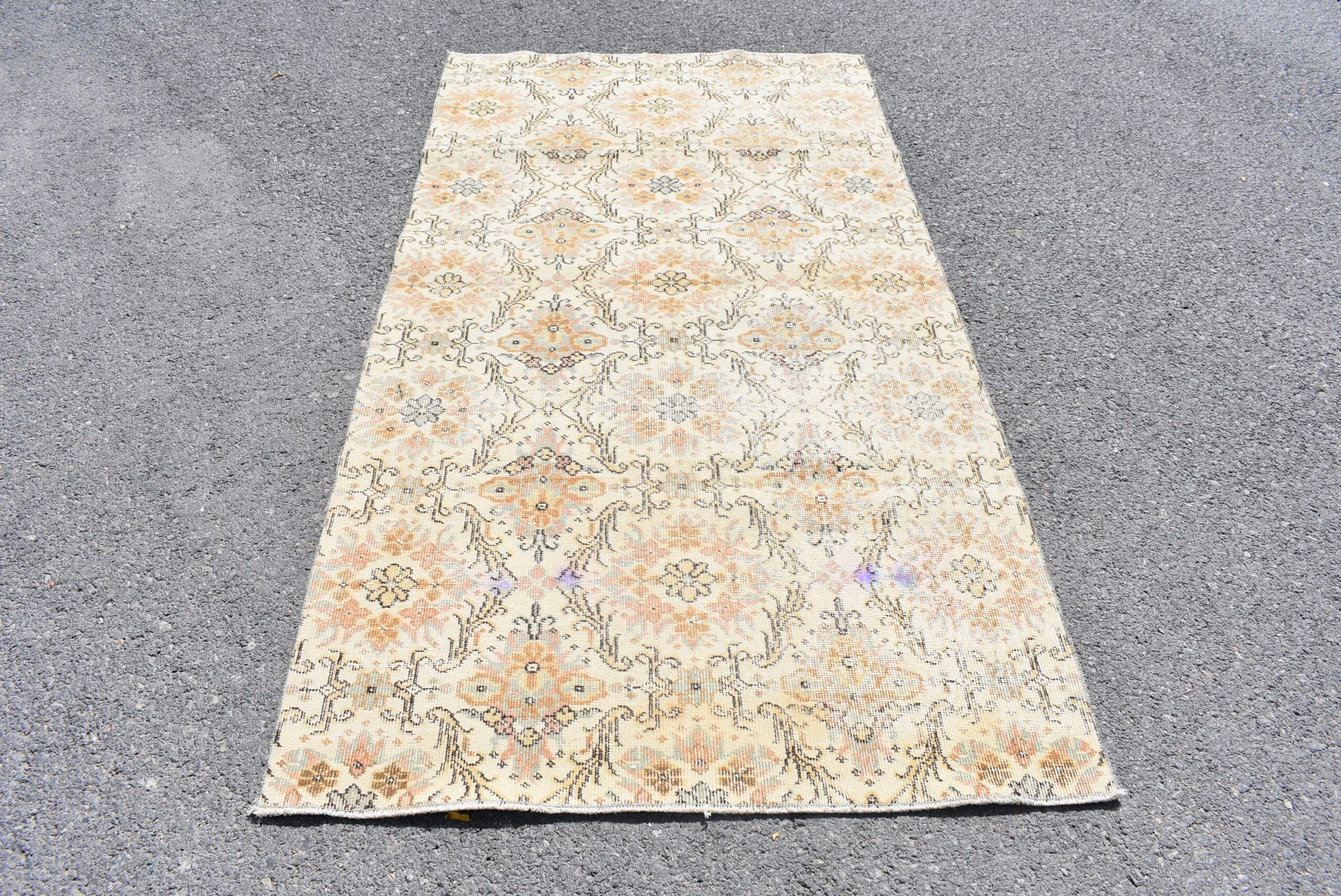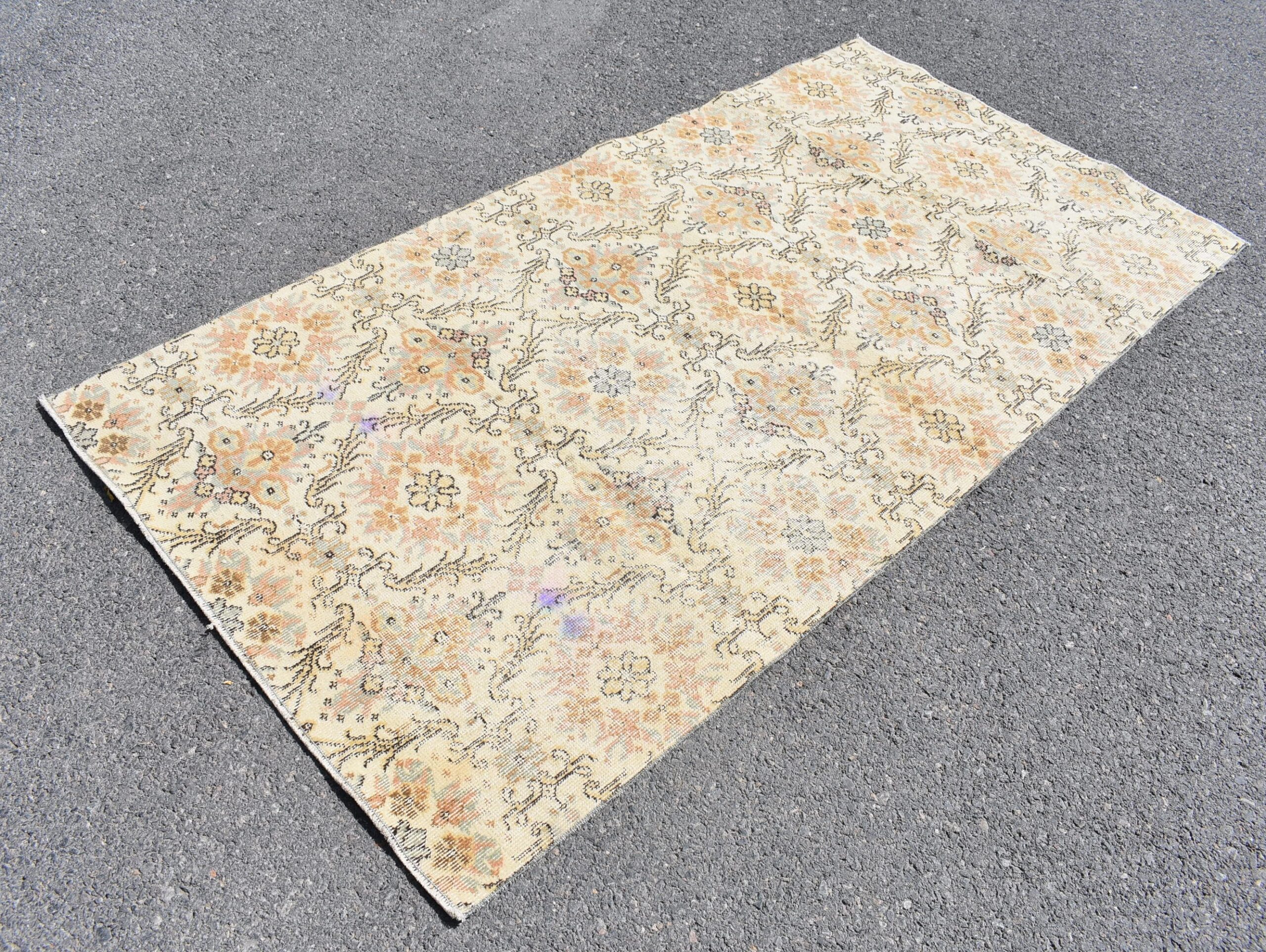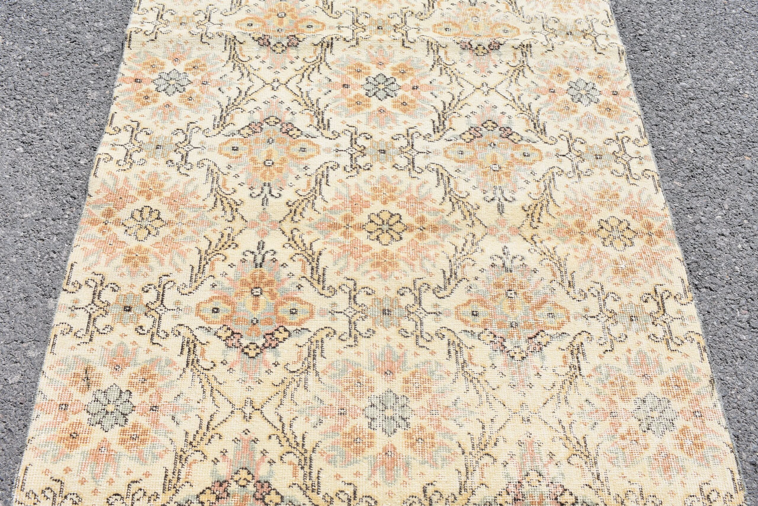 Lovely and unique 3.6 ft. x 7.2 ft. (110 cm x 220 cm) vintage Turkish rug hand-knotted in Turkey from organic wool. This is an authentic vintage Turkish rug from the 1980s that has worn beautifully to perfection.
