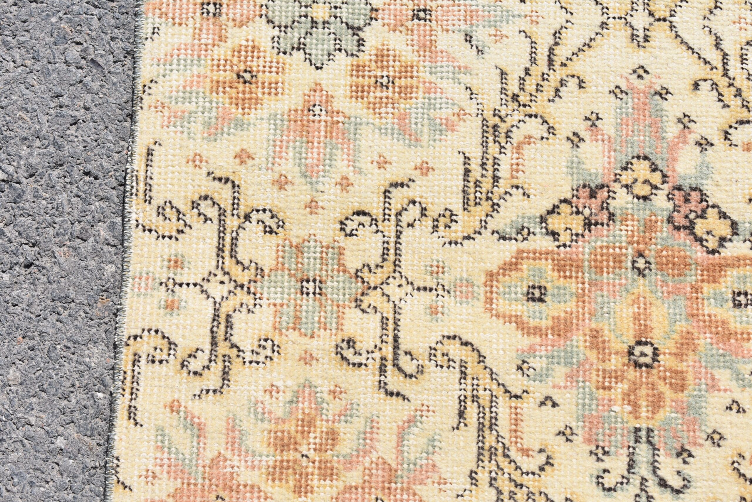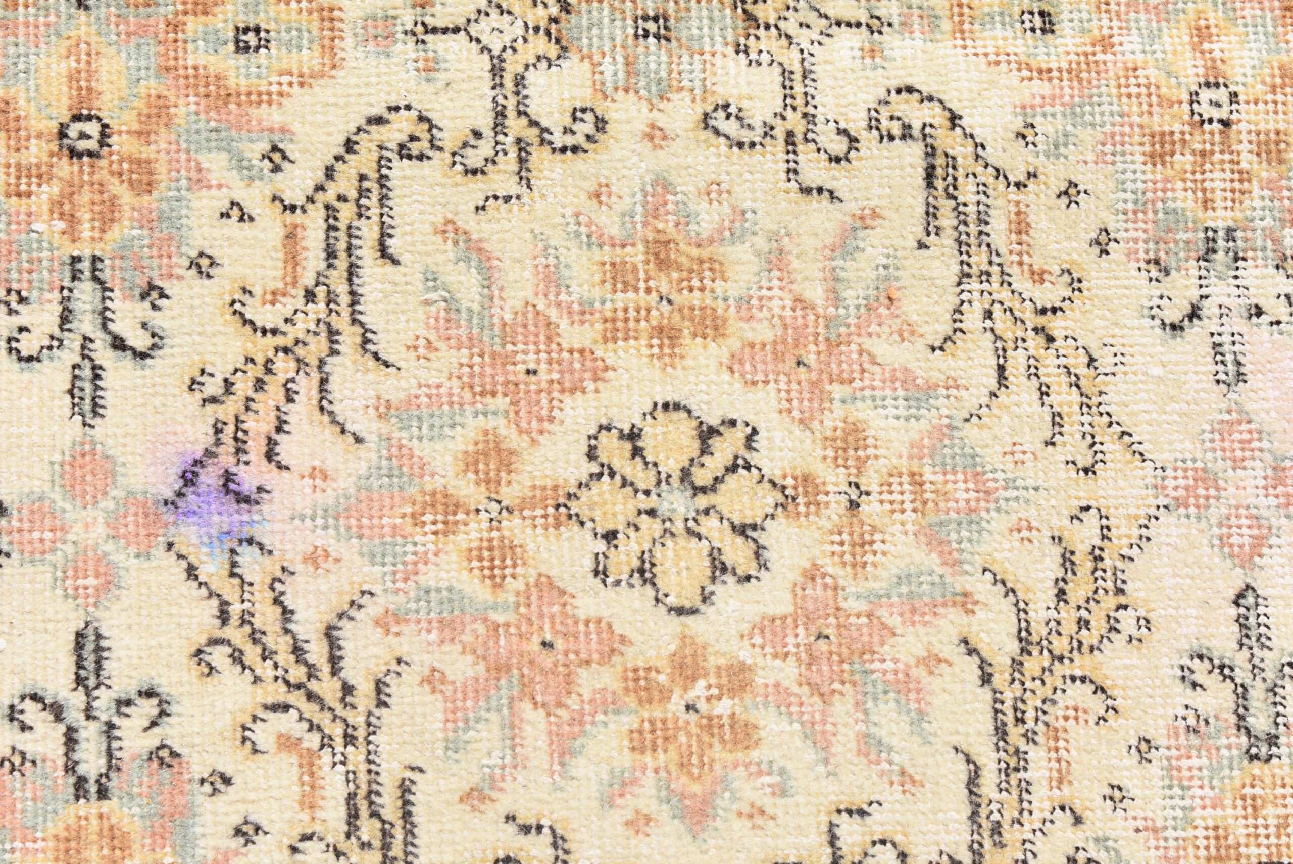This is a vintage Turkish rug hand-knotted in a small village in Turkey by skilled Anatolian women during around the 1980s. It is made from natural wool (sheep) and dyed using all-natural (vegetable) dyes. Natural materials are more durable than synthetic materials guaranteeing a rug that can last for years while natural dyes provide colors that gets more beautiful as years pass by especially when in direct sunlight.