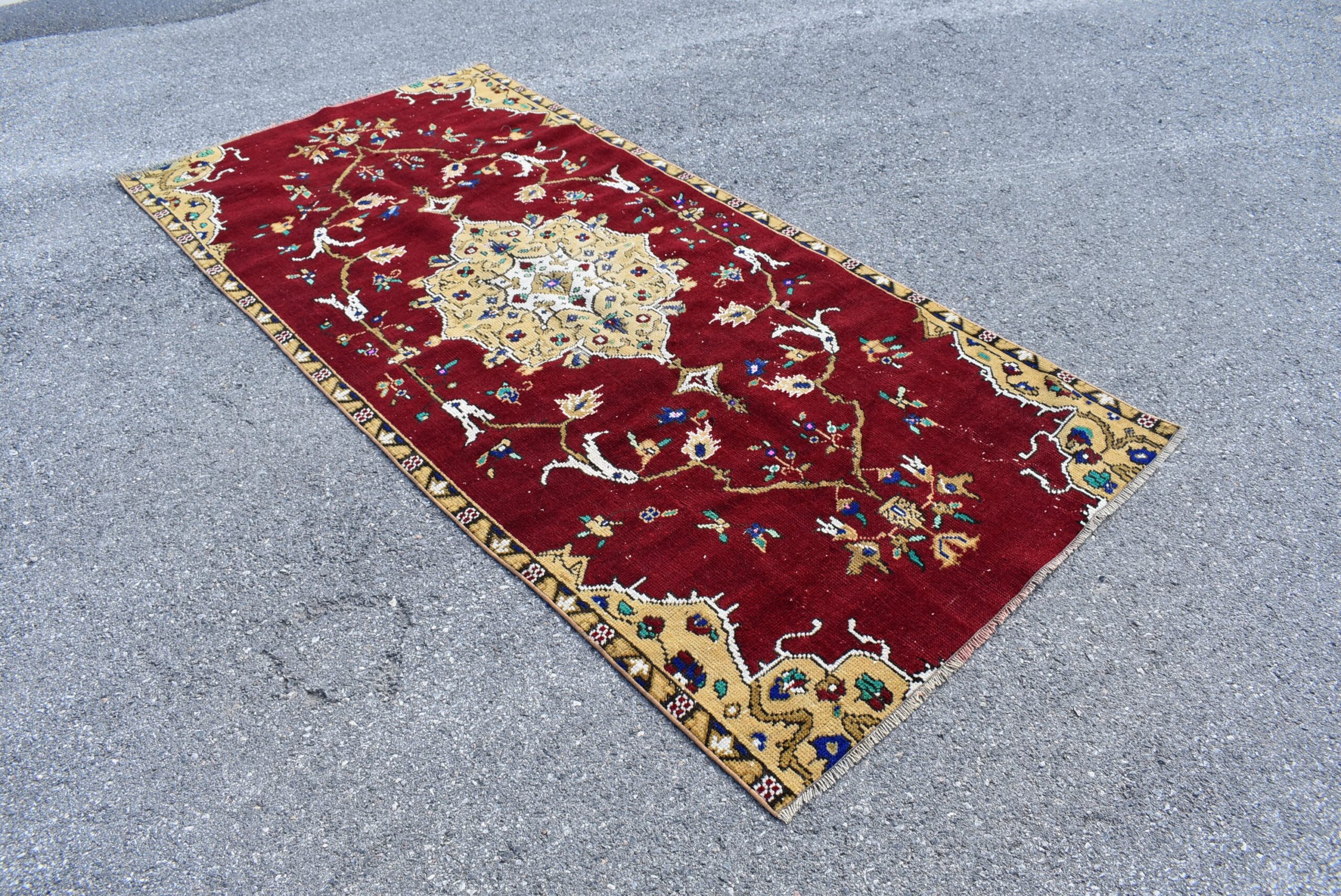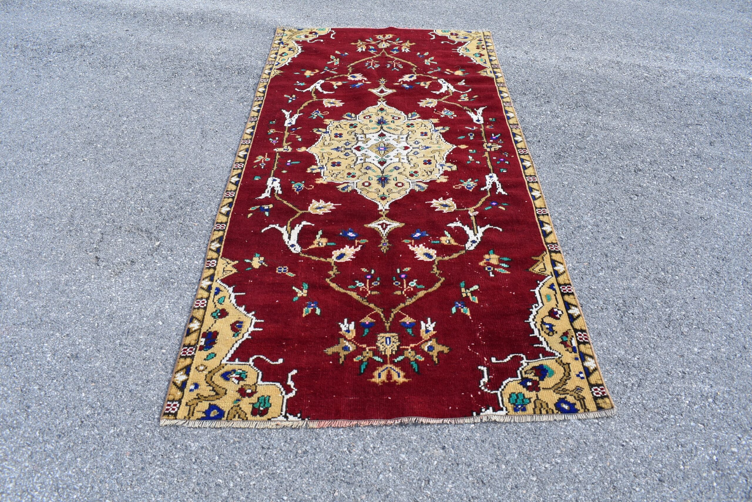 Pretty and one-of-a-kind 3.6 ft. x 7.7 ft. (111 cm x 235 cm) vintage Turkish rug hand-knotted in Turkey from organic wool. This is an authentic vintage Turkish rug from the 1990s that has worn splendidly to perfection.