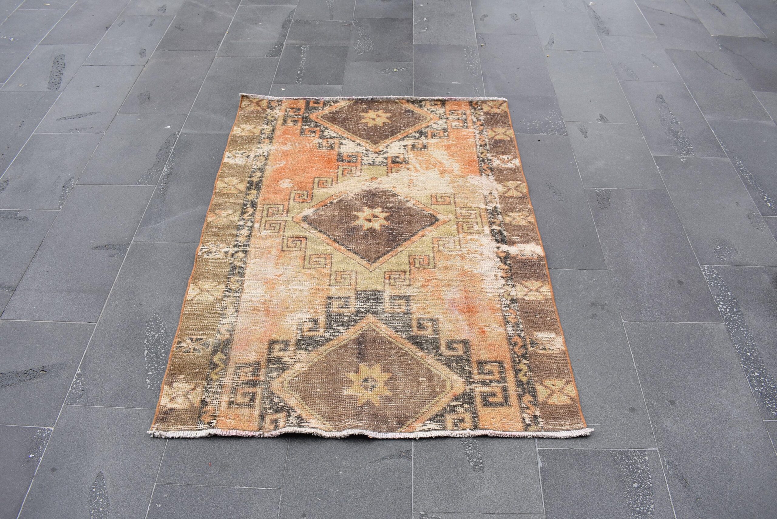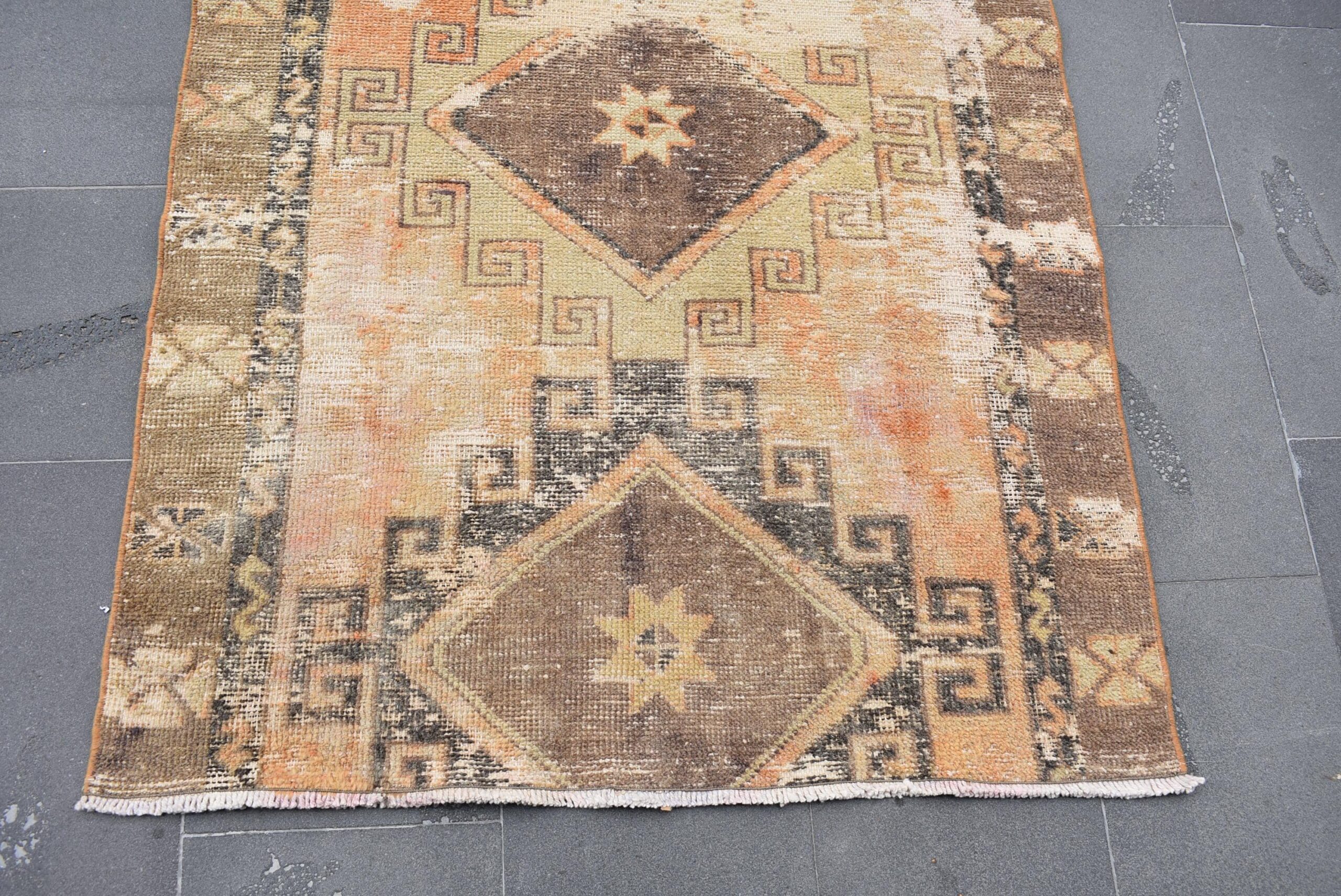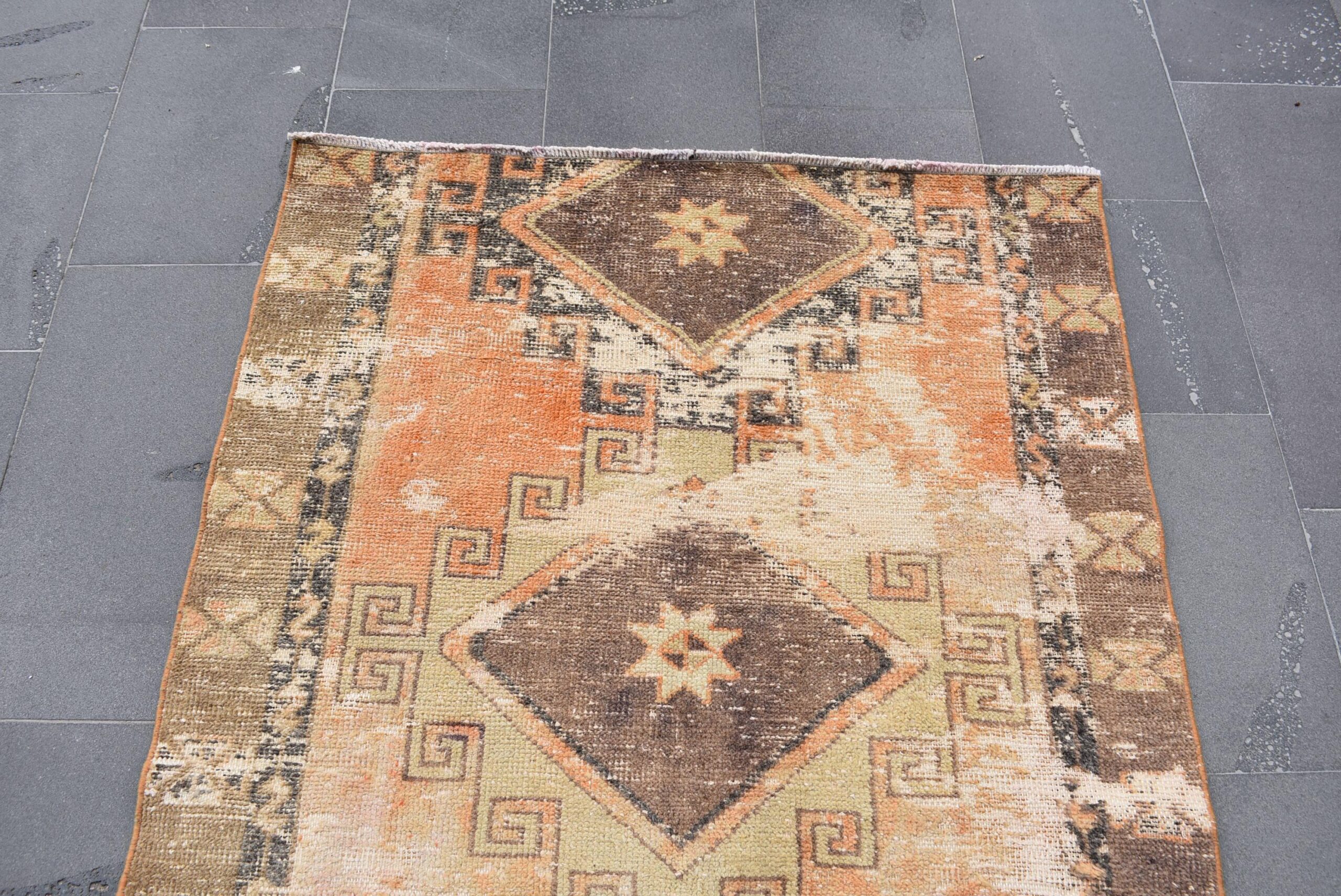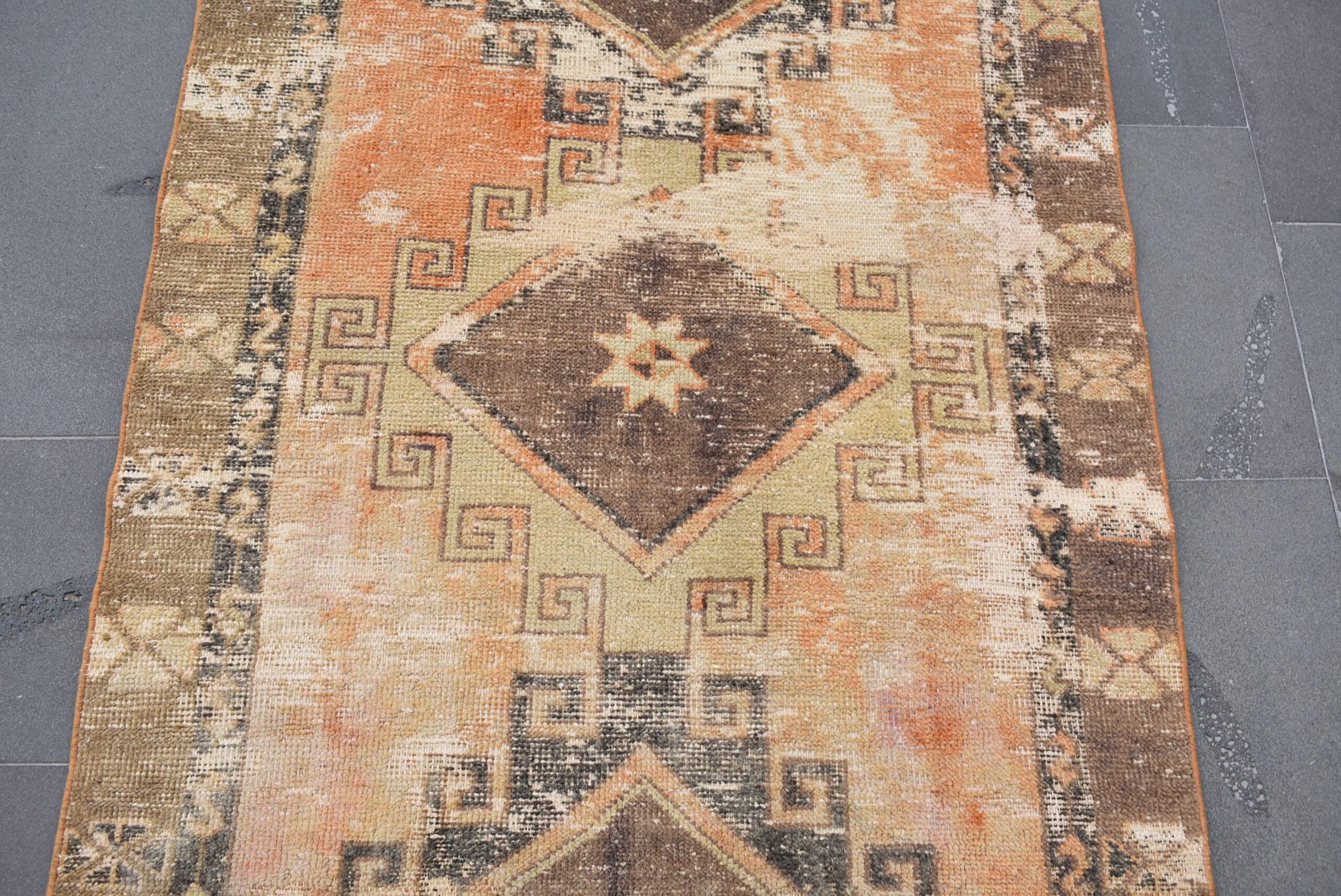 Pretty and one-of-a-kind 3.6 ft. x 8.2 ft. (111 cm x 251 cm) vintage Turkish rug hand-knotted in Turkey from organic wool. This is an authentic vintage Turkish rug from the 1980s that has worn splendidly to perfection.