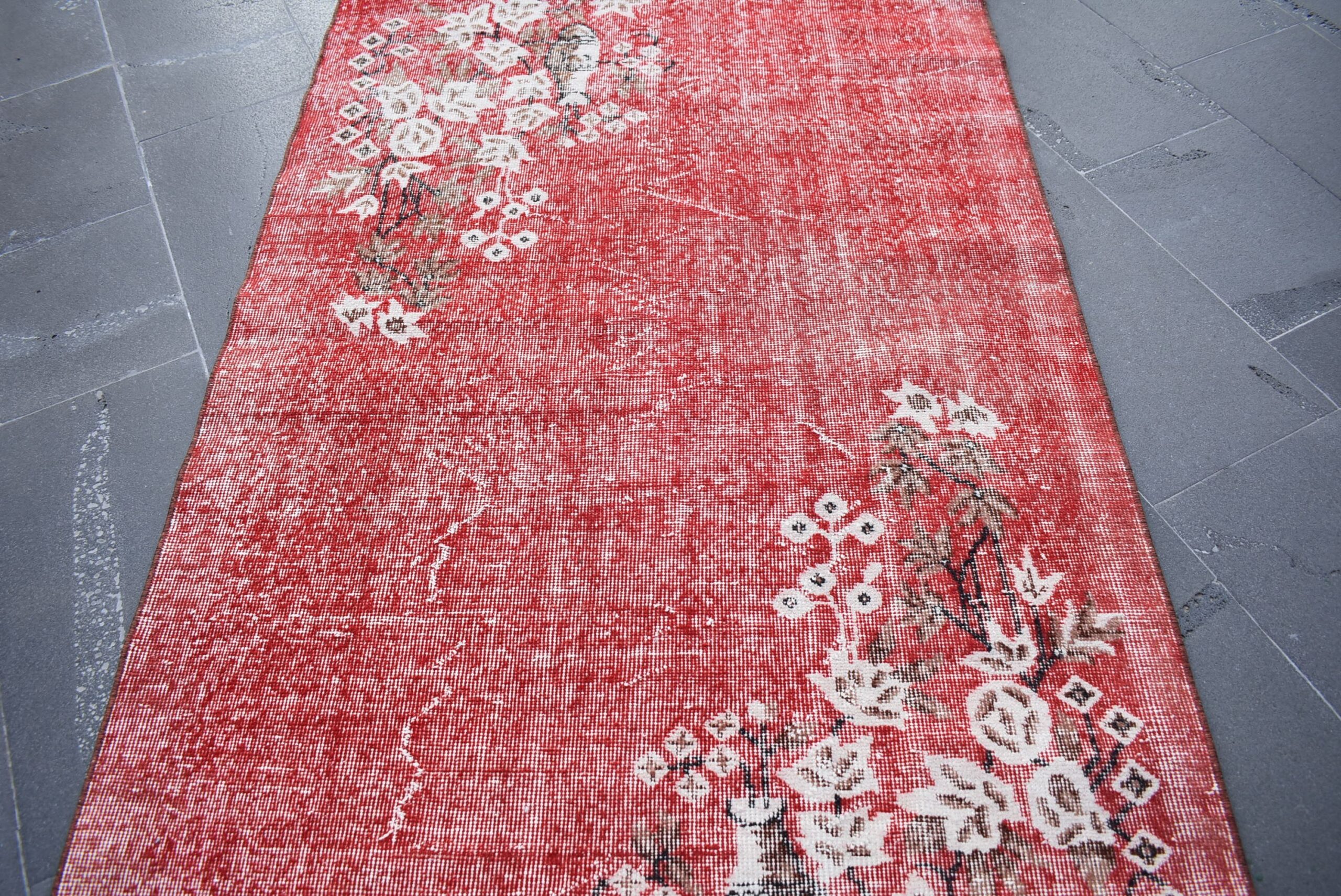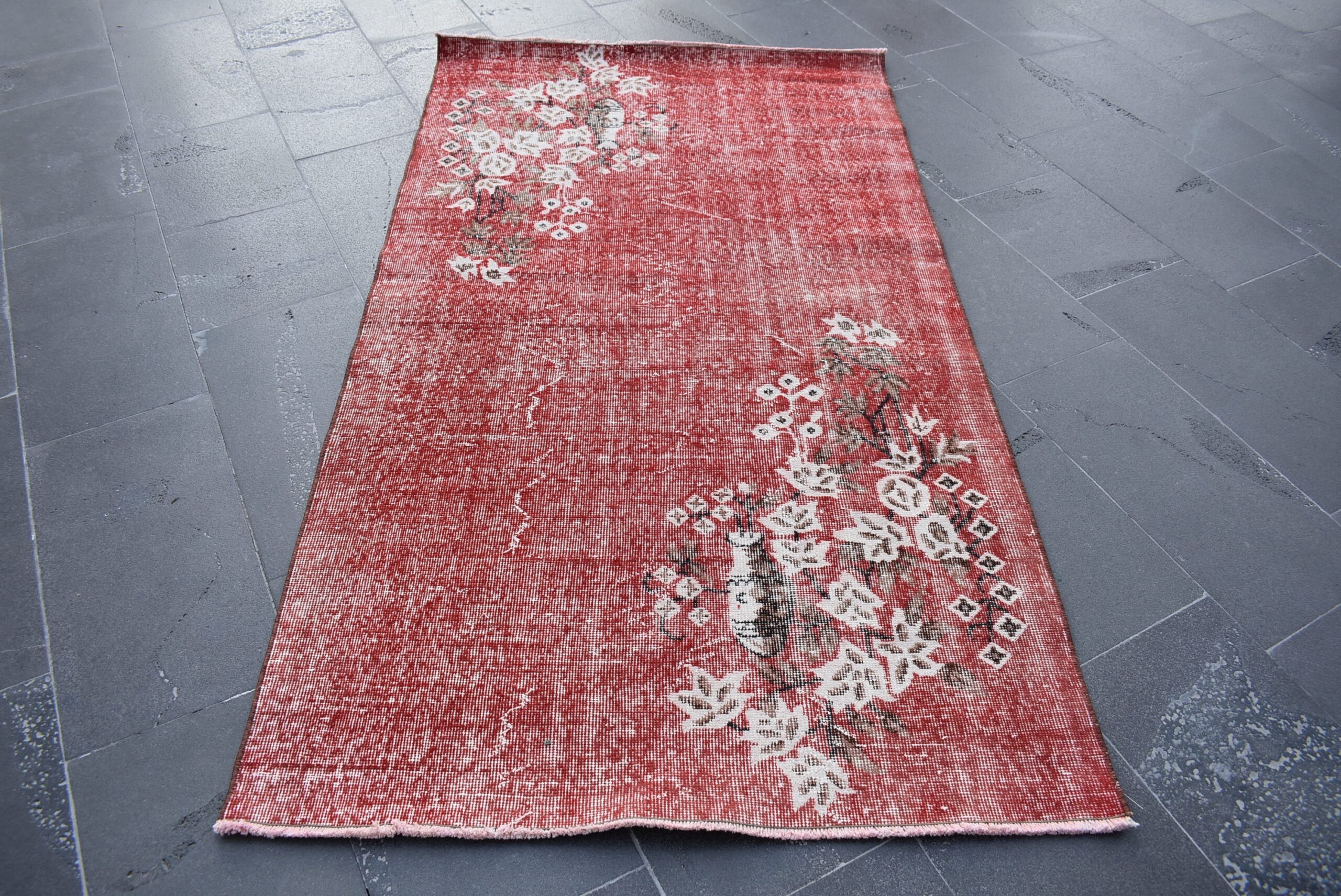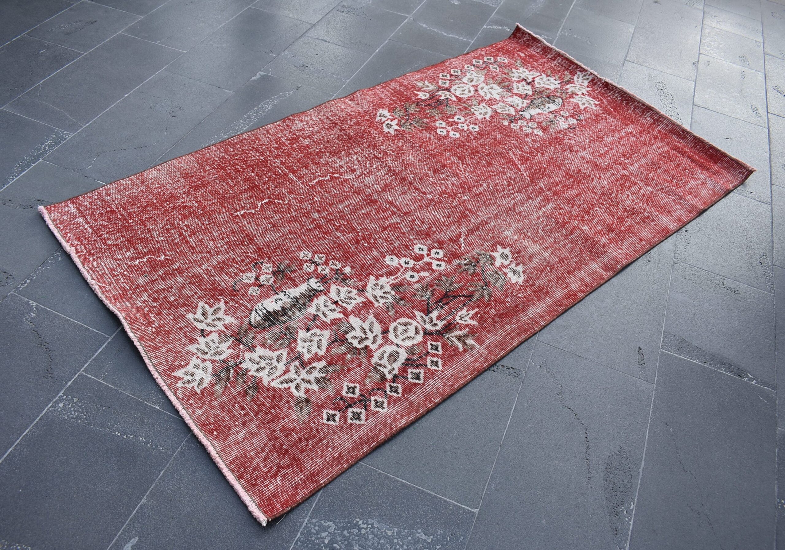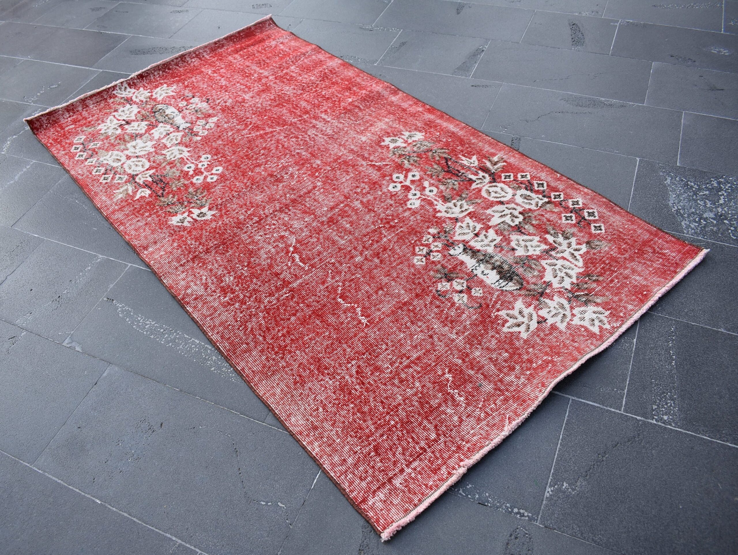 Lovely and unique 3.7 ft. x 6.6 ft. (112 cm x 200 cm) vintage Turkish rug hand-knotted in Turkey from organic wool. This is an authentic vintage Turkish rug from the 1980s that has worn beautifully to perfection.