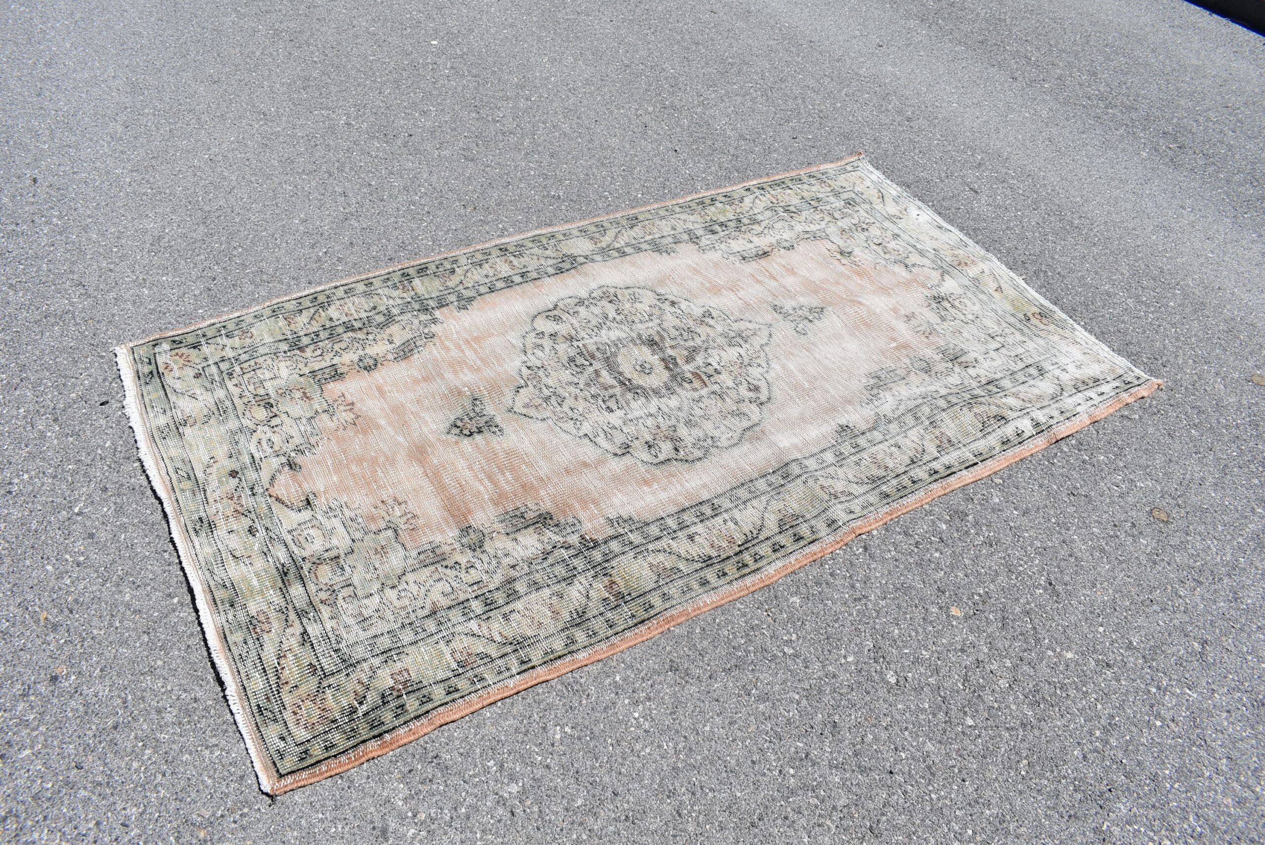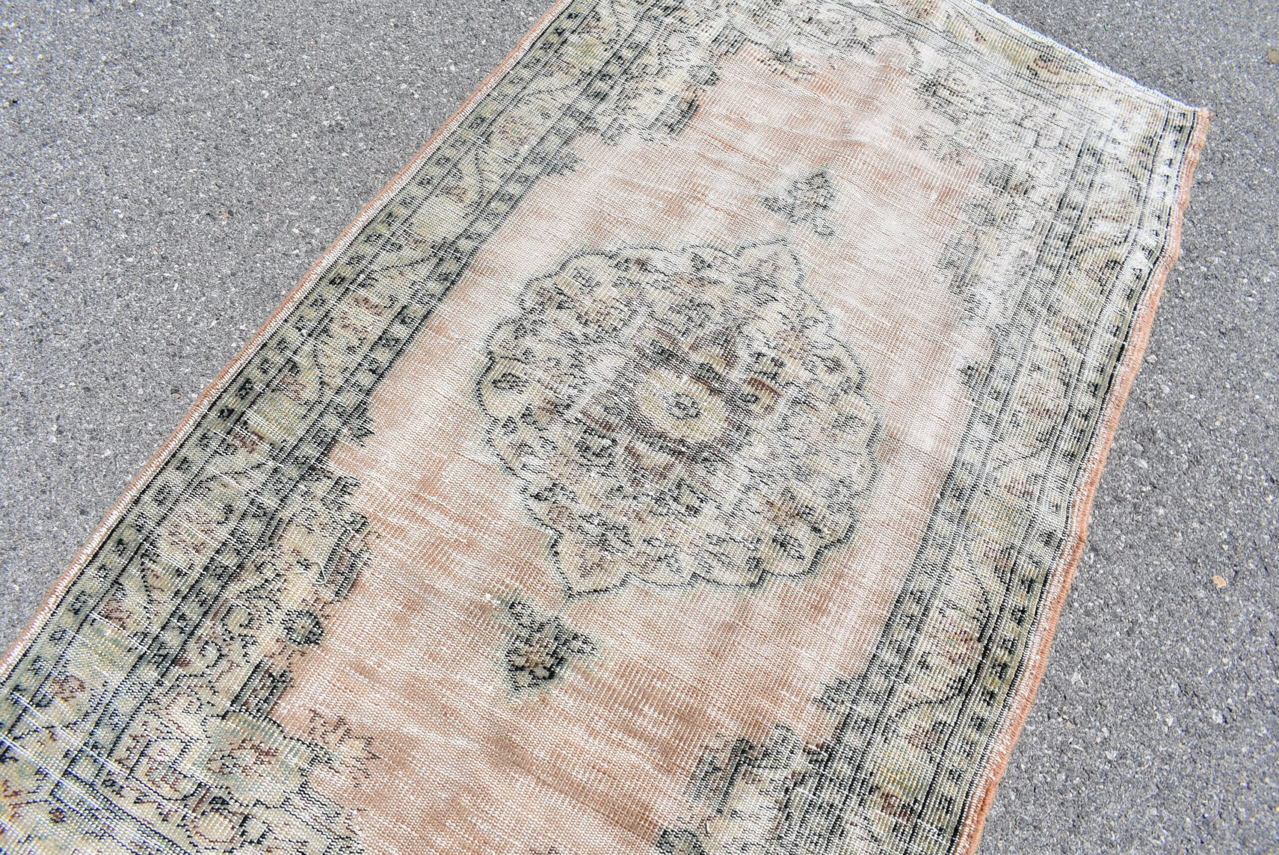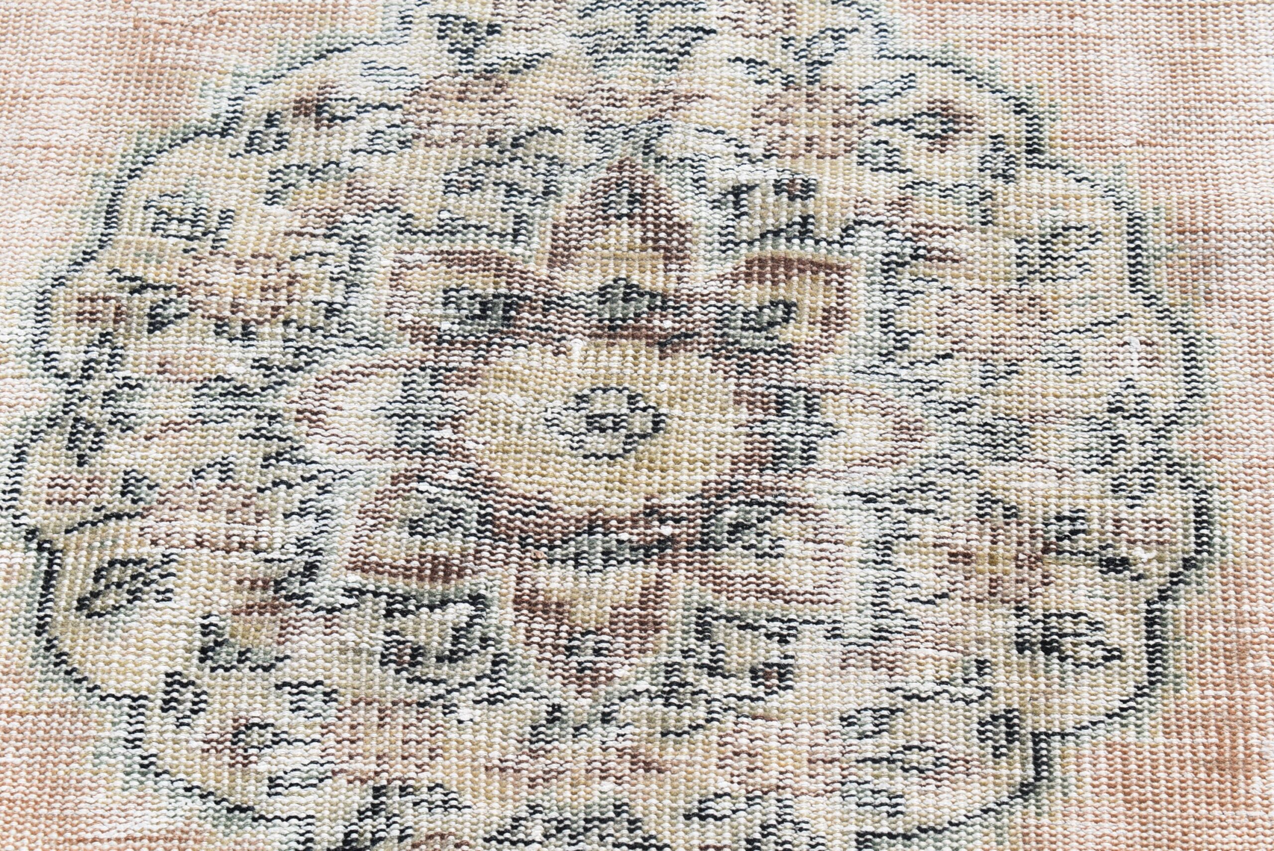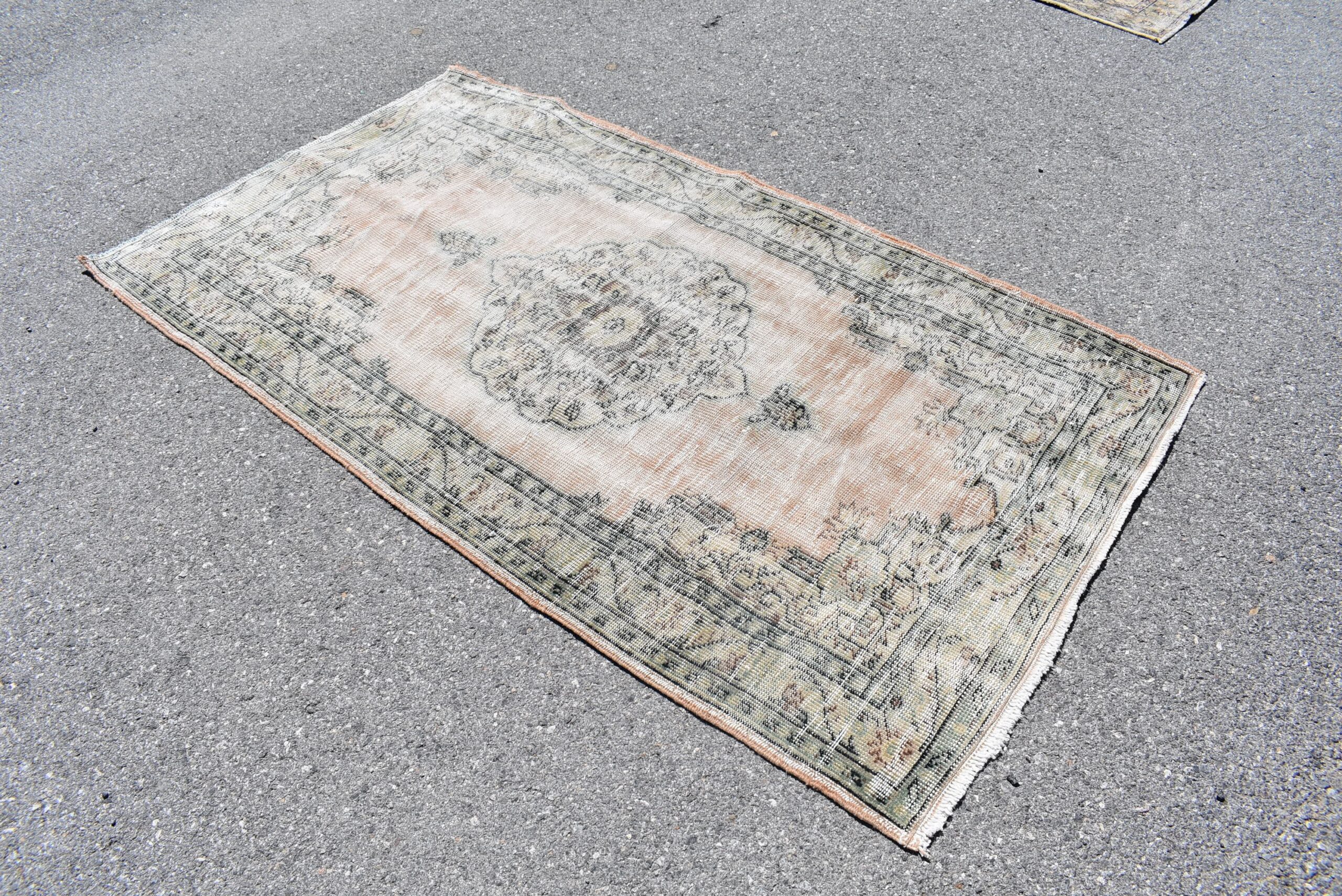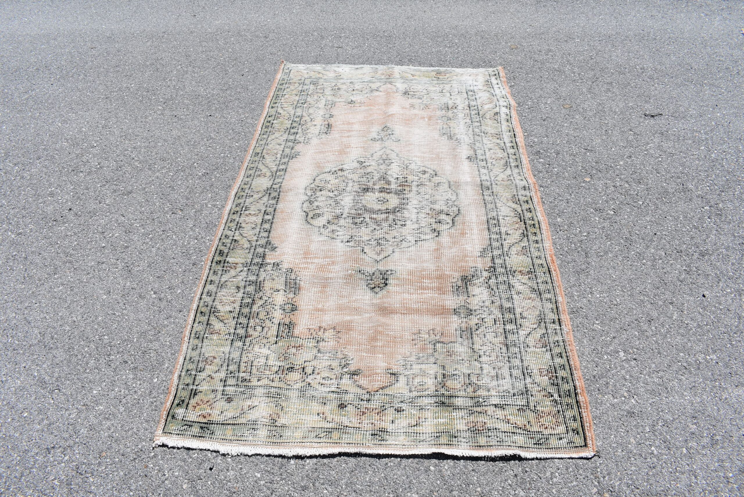 Lovely and unique 3.7 ft. x 6.7 ft. (113 cm x 205 cm) vintage Turkish rug hand-knotted in Turkey from organic wool. This is an authentic vintage Turkish rug from the 1970s that has worn beautifully to perfection.