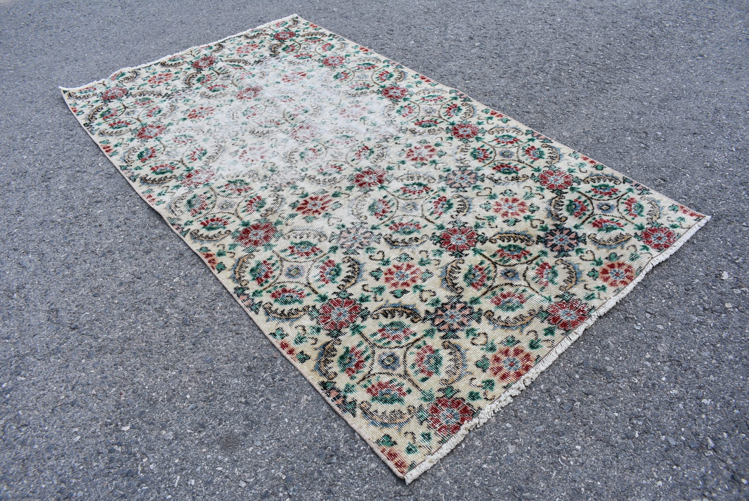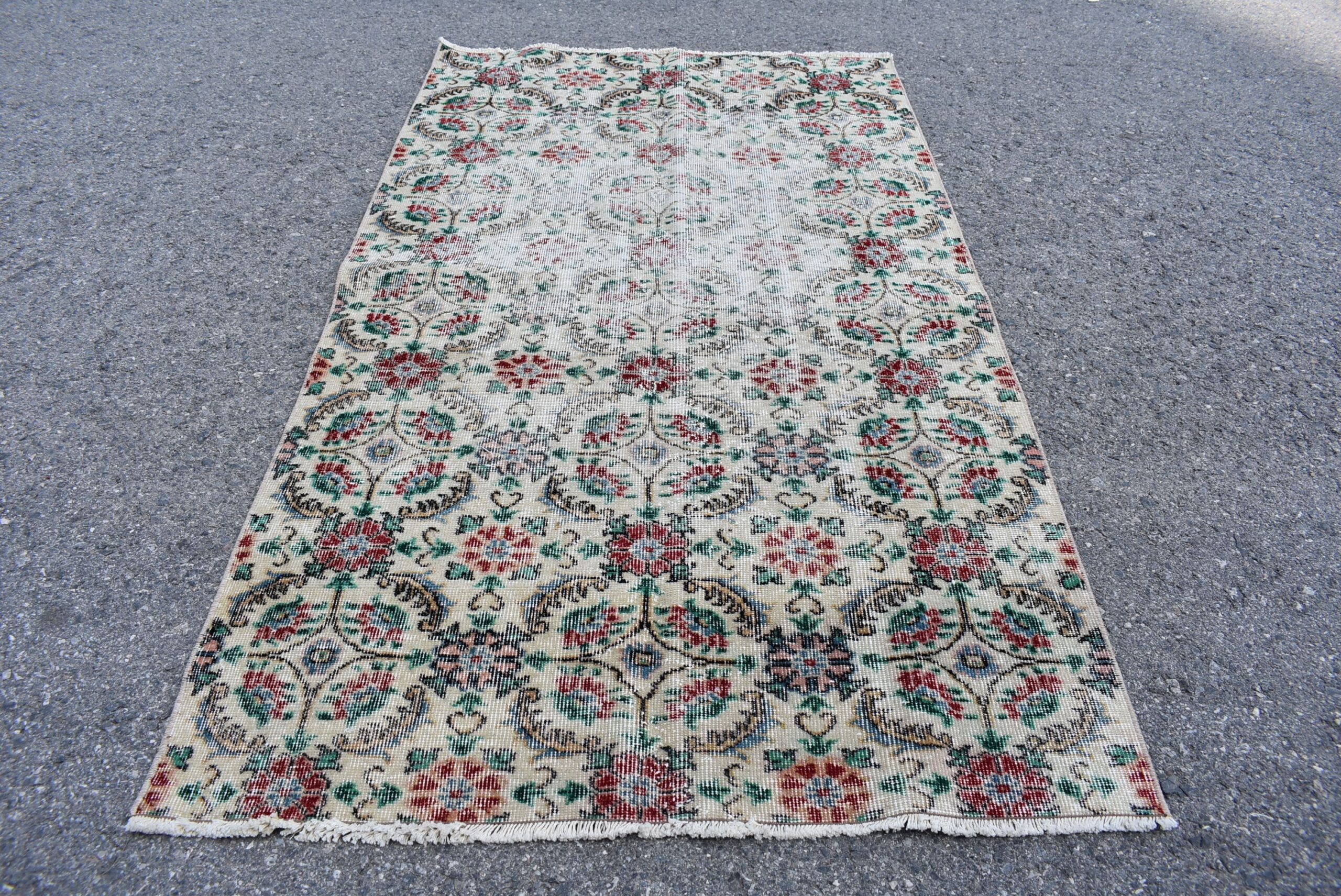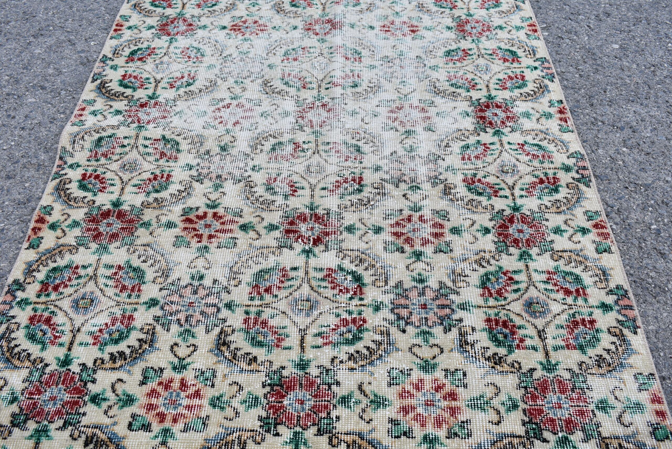 Beautiful and one-of-a-kind 3.7 ft. x 6.7 ft. (112 cm x 205 cm) vintage Turkish rug hand-knotted in Turkey from organic wool. This is an authentic vintage Turkish rug from the 1980s that has worn admirably to perfection.