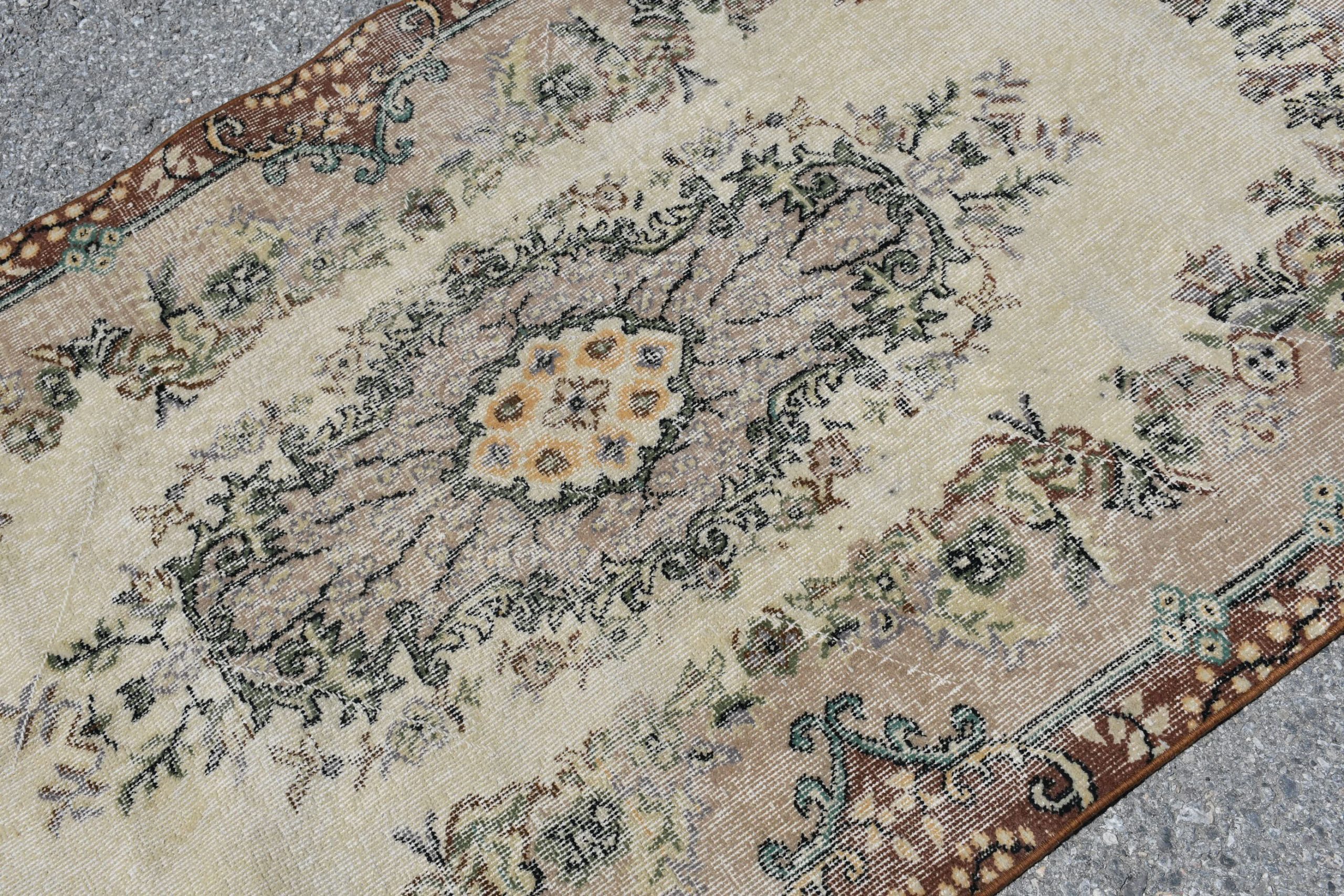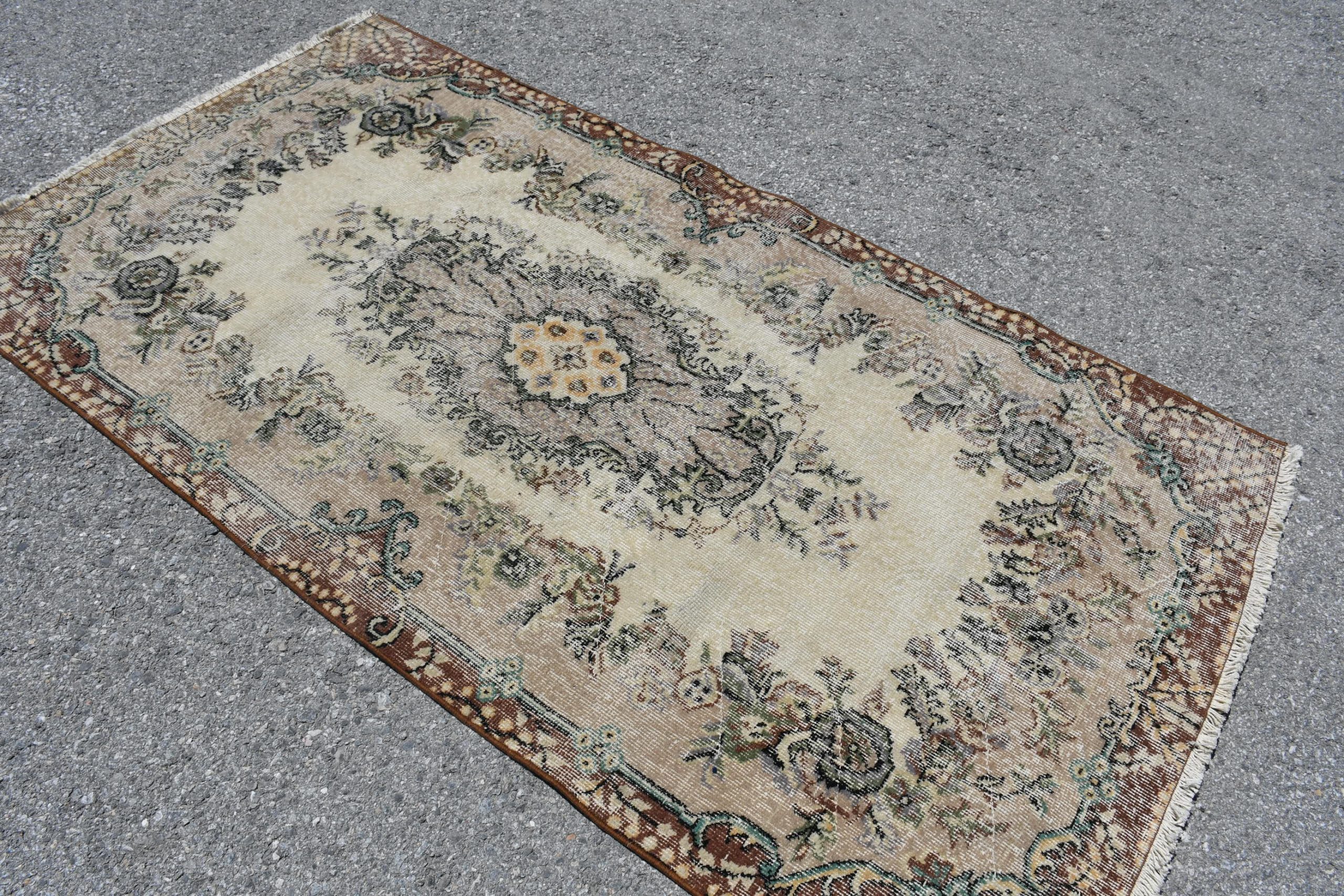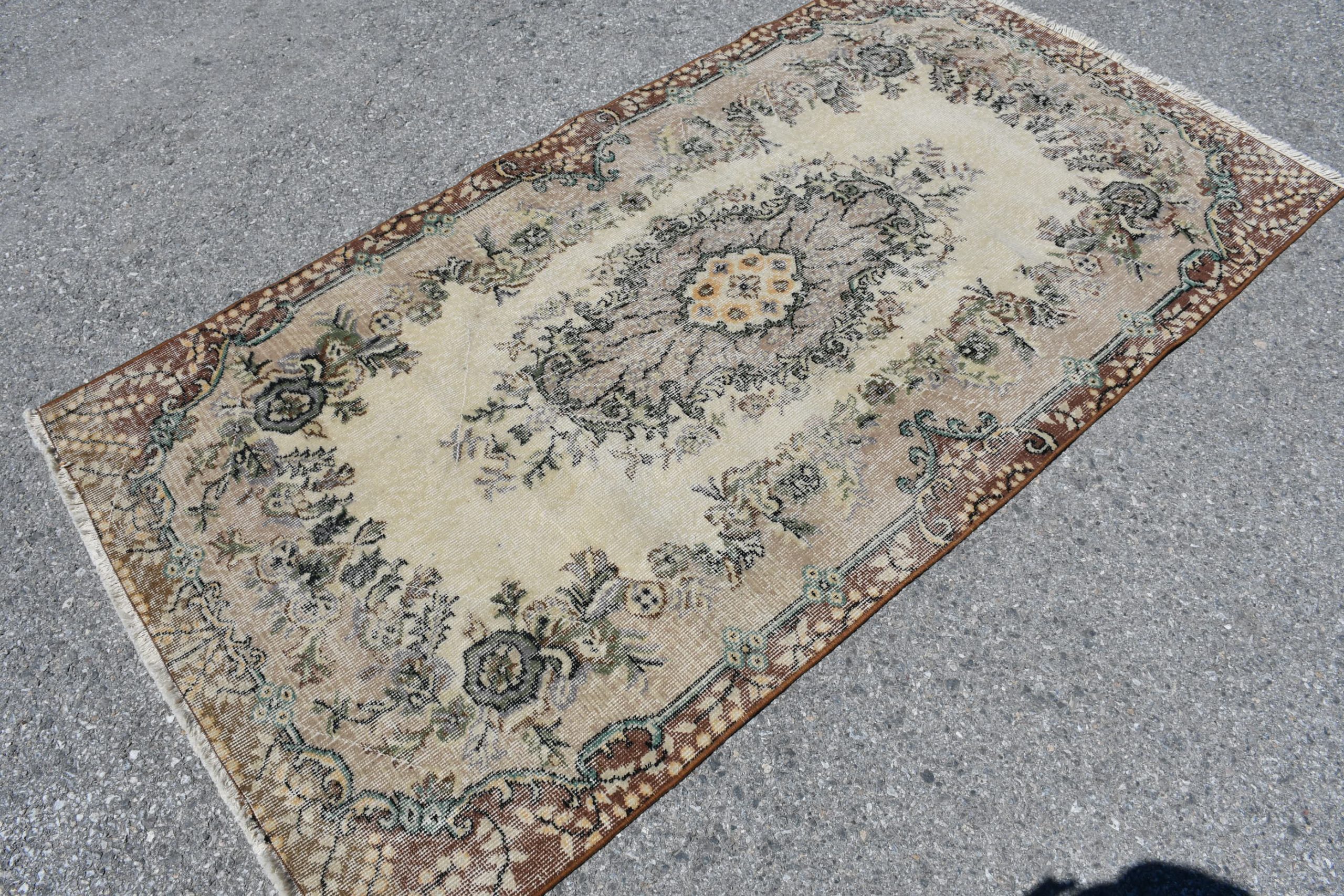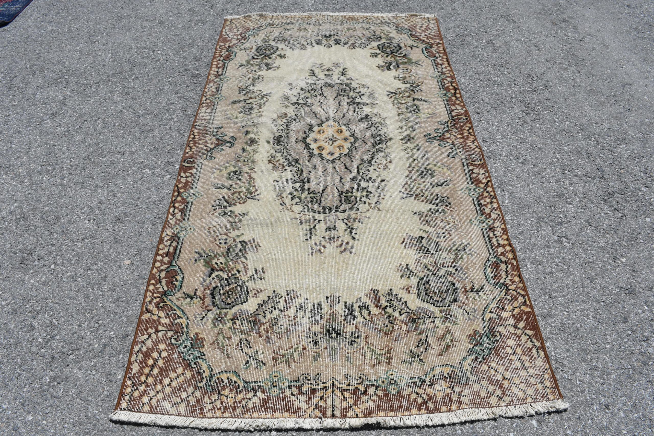 Pretty and one-of-a-kind 3.7 ft. x 6.8 ft. (112 cm x 208 cm) vintage Turkish rug hand-knotted in Turkey from organic wool. This is an authentic vintage Turkish rug from the 1980s that has worn splendidly to perfection.