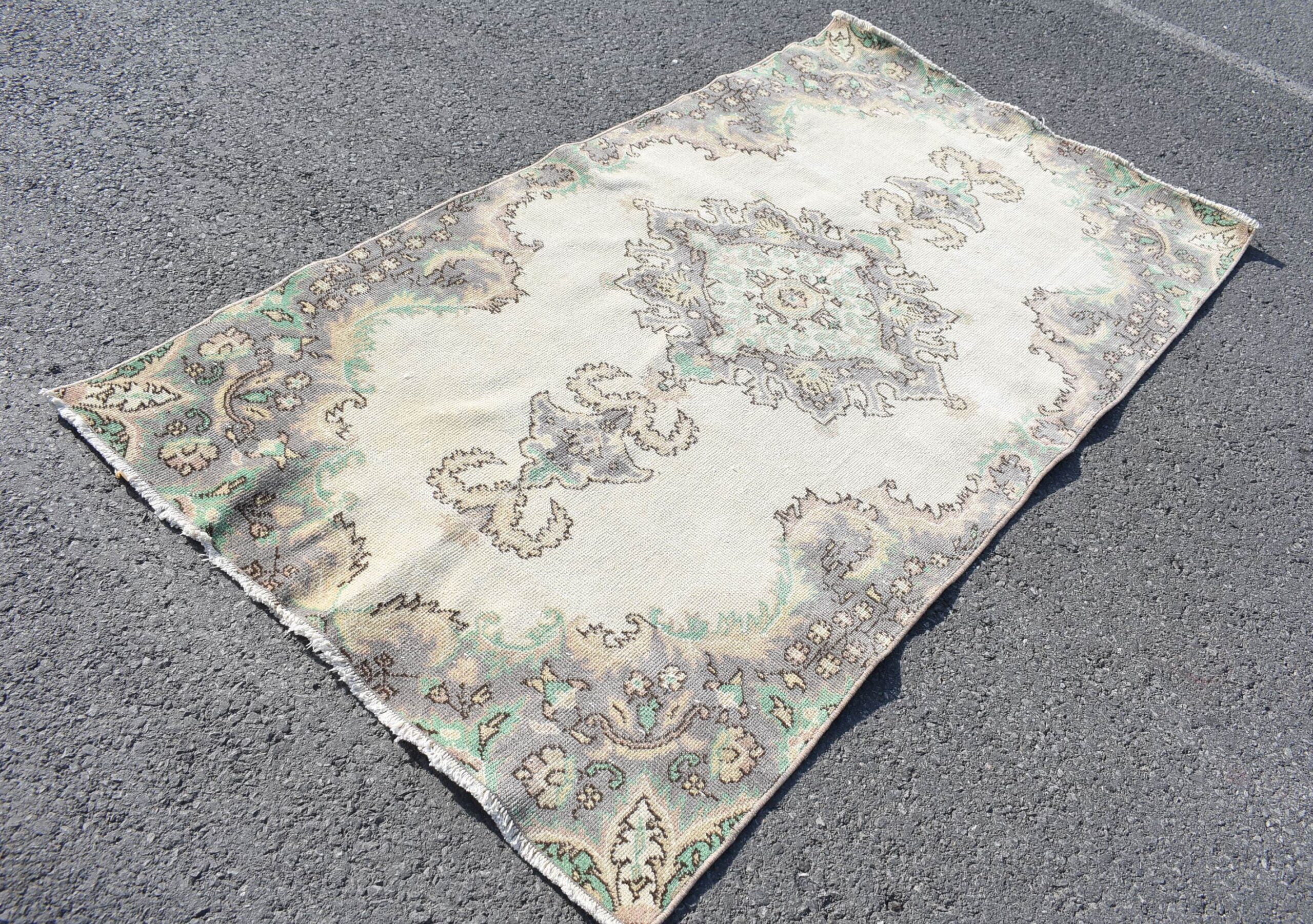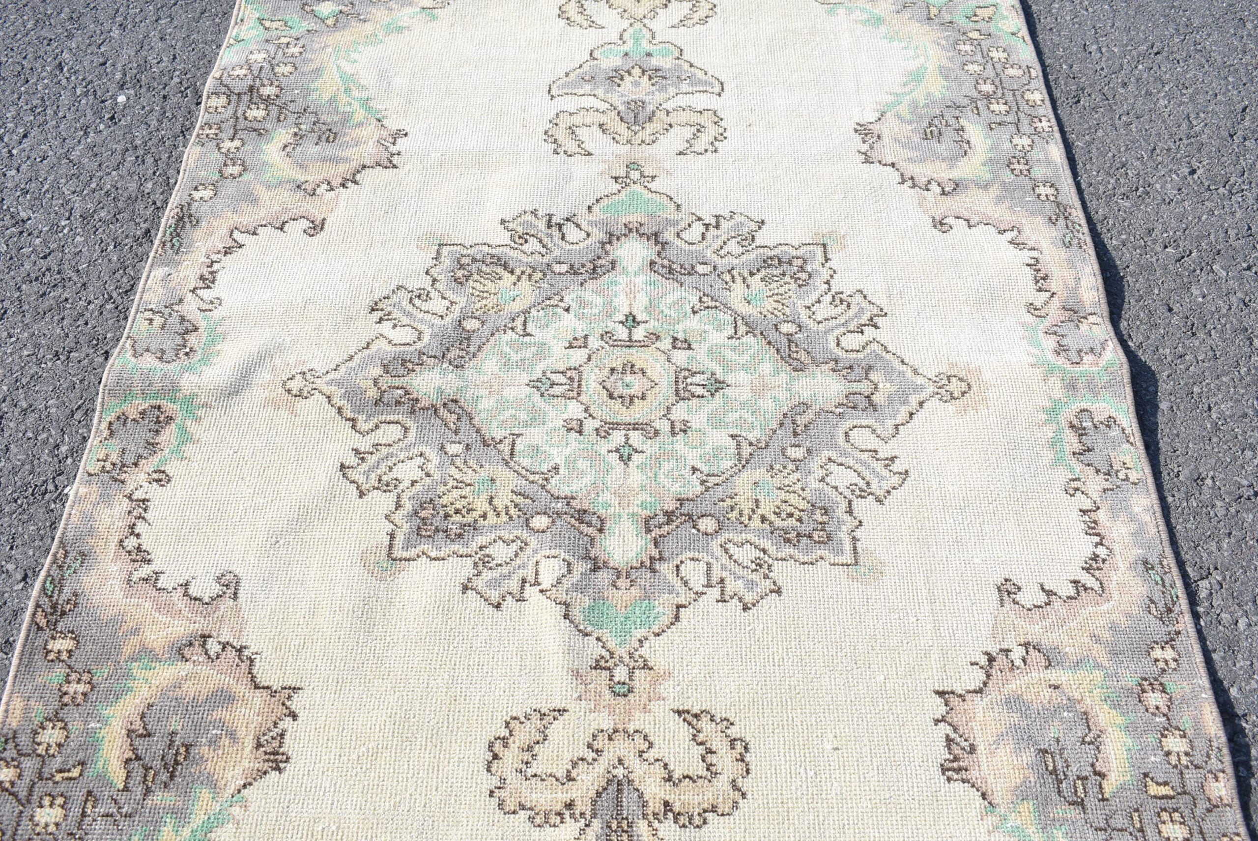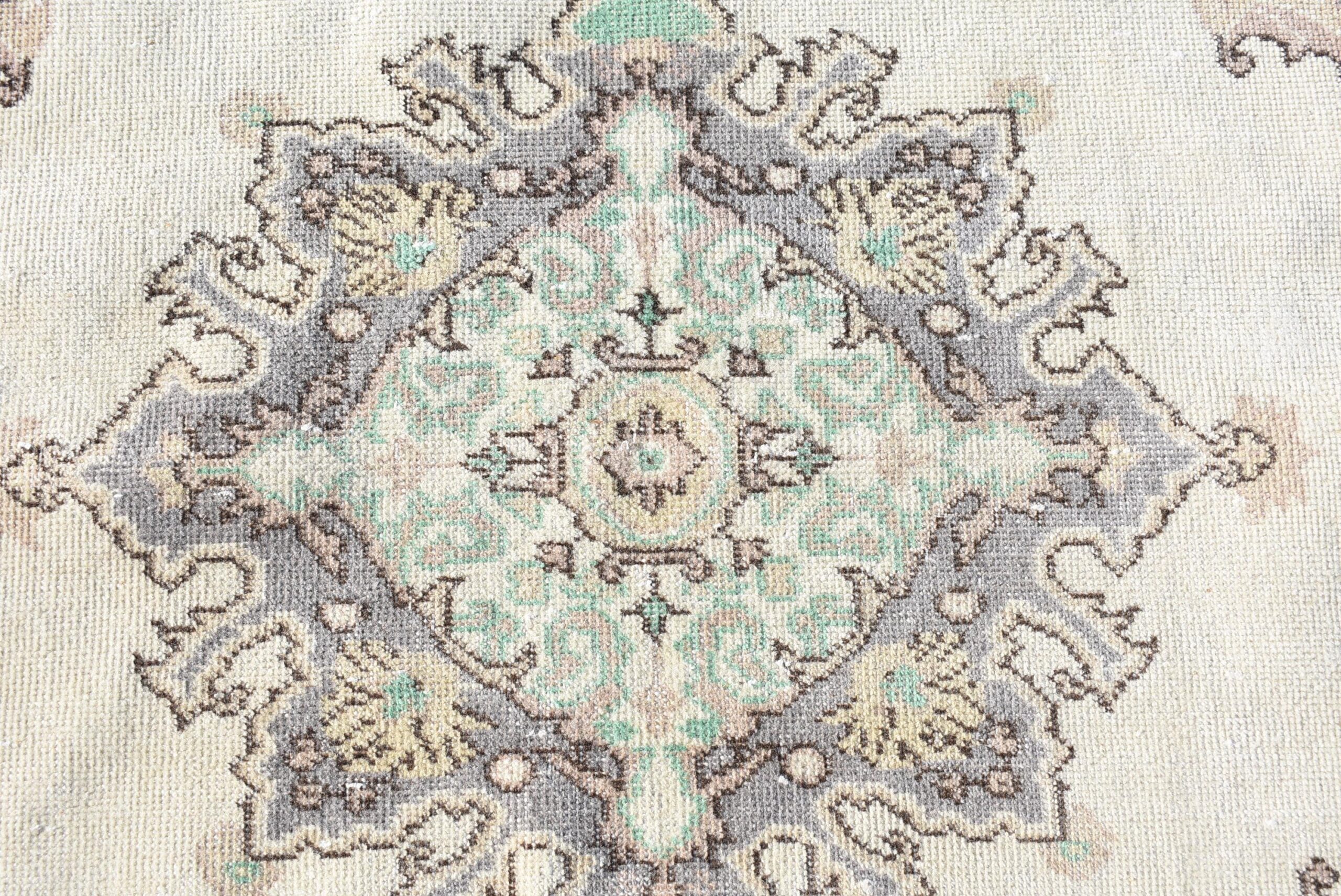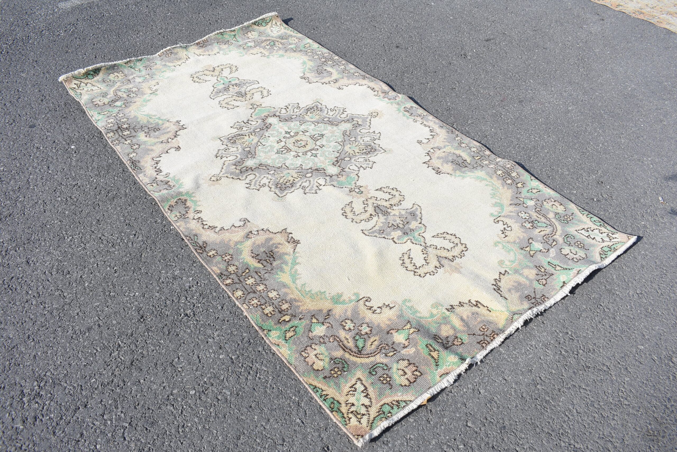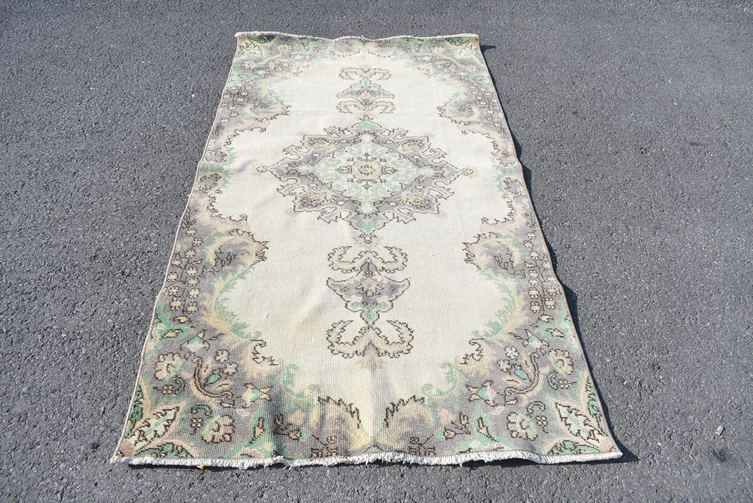 Lovely and unique 3.7 ft. x 6.9 ft. (114 cm x 211 cm) vintage Turkish rug hand-knotted in Turkey from organic wool. This is an authentic vintage Turkish rug from the 1970s that has worn beautifully to perfection.