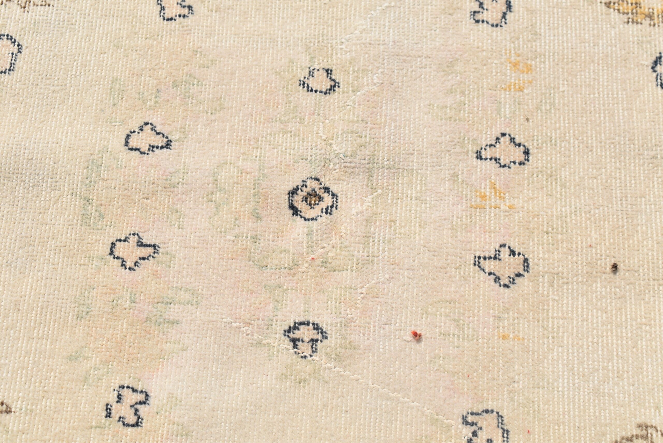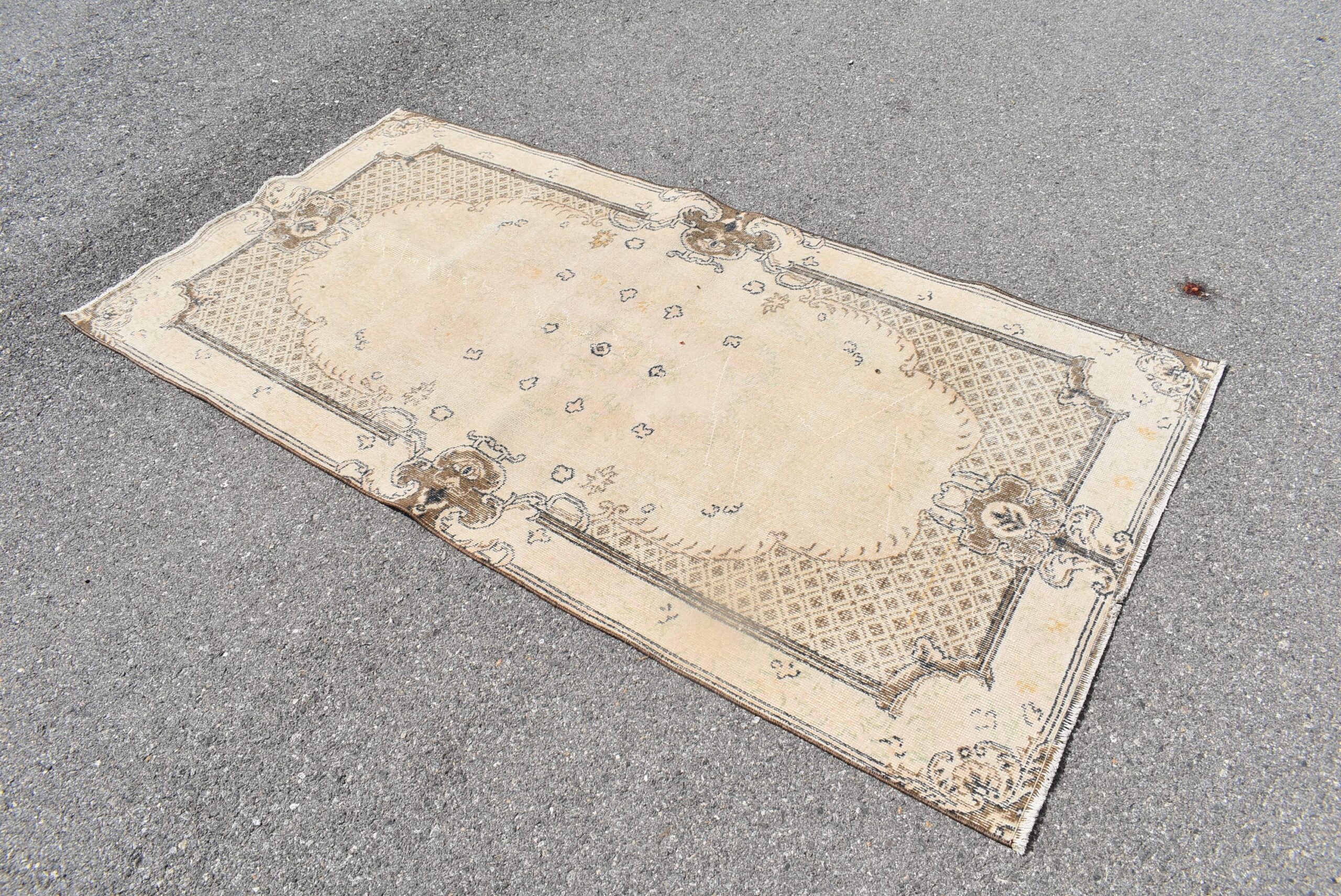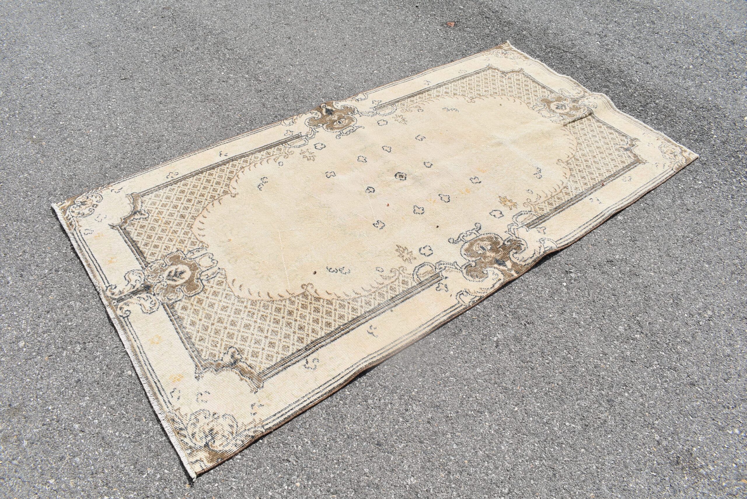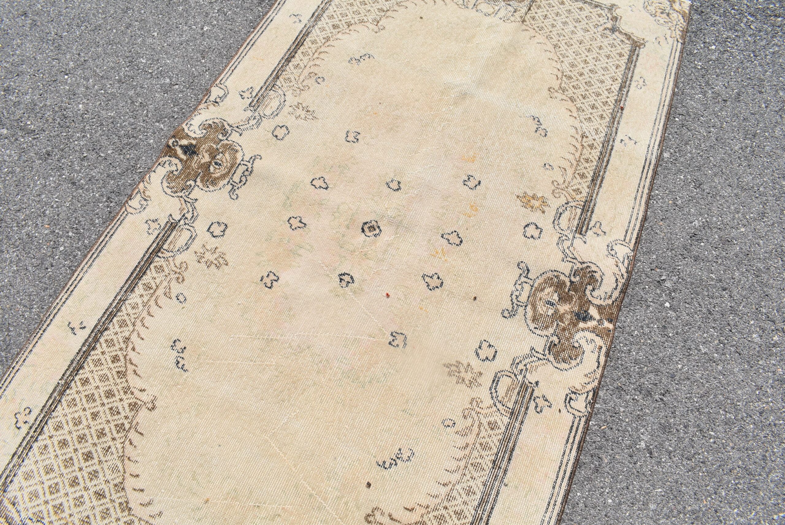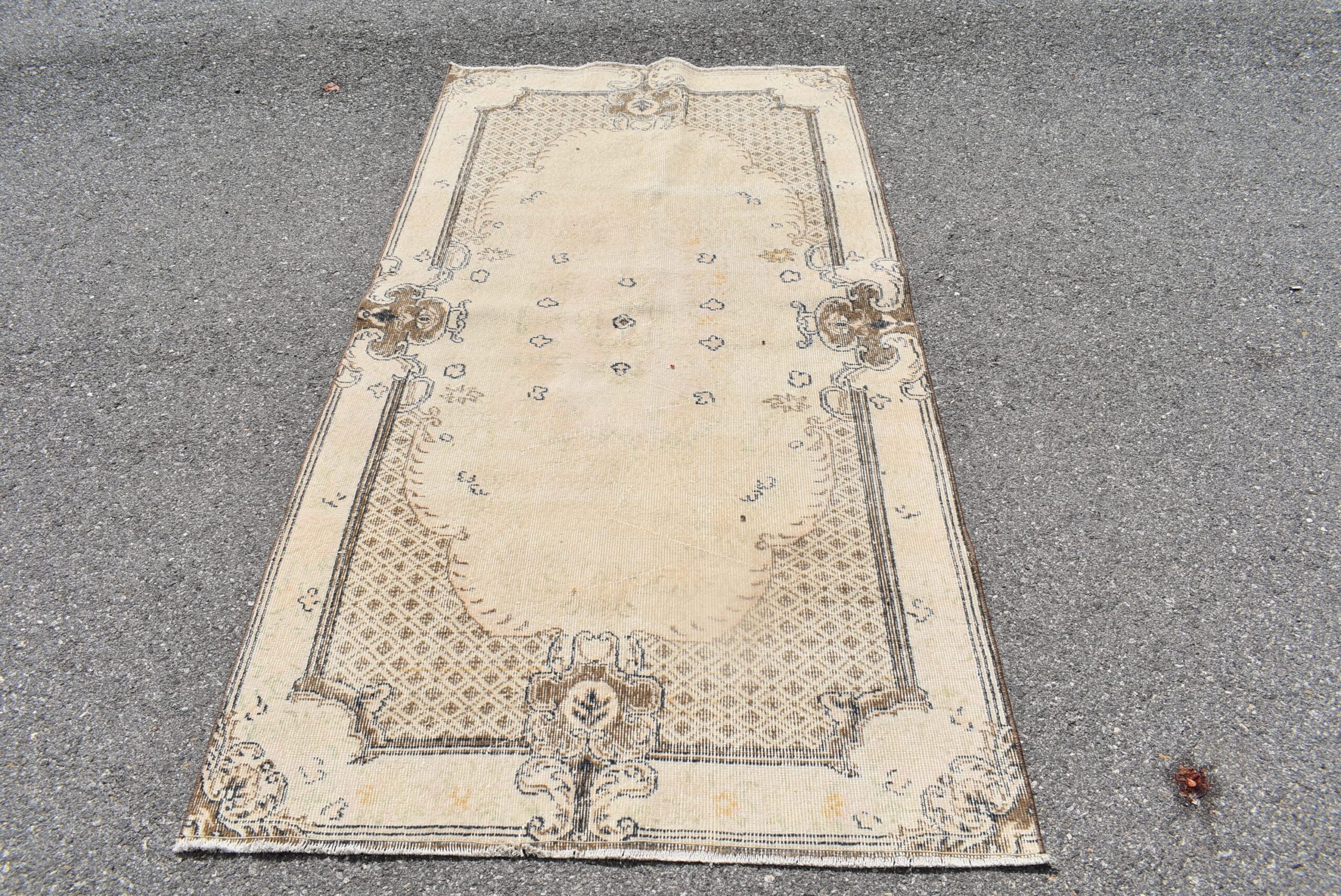 Lovely and unique 3.7 ft. x 7.1 ft. (113 cm x 216 cm) vintage Turkish rug hand-knotted in Turkey from organic wool. This is an authentic vintage Turkish rug from the 1980s that has worn beautifully to perfection.