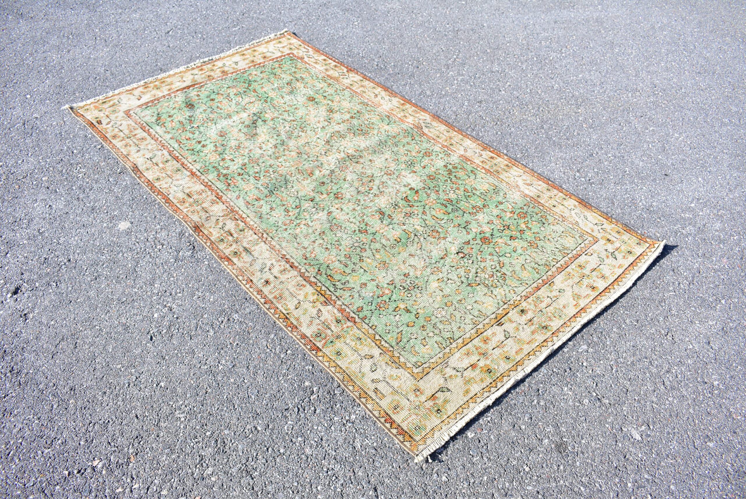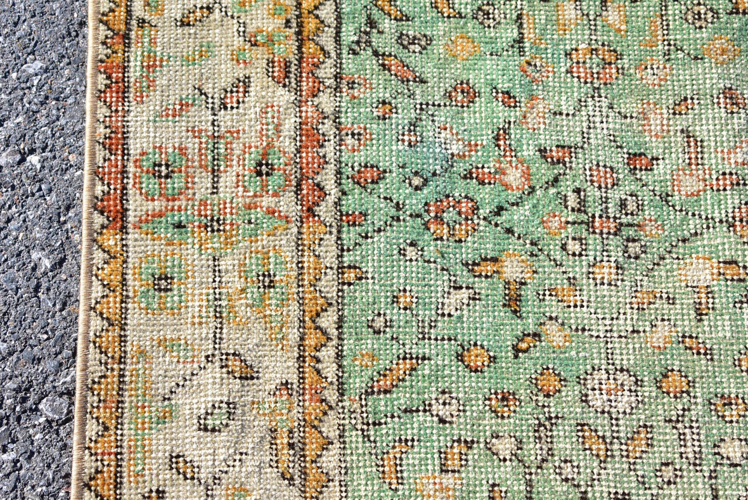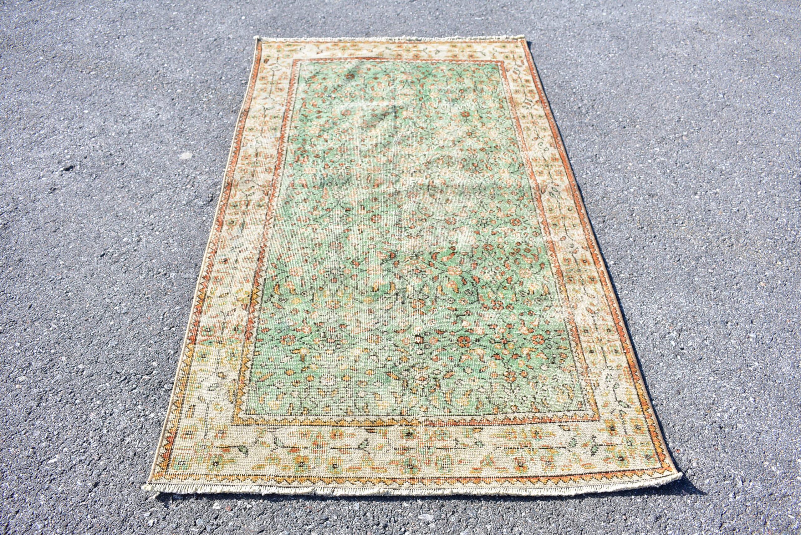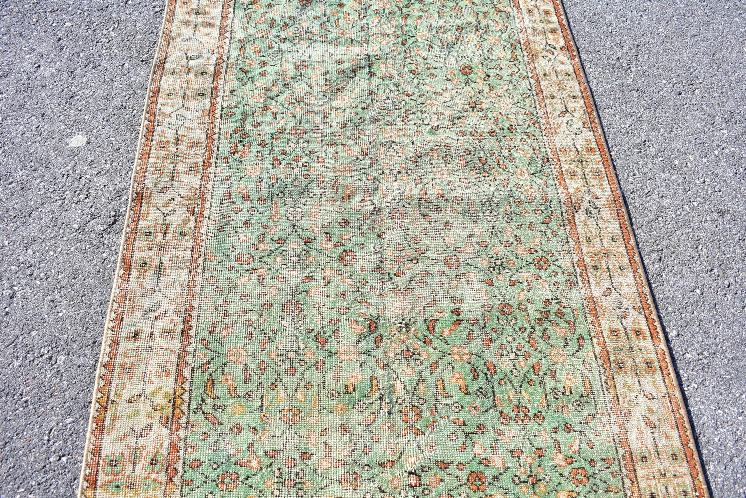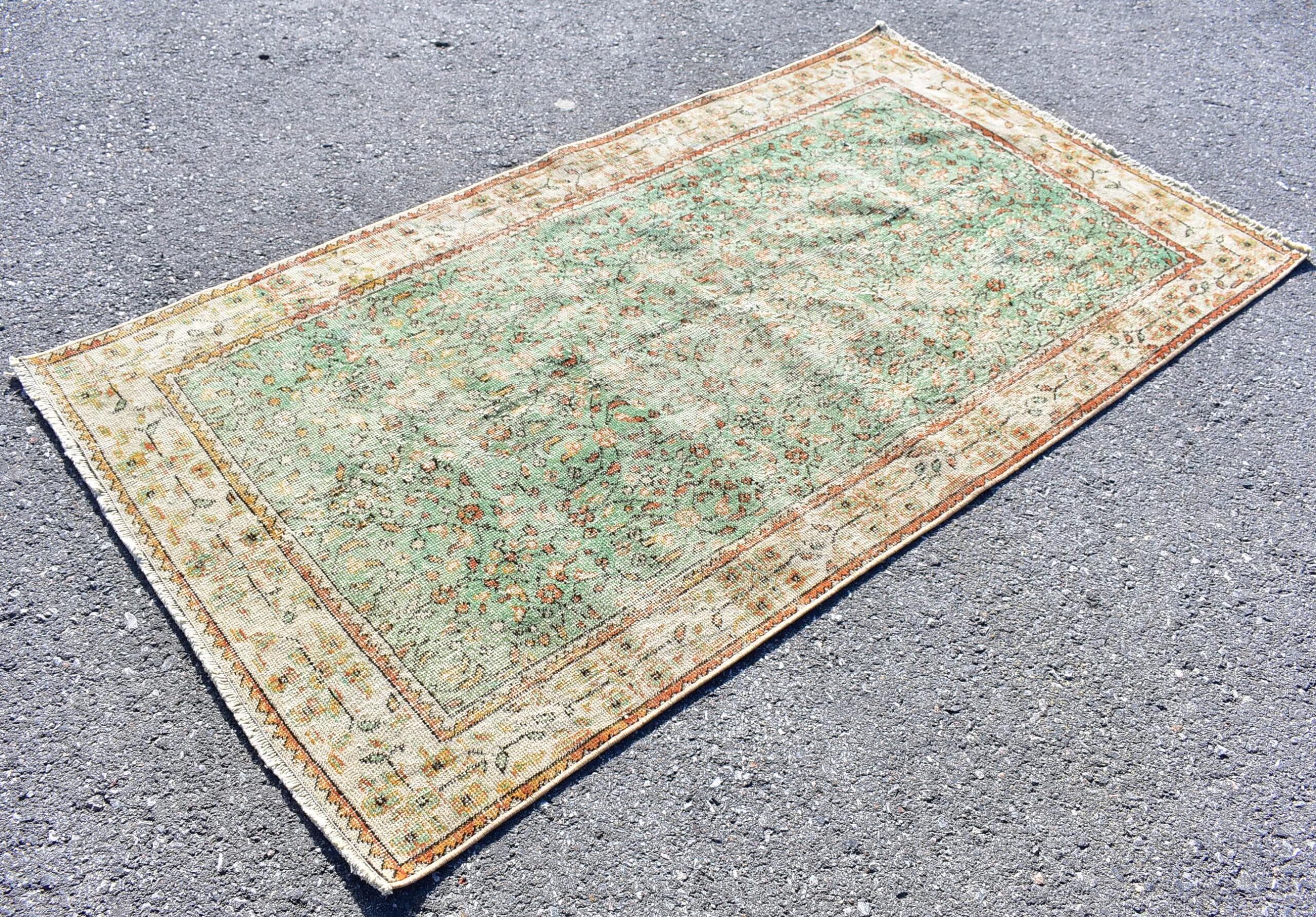 Lovely and unique 3.7 ft. x 7 ft. (112 cm x 212 cm) vintage Turkish rug hand-knotted in Turkey from organic wool. This is an authentic vintage Turkish rug from the 1980s that has worn beautifully to perfection.