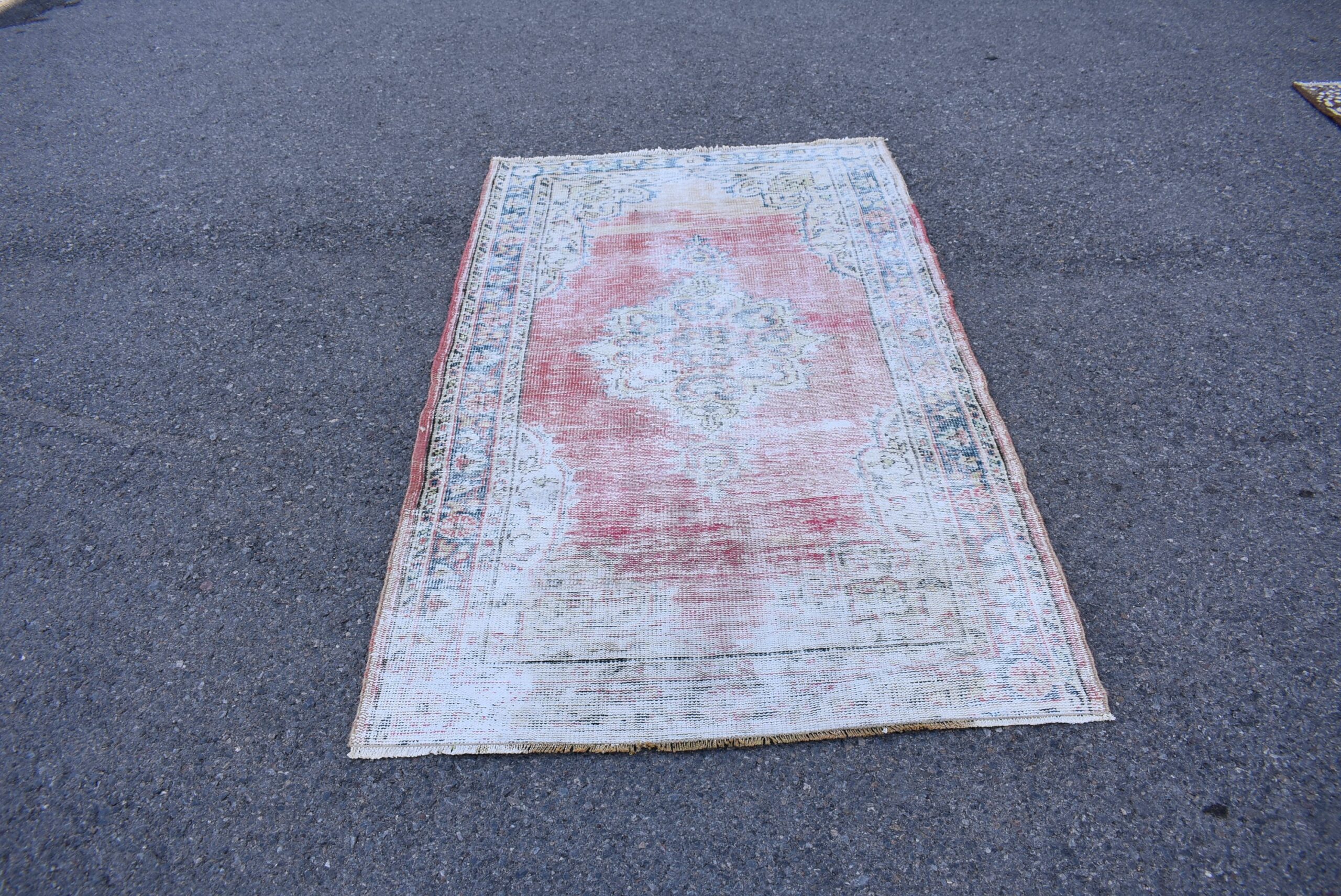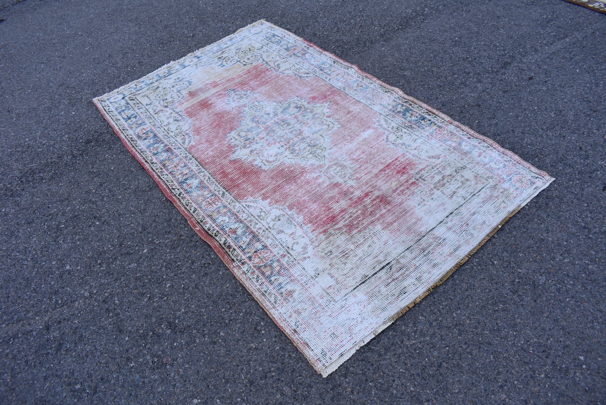 Pretty and one-of-a-kind 3.8 ft. x 6.4 ft. (117 cm x 196 cm) vintage Turkish rug hand-knotted in Turkey from organic wool. This is an authentic vintage Turkish rug from the 1980s that has worn splendidly to perfection.
