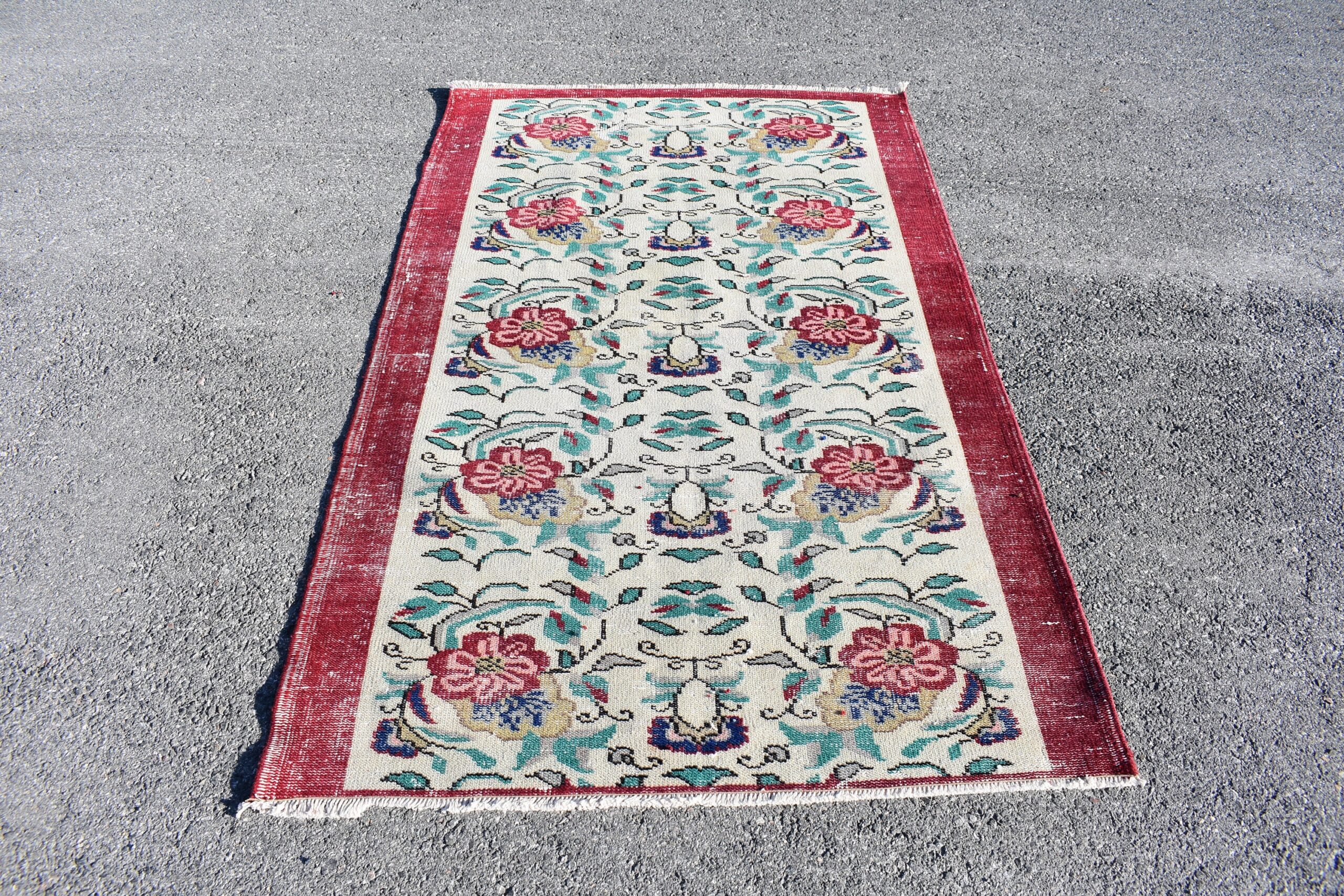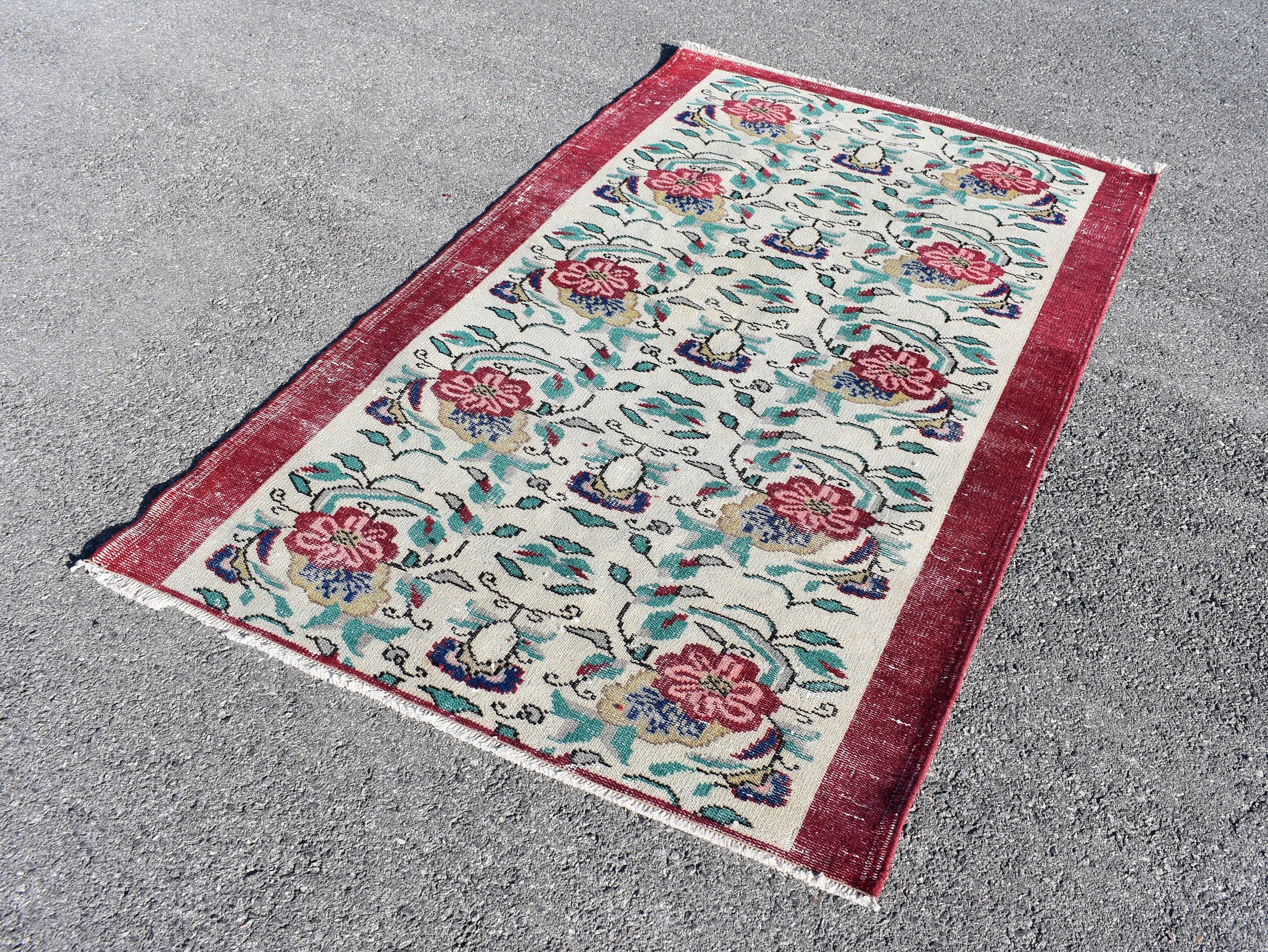 Lovely and unique 3.8 ft. x 6.4 ft. (117 cm x 196 cm) vintage Turkish rug hand-knotted in Turkey from organic wool. This is an authentic vintage Turkish rug from the 1990s that has worn beautifully to perfection.