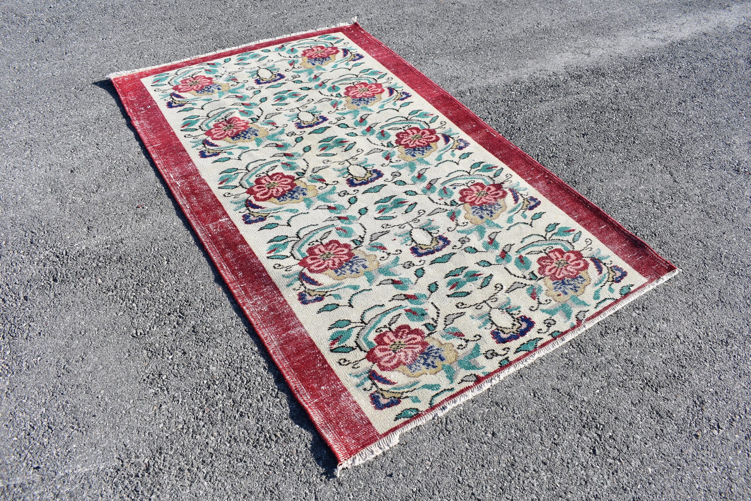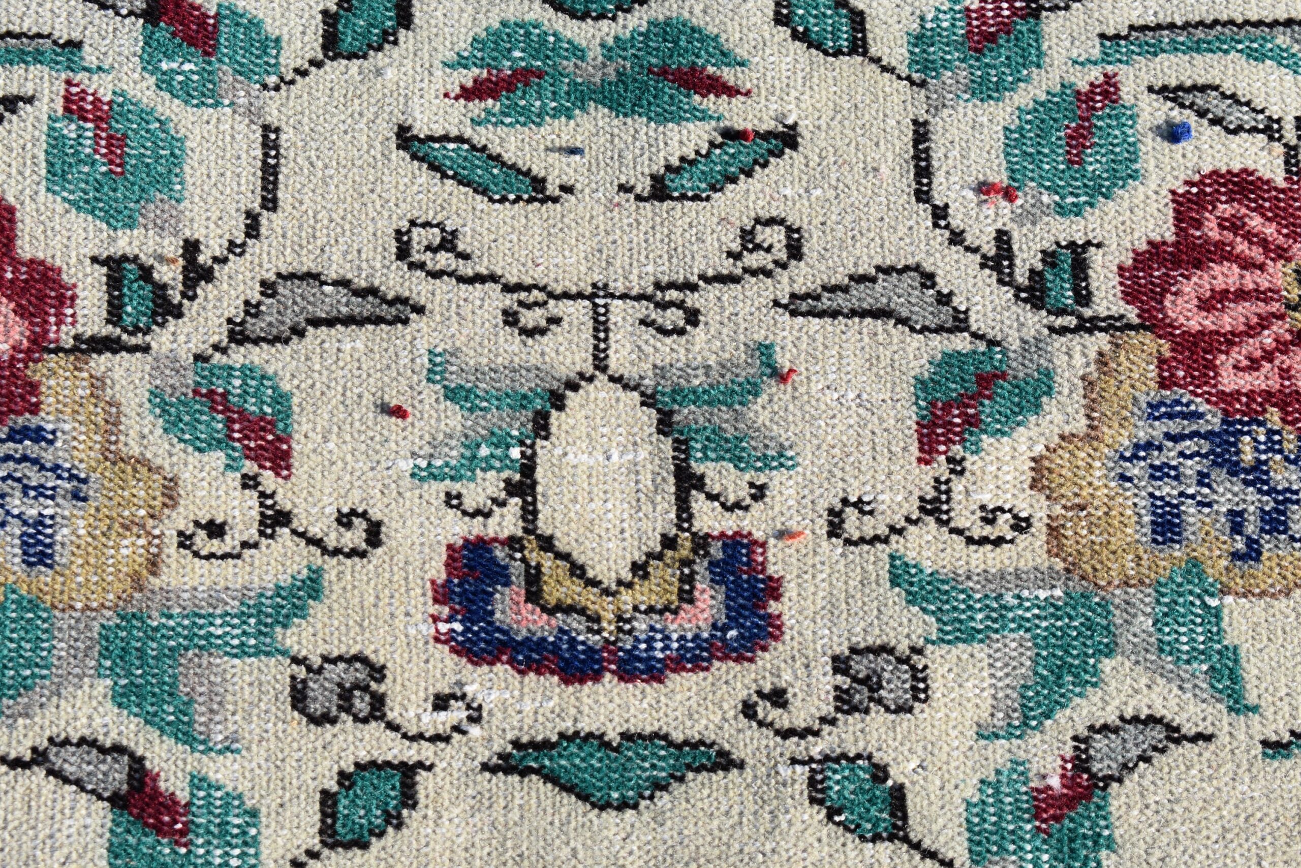 This is a vintage Turkish rug hand-knotted in a small village in Turkey by skilled Anatolian women during around the 1990s. It is made from natural wool (sheep) and dyed using all-natural (vegetable) dyes. Natural materials are more durable than synthetic materials guaranteeing a rug that can last for years while natural dyes provide colors that gets more beautiful as years pass by especially when in direct sunlight.