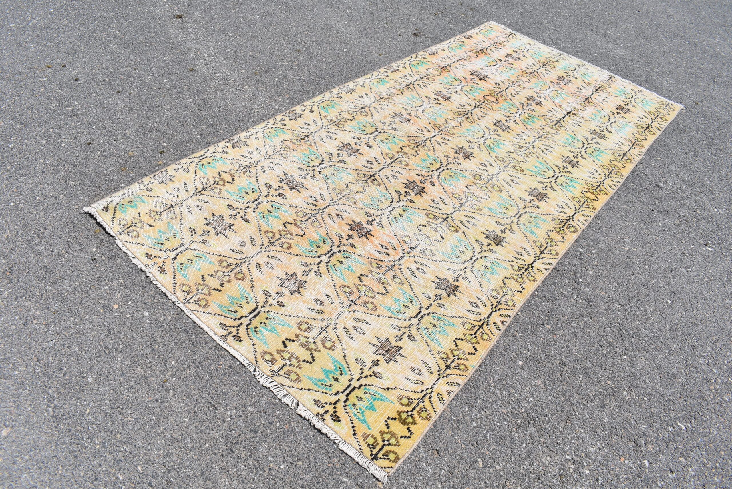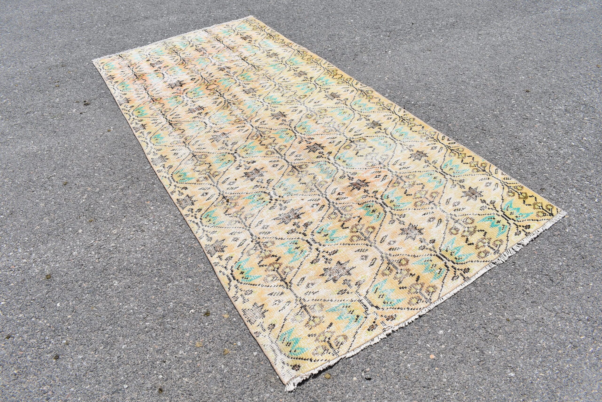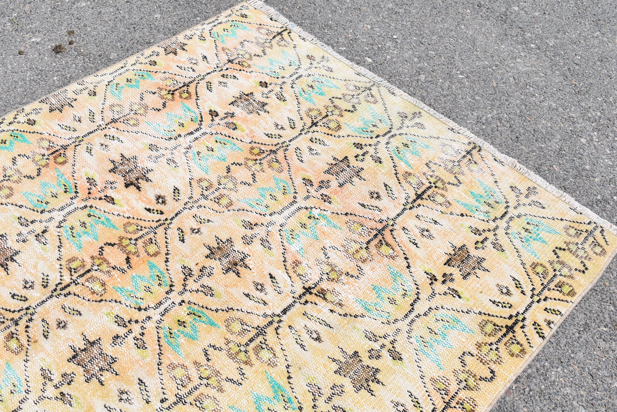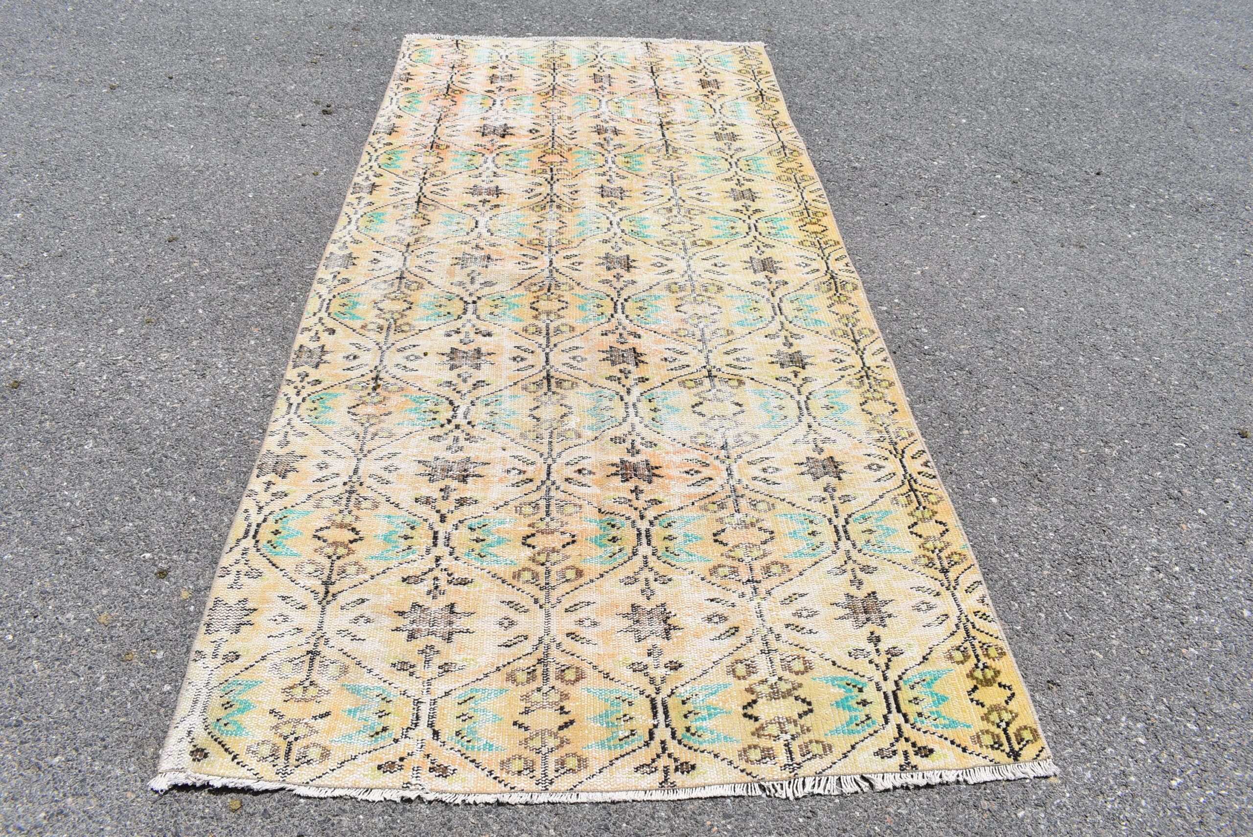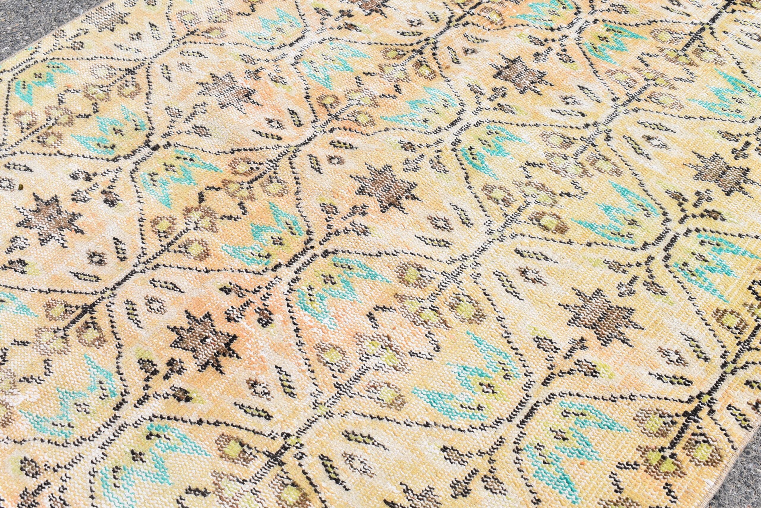 Beautiful and one-of-a-kind 3.8 ft. x 7.8 ft. (116 cm x 238 cm) vintage Turkish rug hand-knotted in Turkey from organic wool. This is an authentic vintage Turkish rug from the 1980s that has worn admirably to perfection.