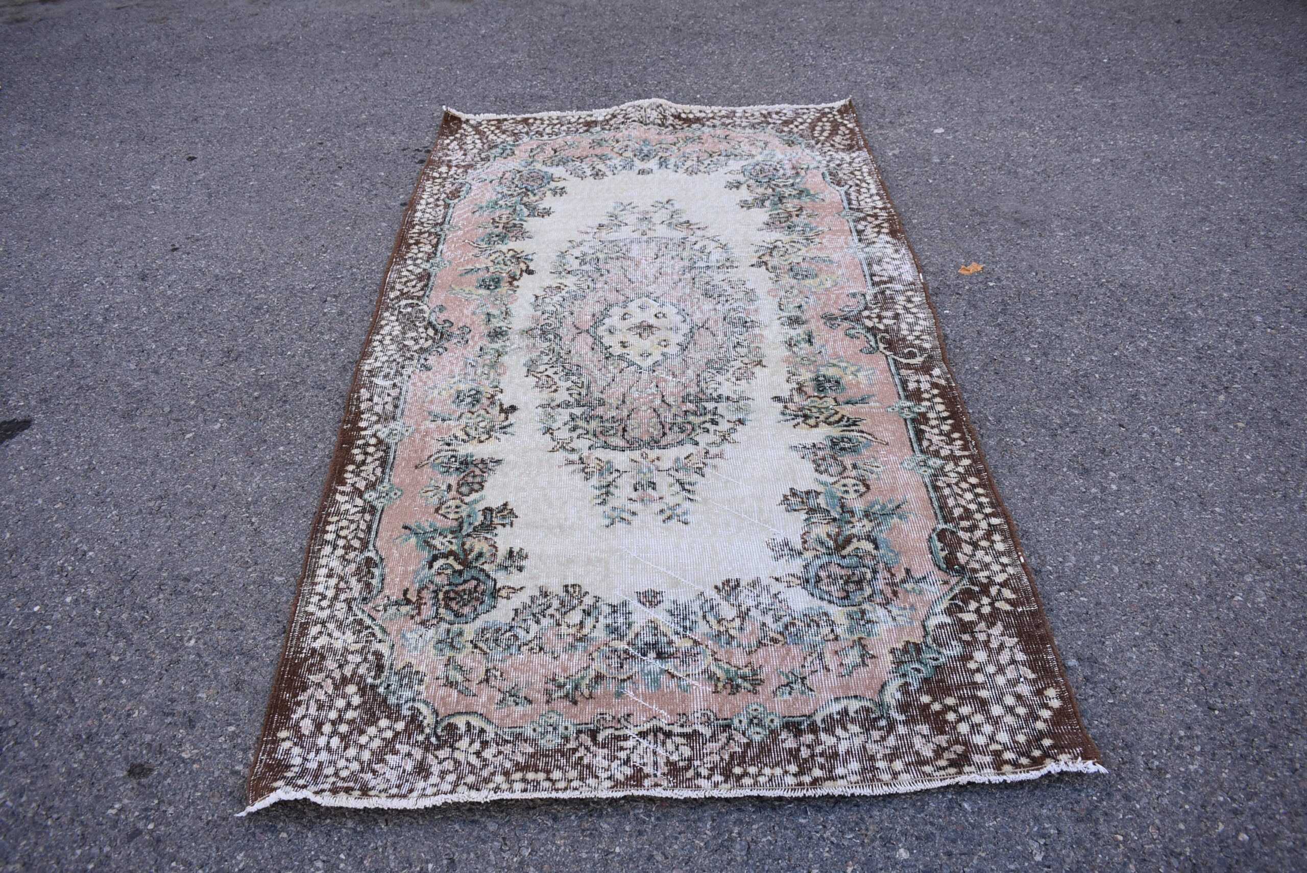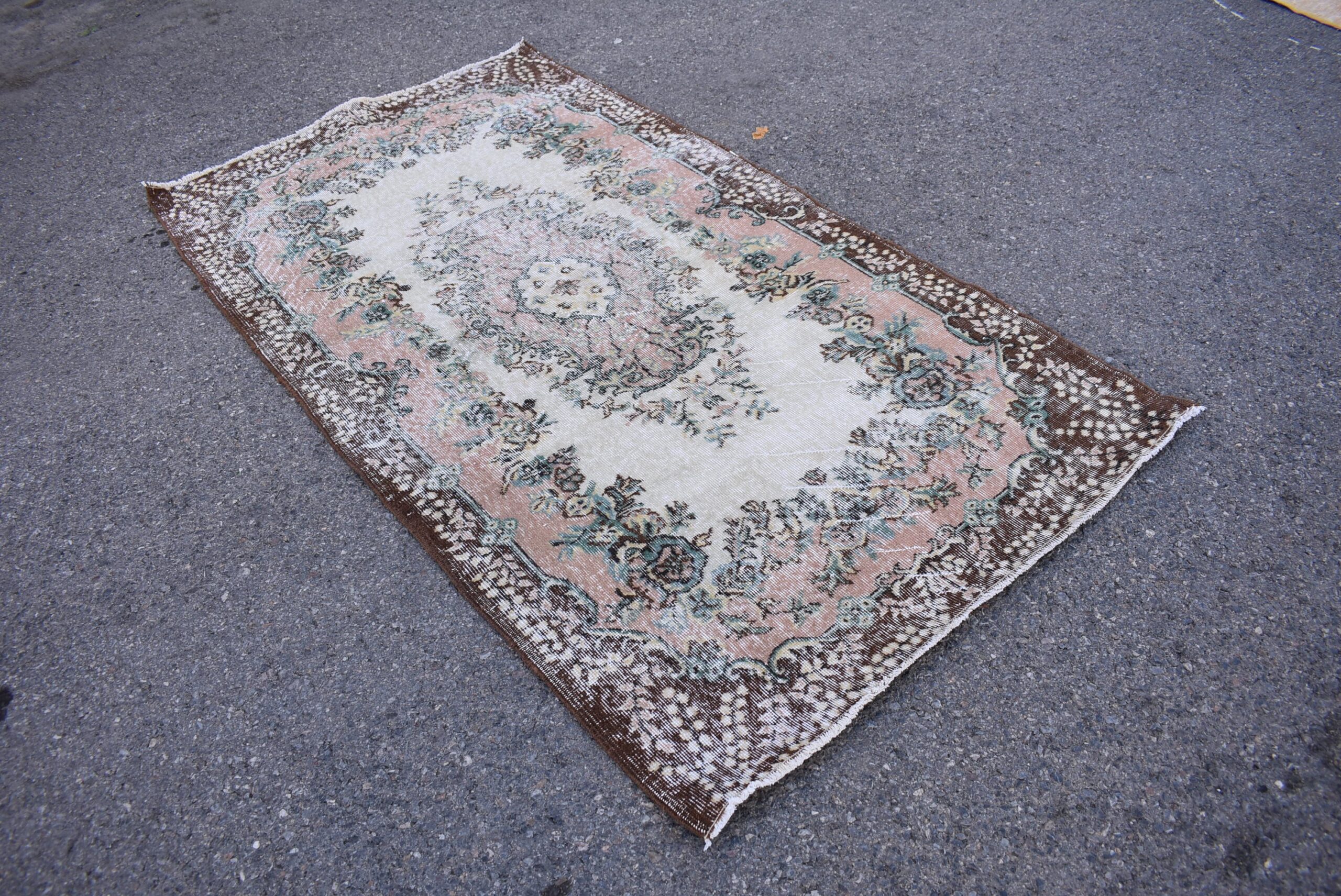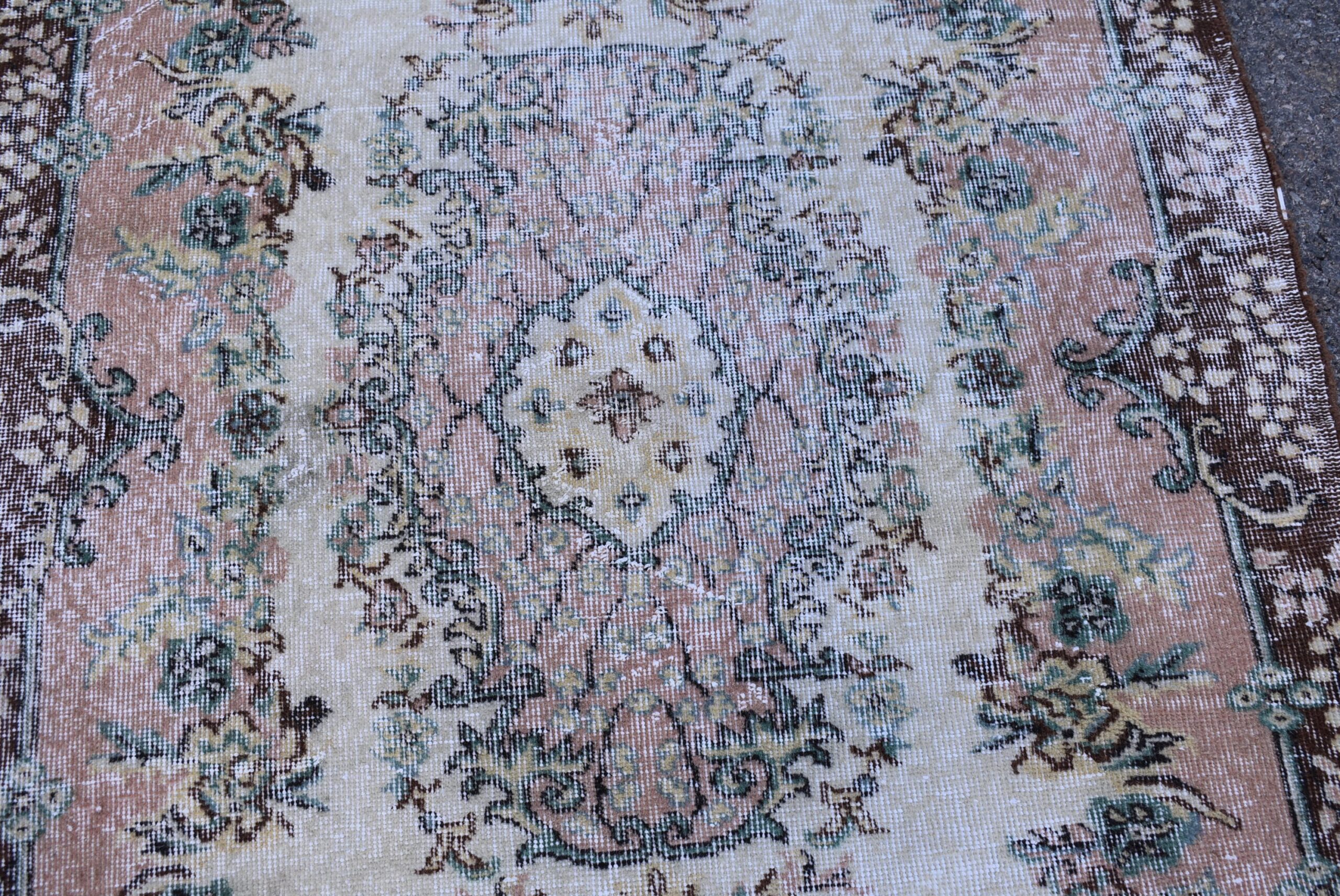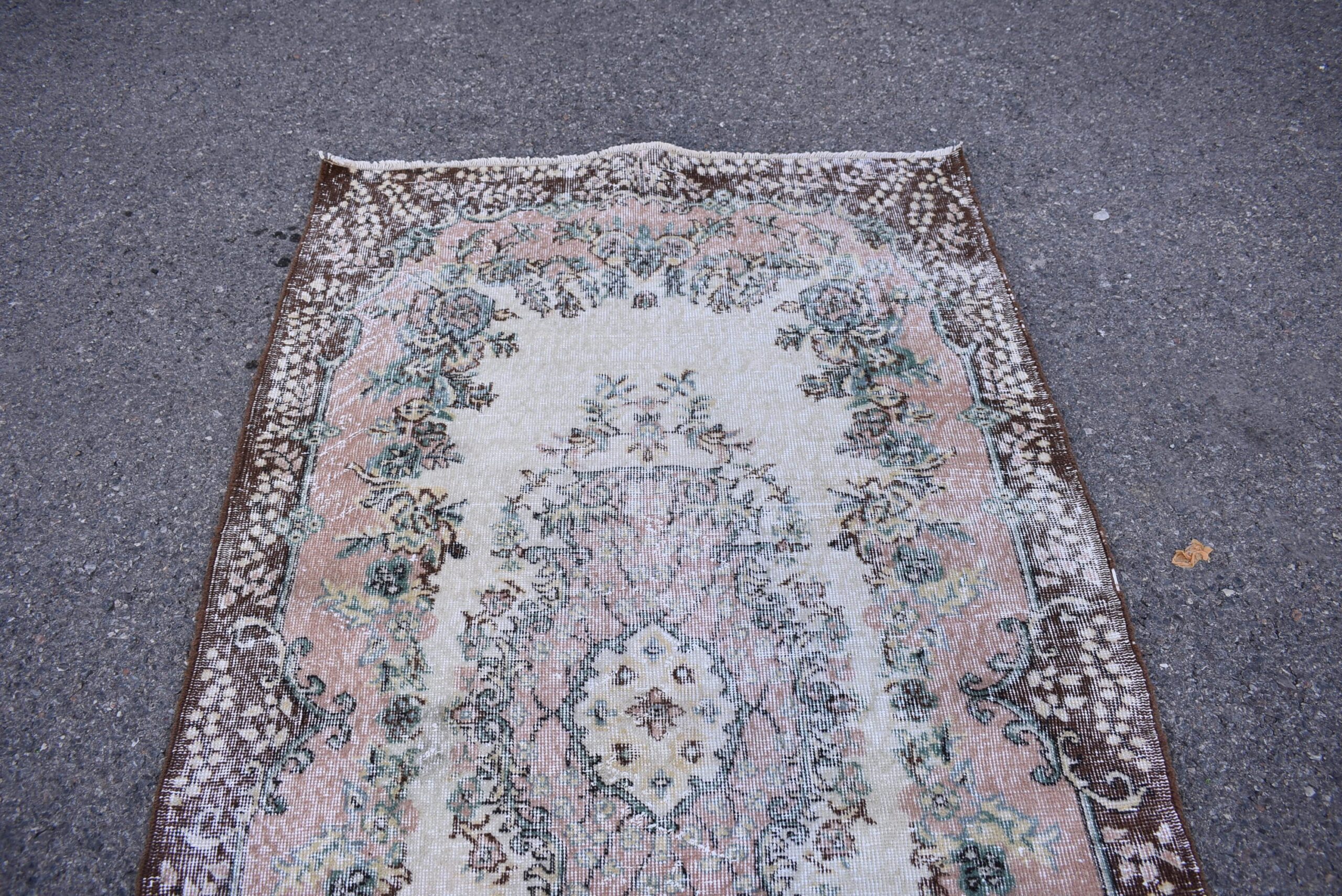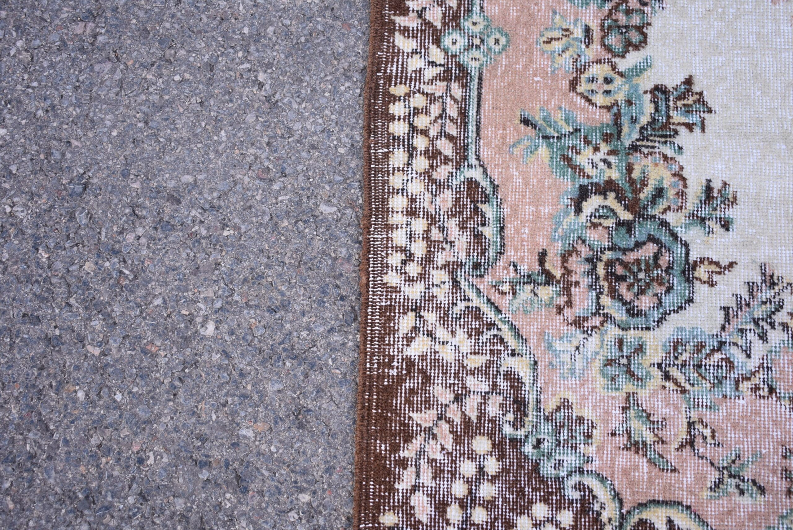 Pretty and one-of-a-kind 3.9 ft. x 7.1 ft. (118 cm x 217 cm) vintage Turkish rug hand-knotted in Turkey from organic wool. This is an authentic vintage Turkish rug from the 1980s that has worn splendidly to perfection.