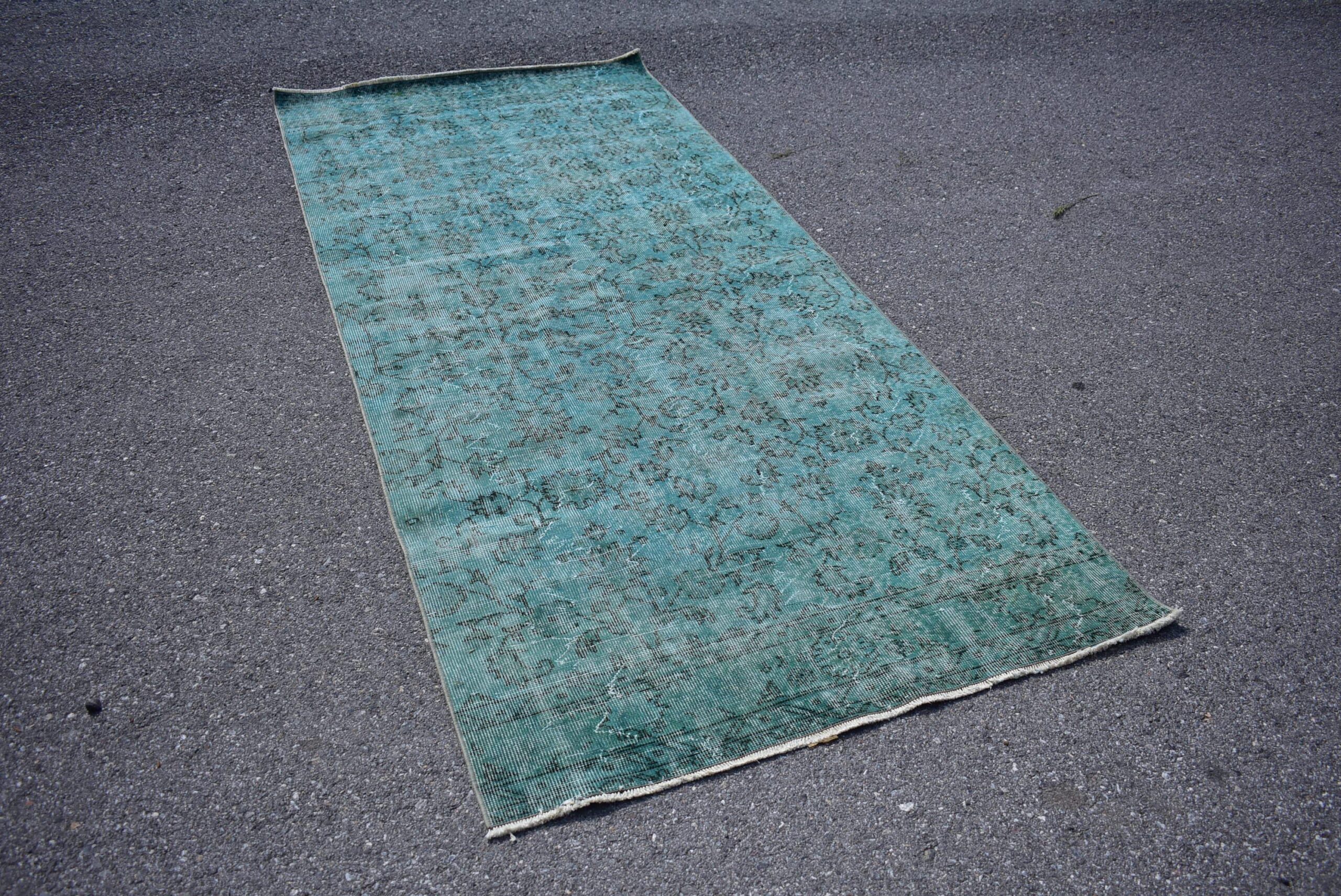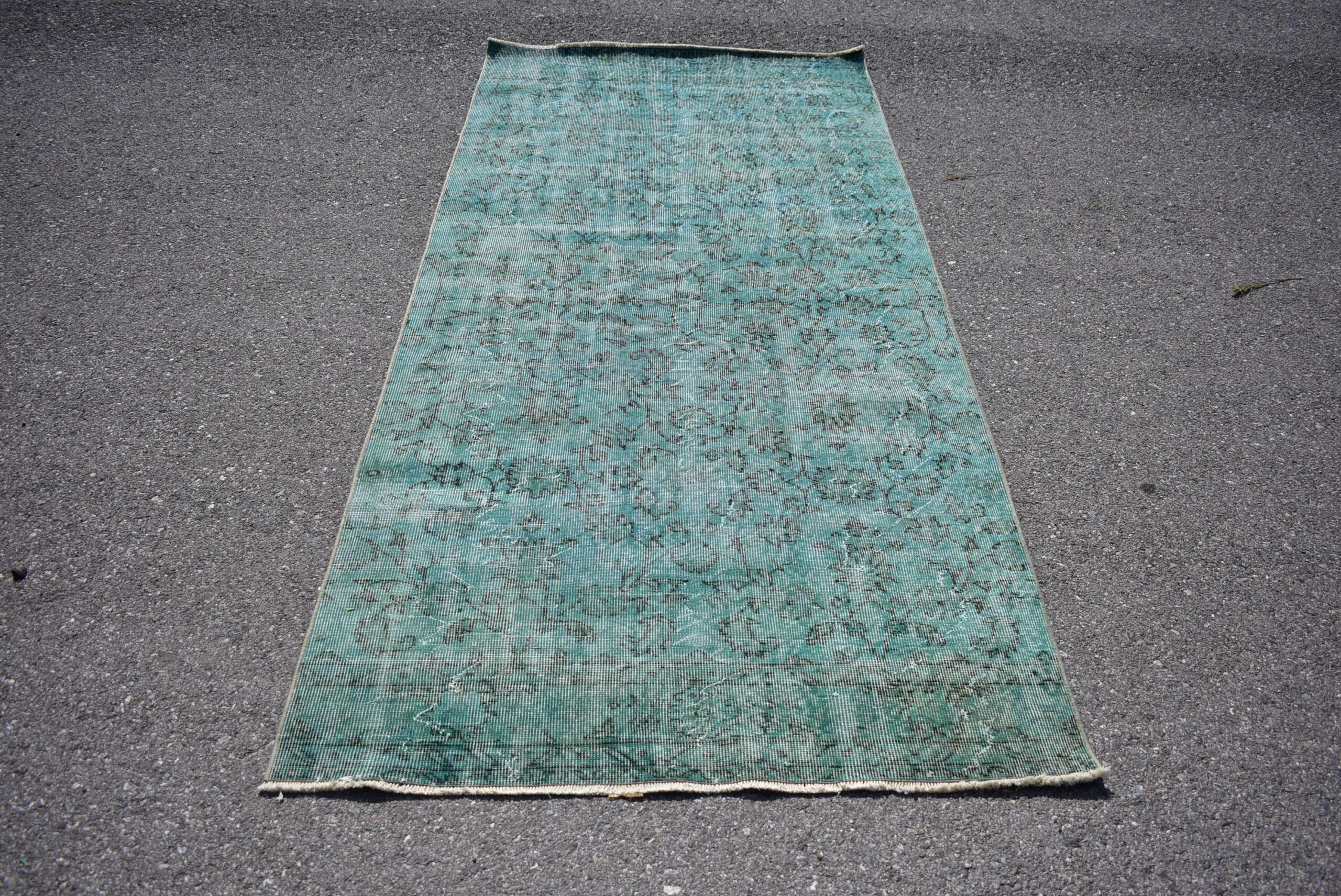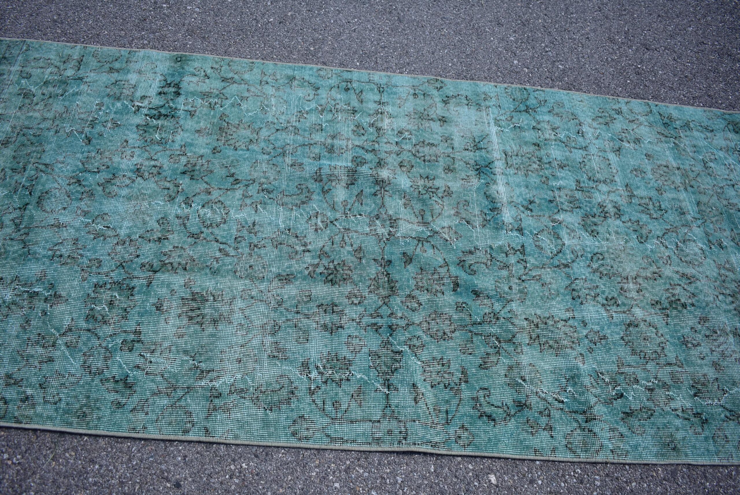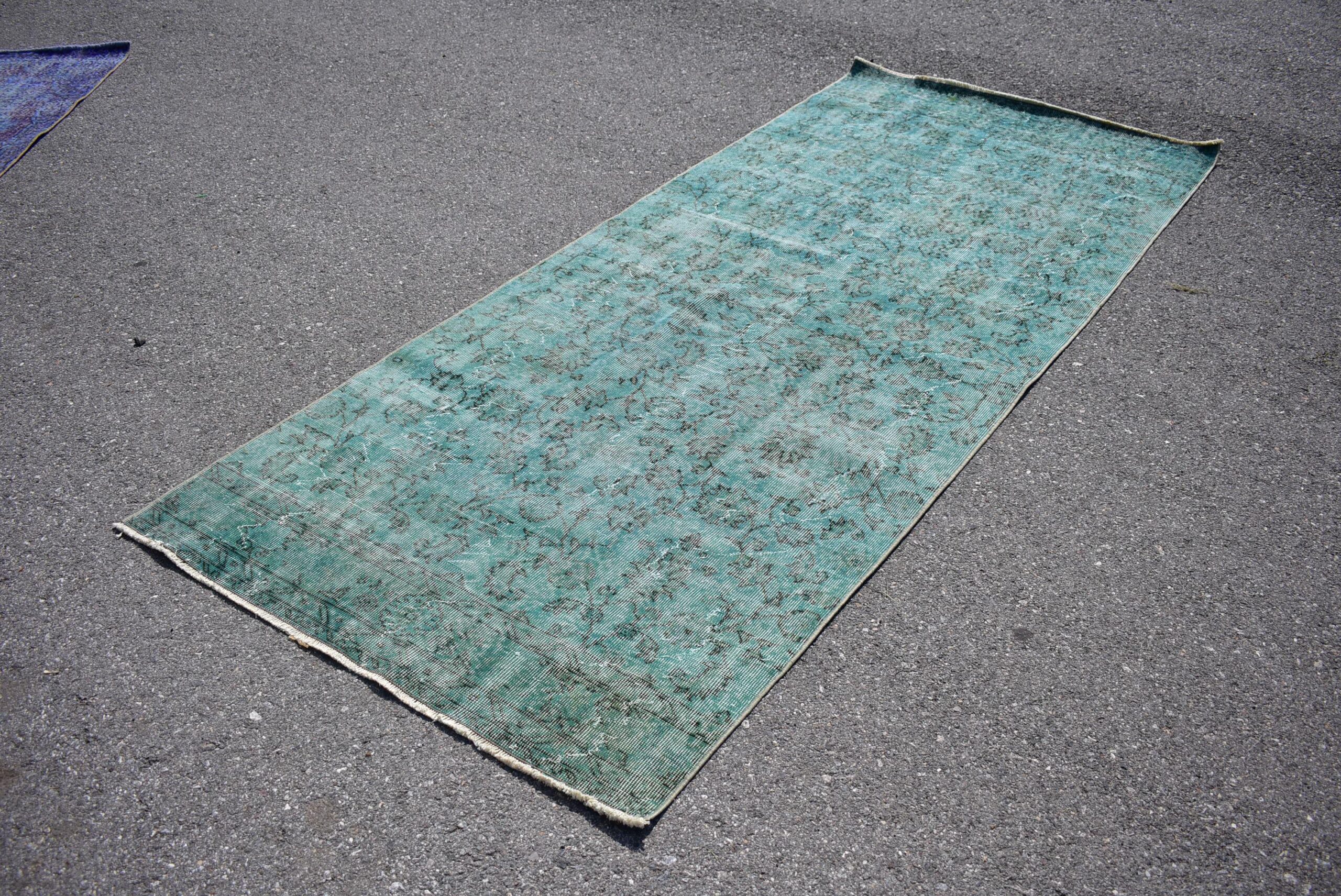 Lovely and unique 3.9 ft. x 9.3 ft. (120 cm x 282 cm) vintage overdyed rug hand-knotted in Turkey from organic wool. This is an authentic vintage rug from the 1980s that has worn beautifully to perfection.
