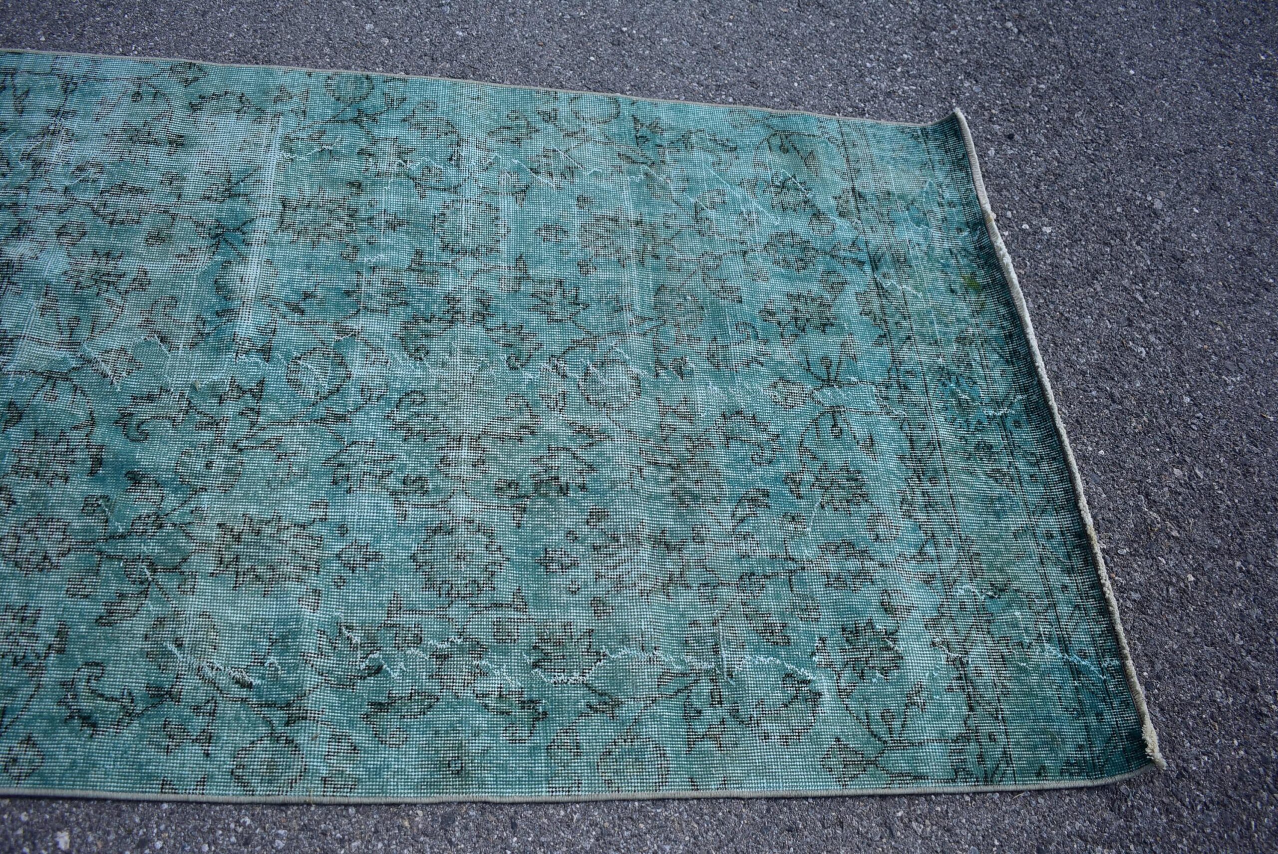 This is a vintage overdyed rug made through over-dyeing an authentic vintage Turkish rug using natural (vegetable) dyes. This rug originated in a small village in Turkey where it was hand-knotted from natural wool (sheep) by skilled Anatolian women during around the 1980s. Natural materials are more durable than synthetic materials guaranteeing a rug that can last for years while natural dyes provide colors that gets more beautiful as years pass by especially when in direct sunlight.