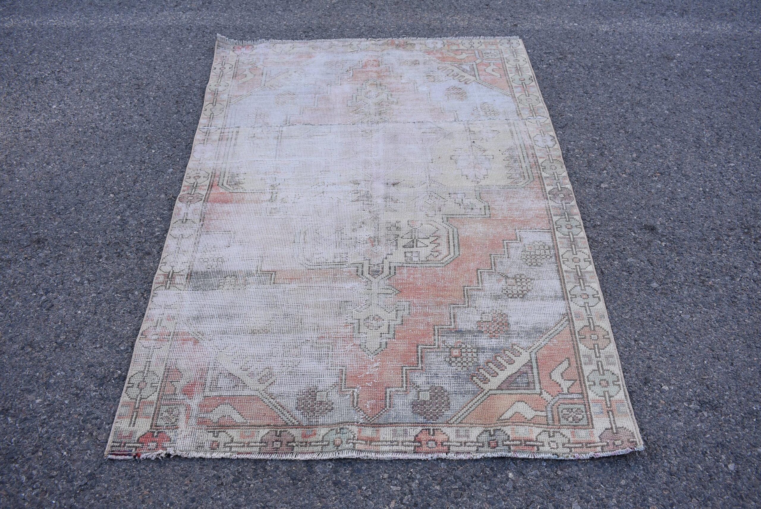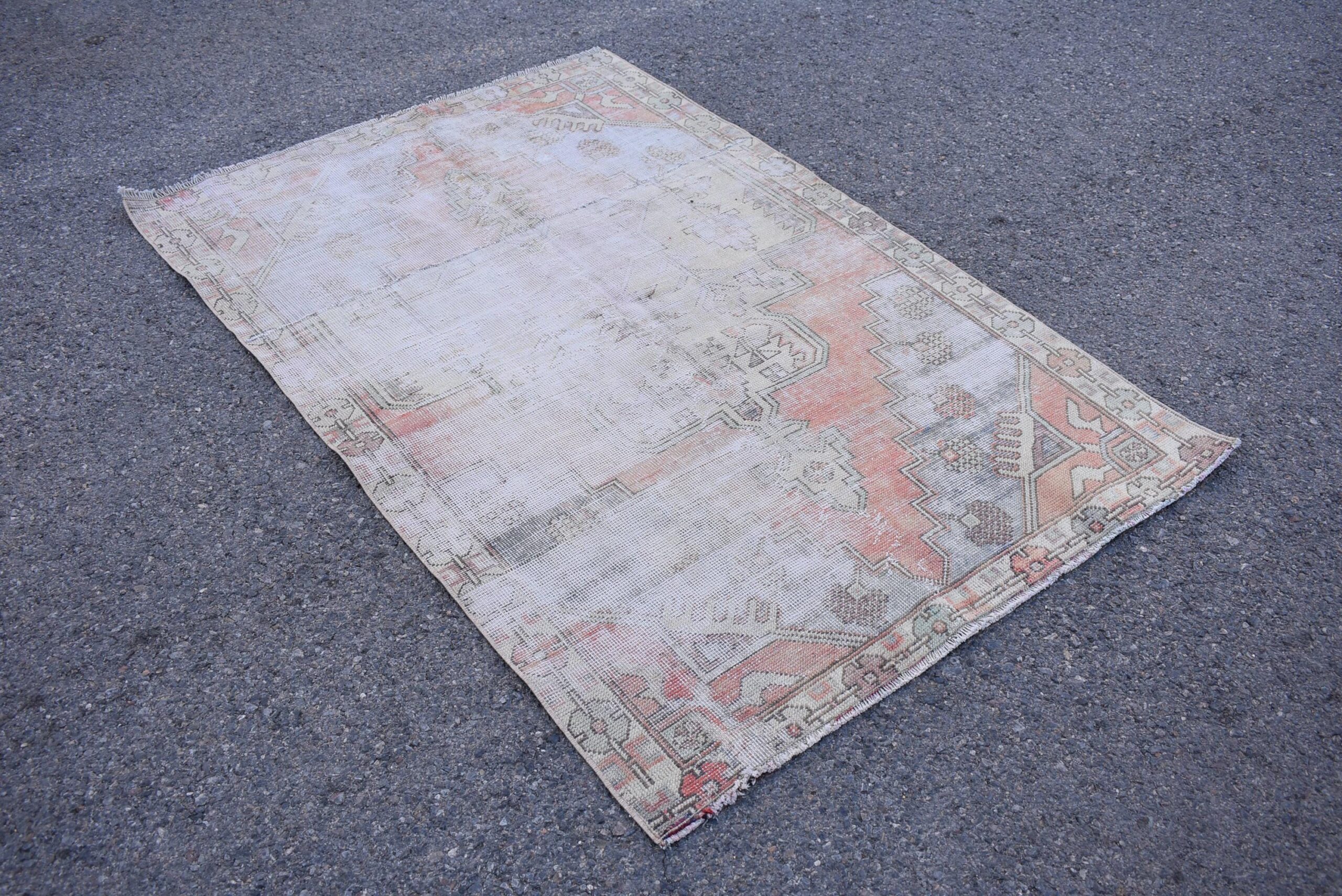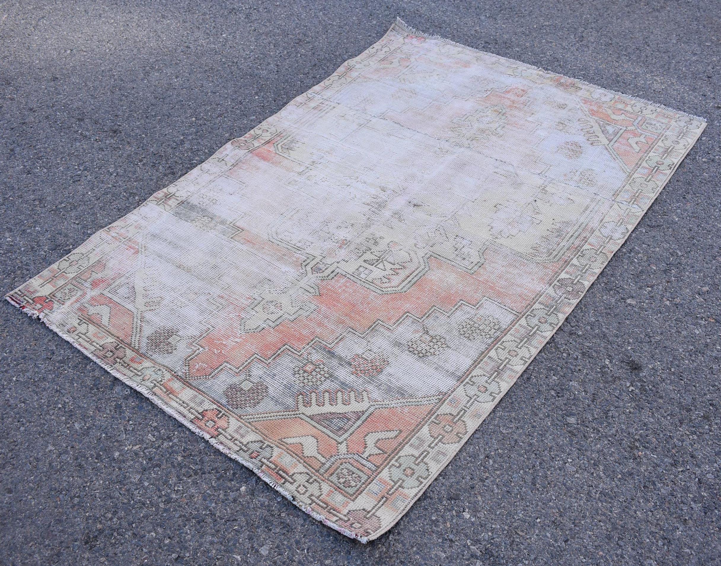 Pretty and one-of-a-kind 4.1 ft. x 6.1 ft. (126 cm x 186 cm) vintage Turkish rug hand-knotted in Turkey from organic wool. This is an authentic vintage Turkish rug from the 1970s that has worn splendidly to perfection.