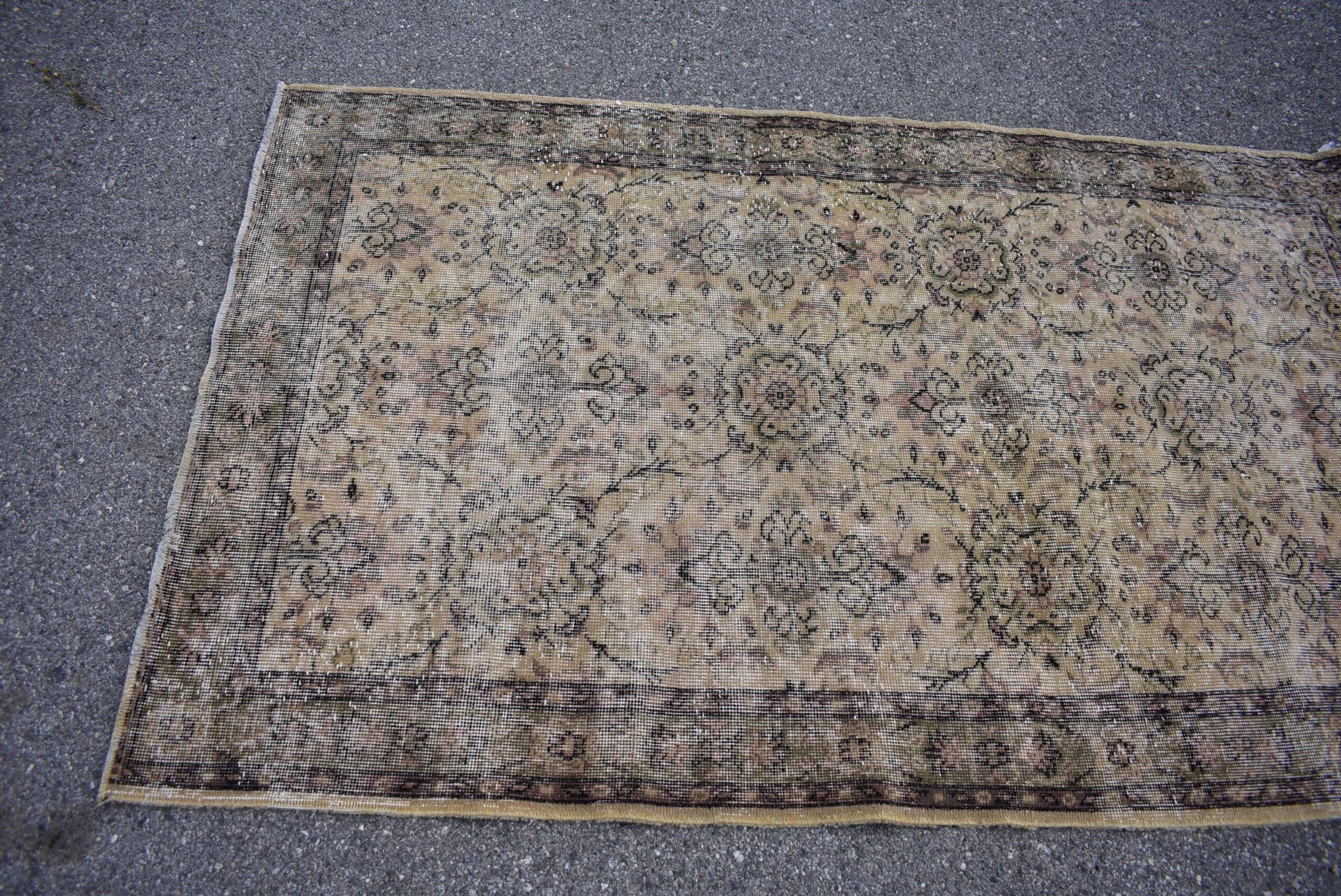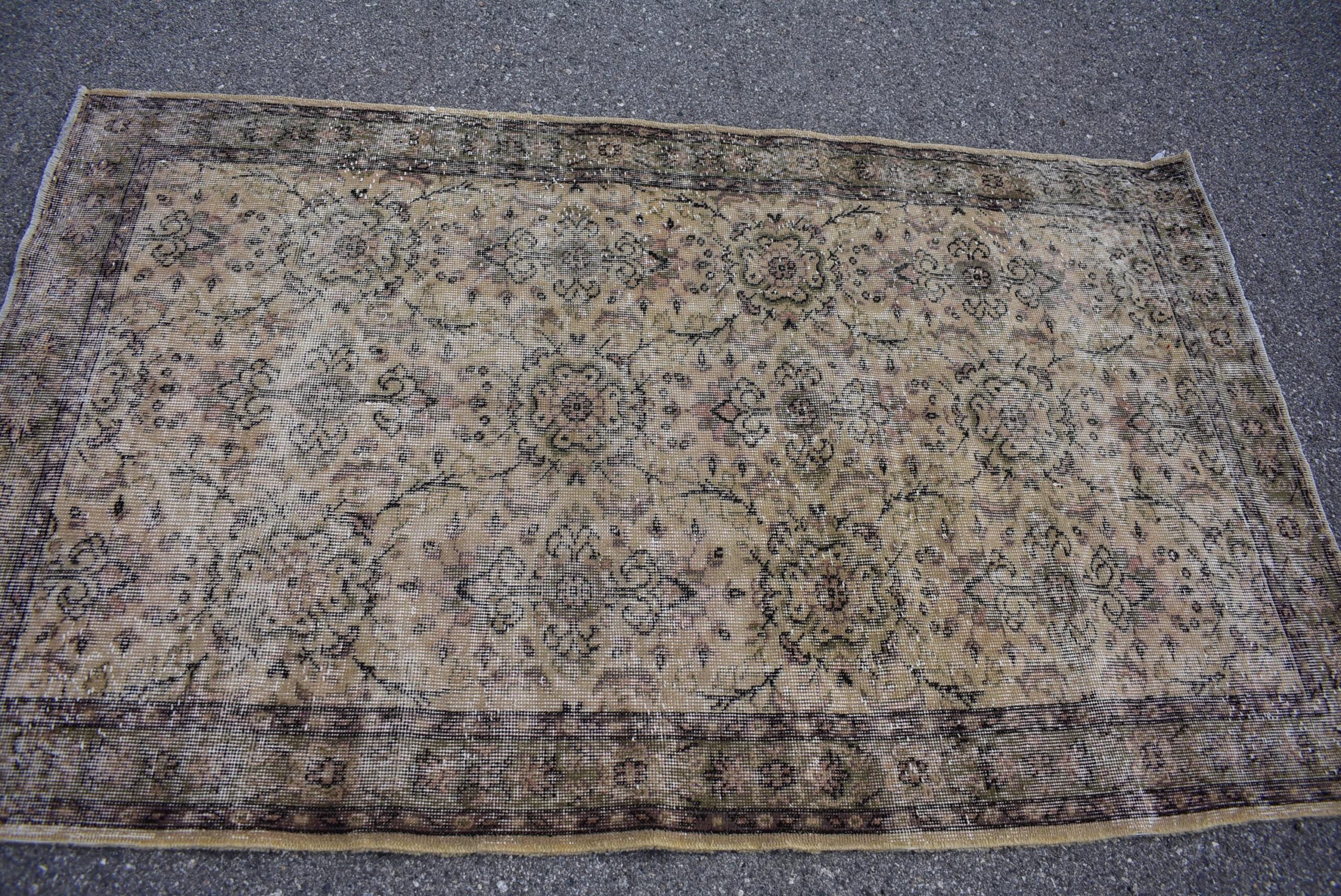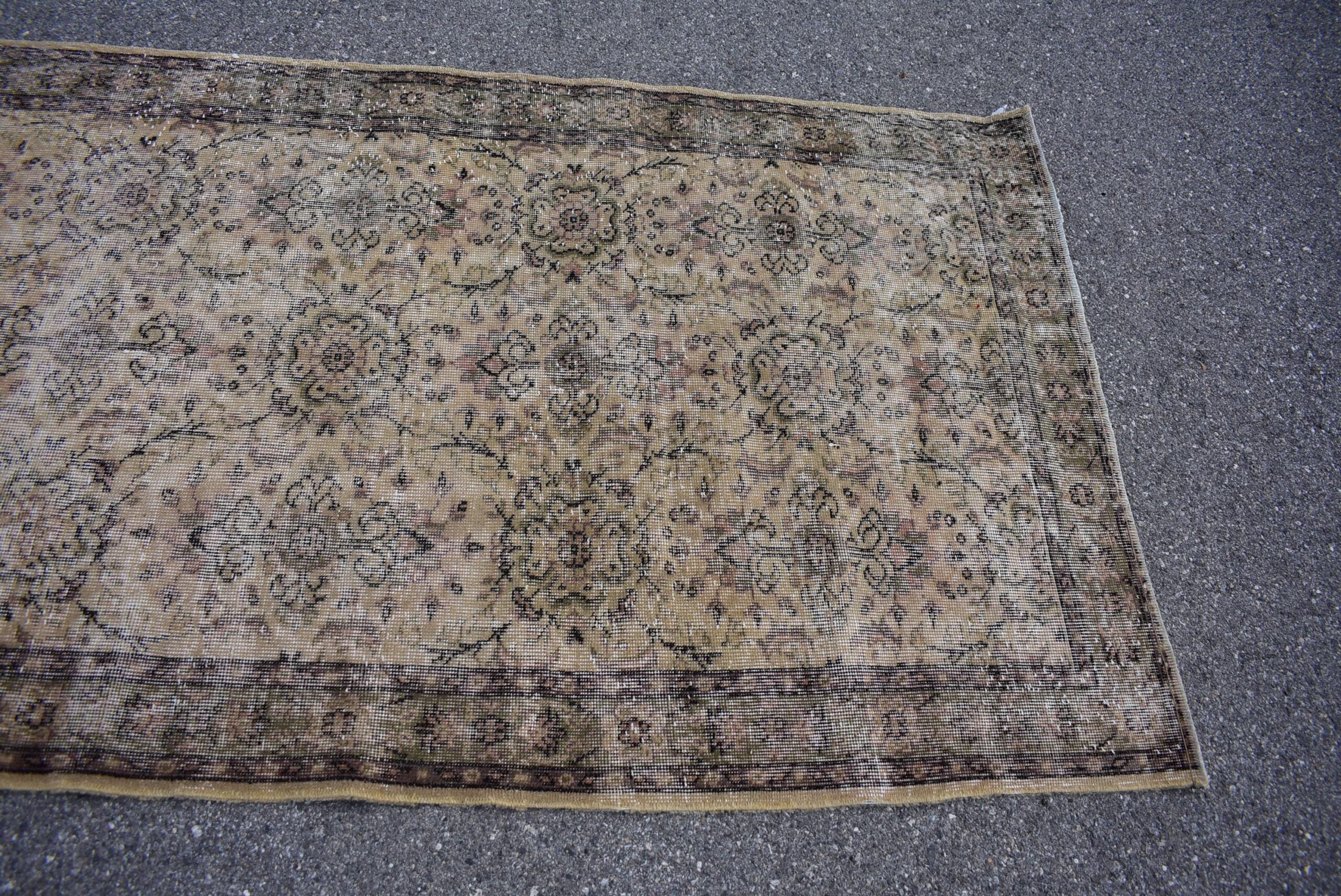 Beautiful and one-of-a-kind 4.1 ft. x 6.8 ft. (126 cm x 207 cm) vintage Turkish rug hand-knotted in Turkey from organic wool. This is an authentic vintage Turkish rug from the 1970s that has worn admirably to perfection.