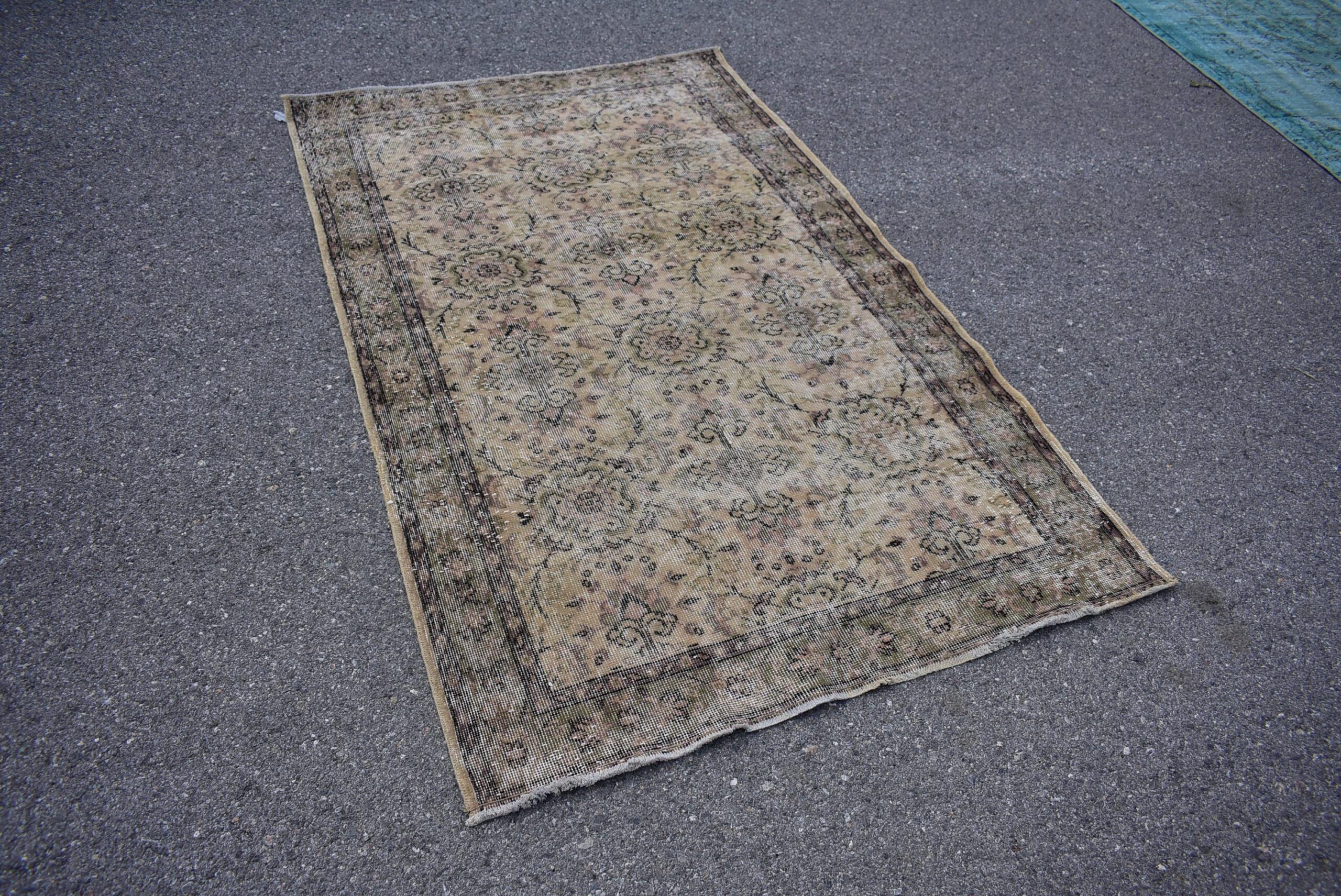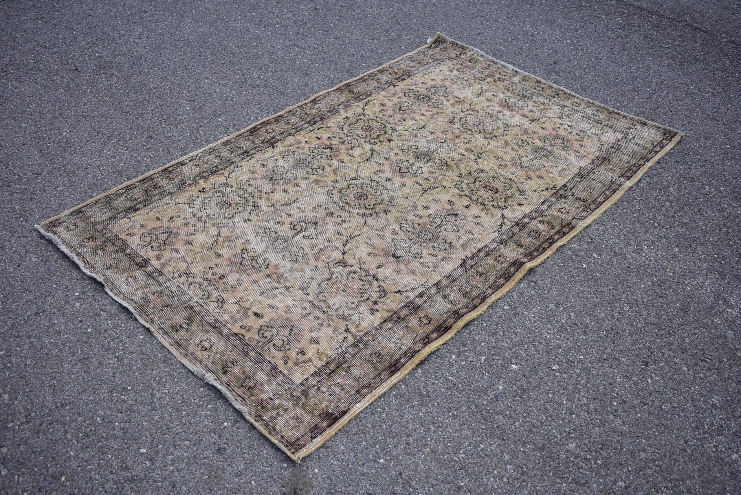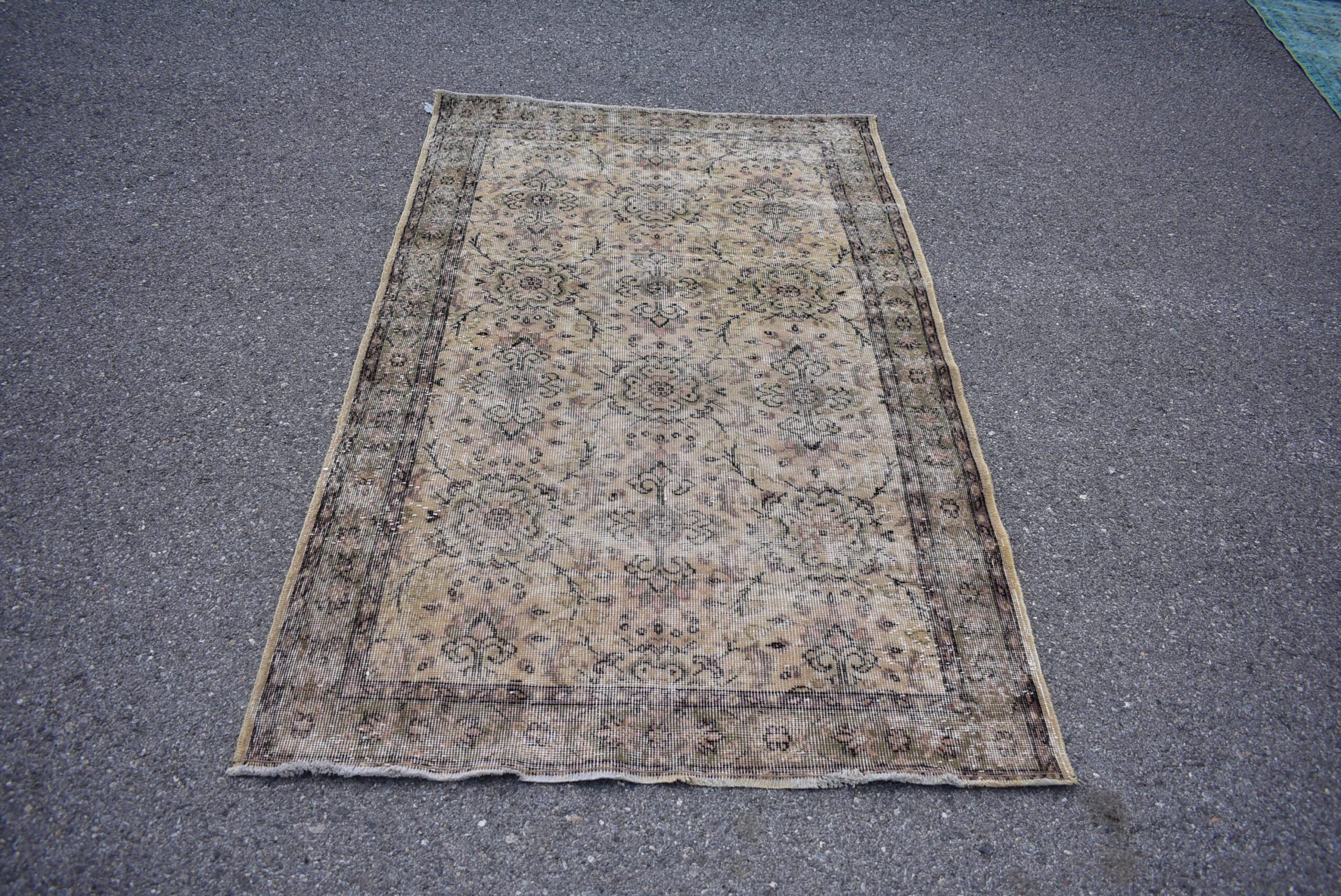 Beautiful and one-of-a-kind 4.1 ft. x 6.8 ft. (126 cm x 207 cm) vintage Turkish rug hand-knotted in Turkey from organic wool. This is an authentic vintage Turkish rug from the 1970s that has worn admirably to perfection.