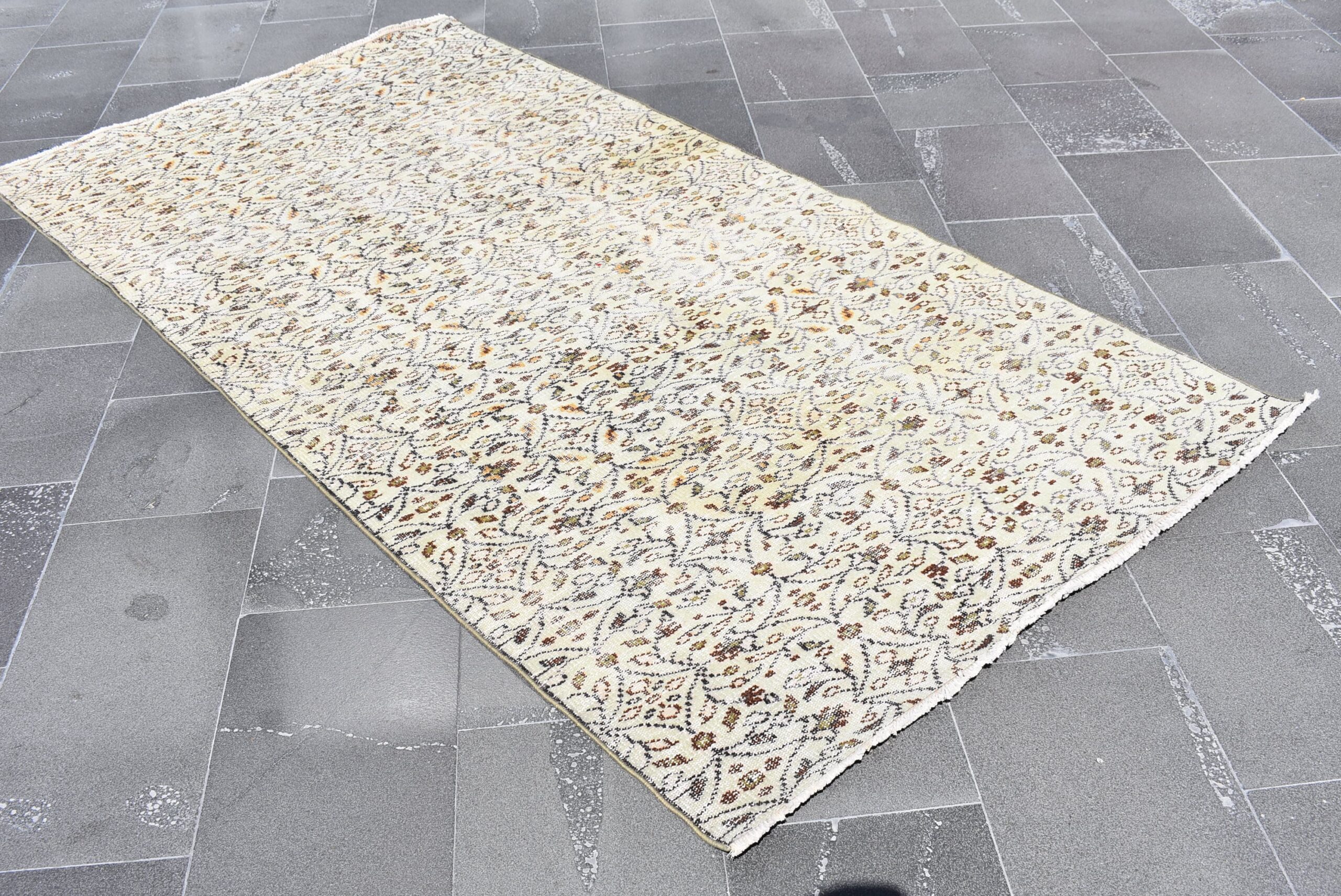 Beautiful and one-of-a-kind 4.1 ft. x 8.1 ft. (125 cm x 247 cm) vintage Turkish rug hand-knotted in Turkey from organic wool. This is an authentic vintage Turkish rug from the 1980s that has worn admirably to perfection.