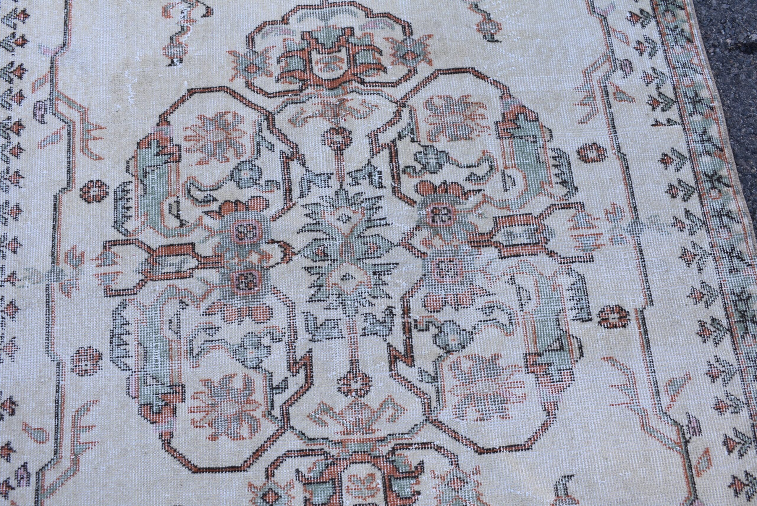 This is a vintage Turkish rug hand-knotted in a small village in Turkey by skilled Anatolian women during around the 1990s. It is made from natural wool (sheep) and dyed using all-natural (vegetable) dyes. Natural materials are more durable than synthetic materials guaranteeing a rug that can last for years while natural dyes provide colors that gets more beautiful as years pass by especially when in direct sunlight.