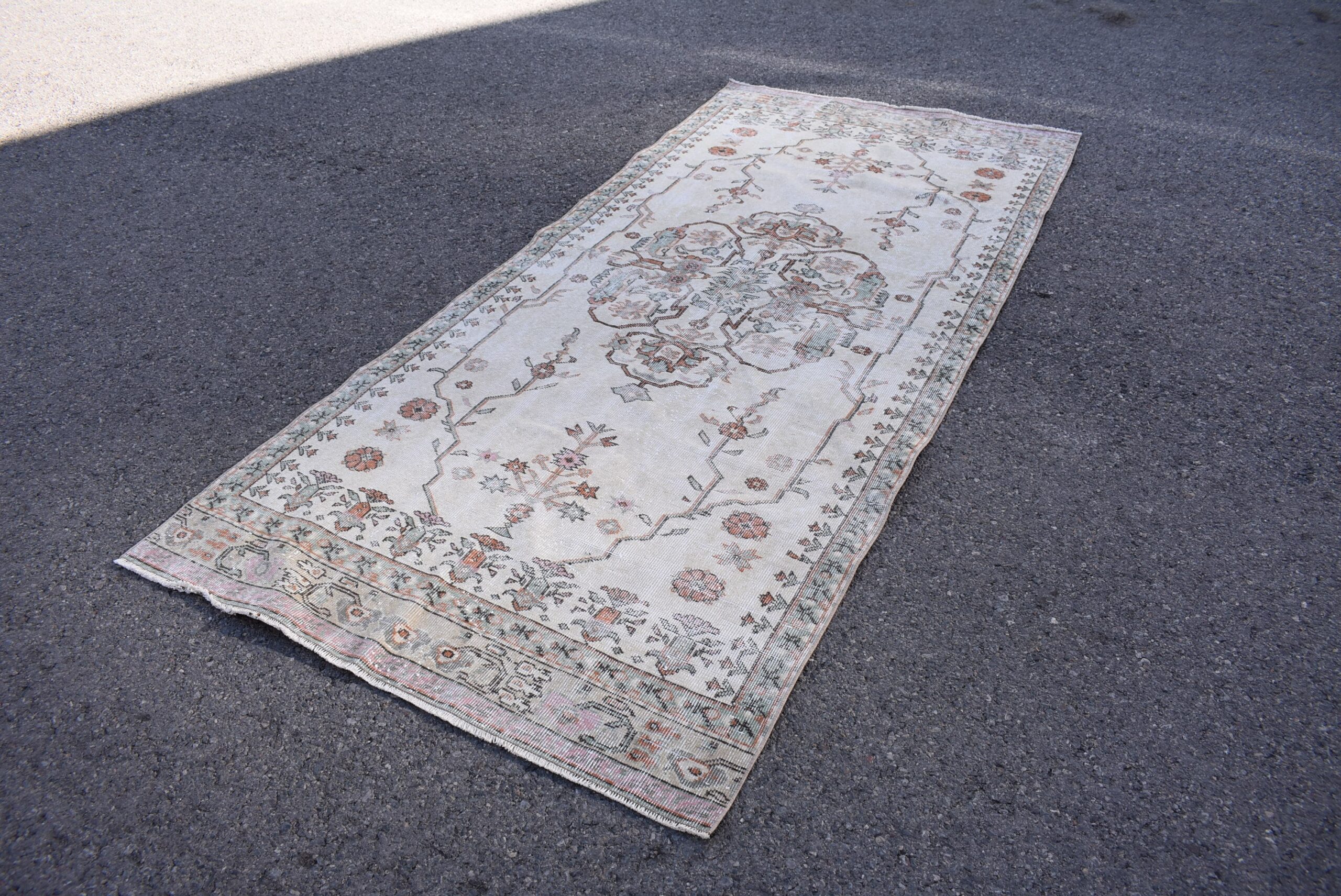 Lovely and unique 4.1 ft. x 9.3 ft. (125 cm x 282 cm) vintage Turkish rug hand-knotted in Turkey from organic wool. This is an authentic vintage Turkish rug from the 1990s that has worn beautifully to perfection.
