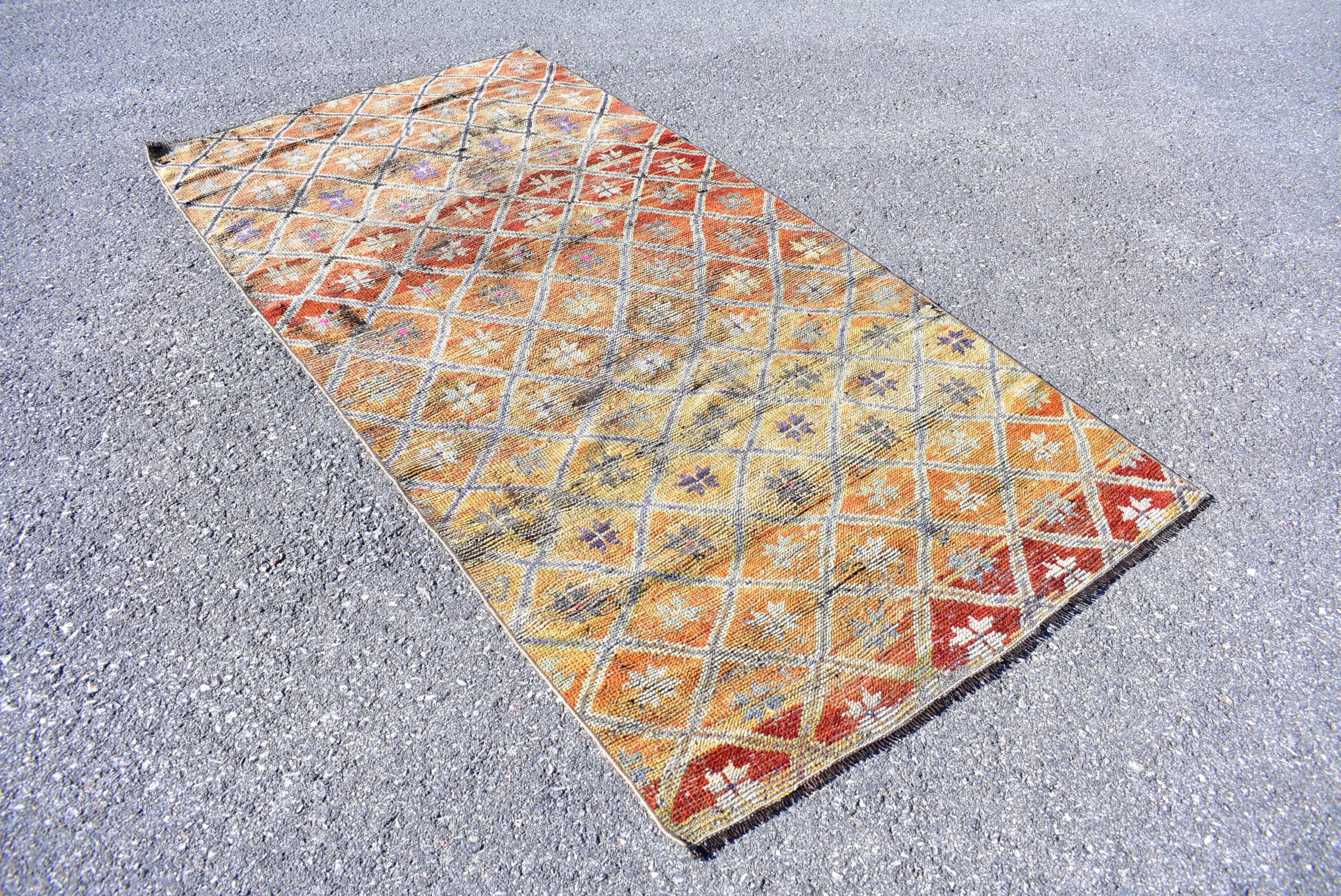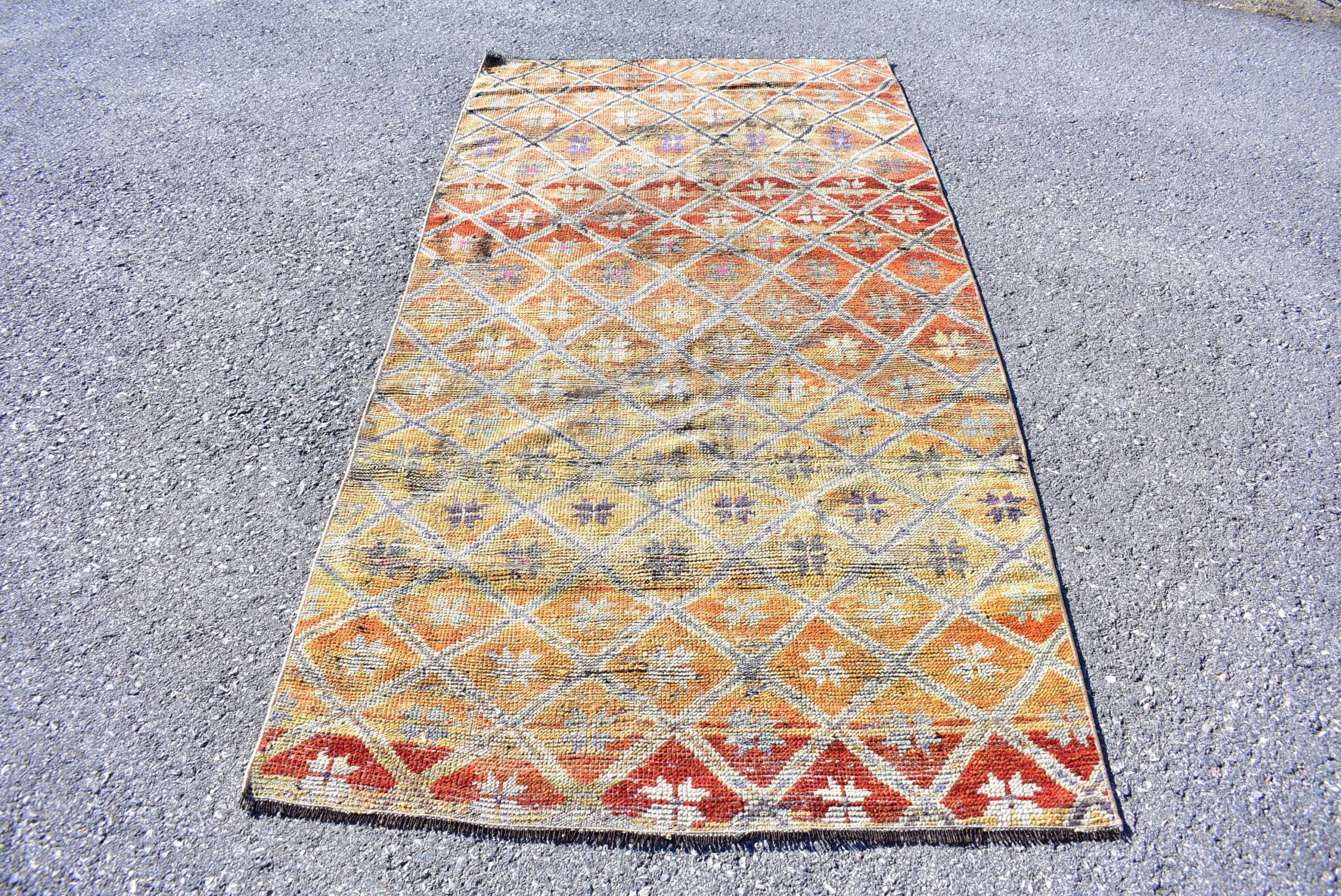 Lovely and unique 4.2 ft. x 8.3 ft. (128 cm x 254 cm) vintage Turkish rug hand-knotted in Turkey from organic wool. This is an authentic vintage Turkish rug from the 1980s that has worn beautifully to perfection.