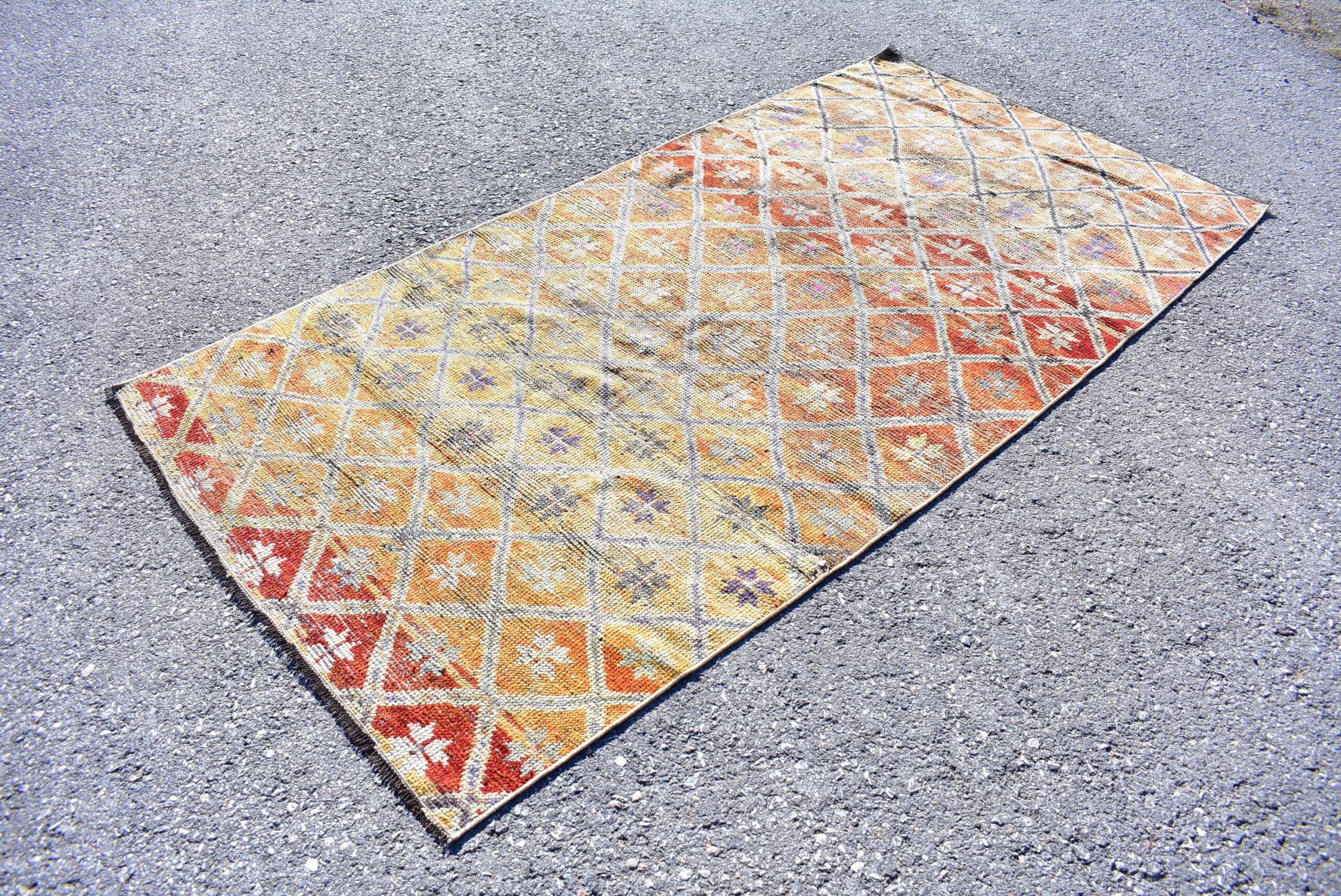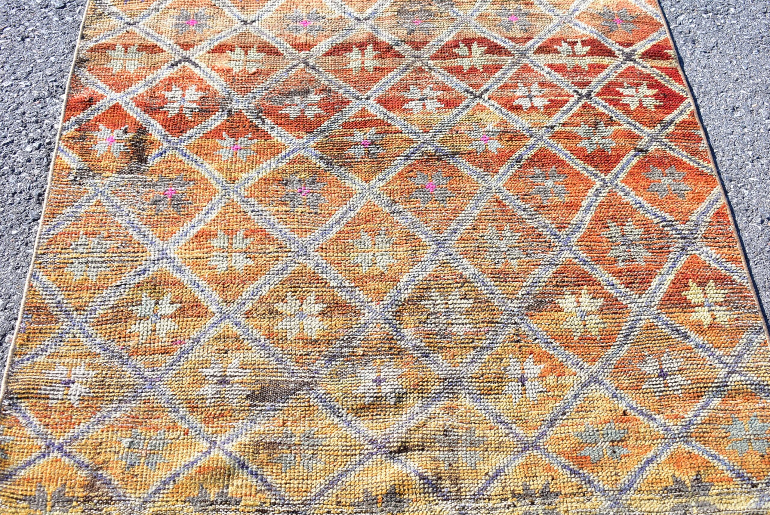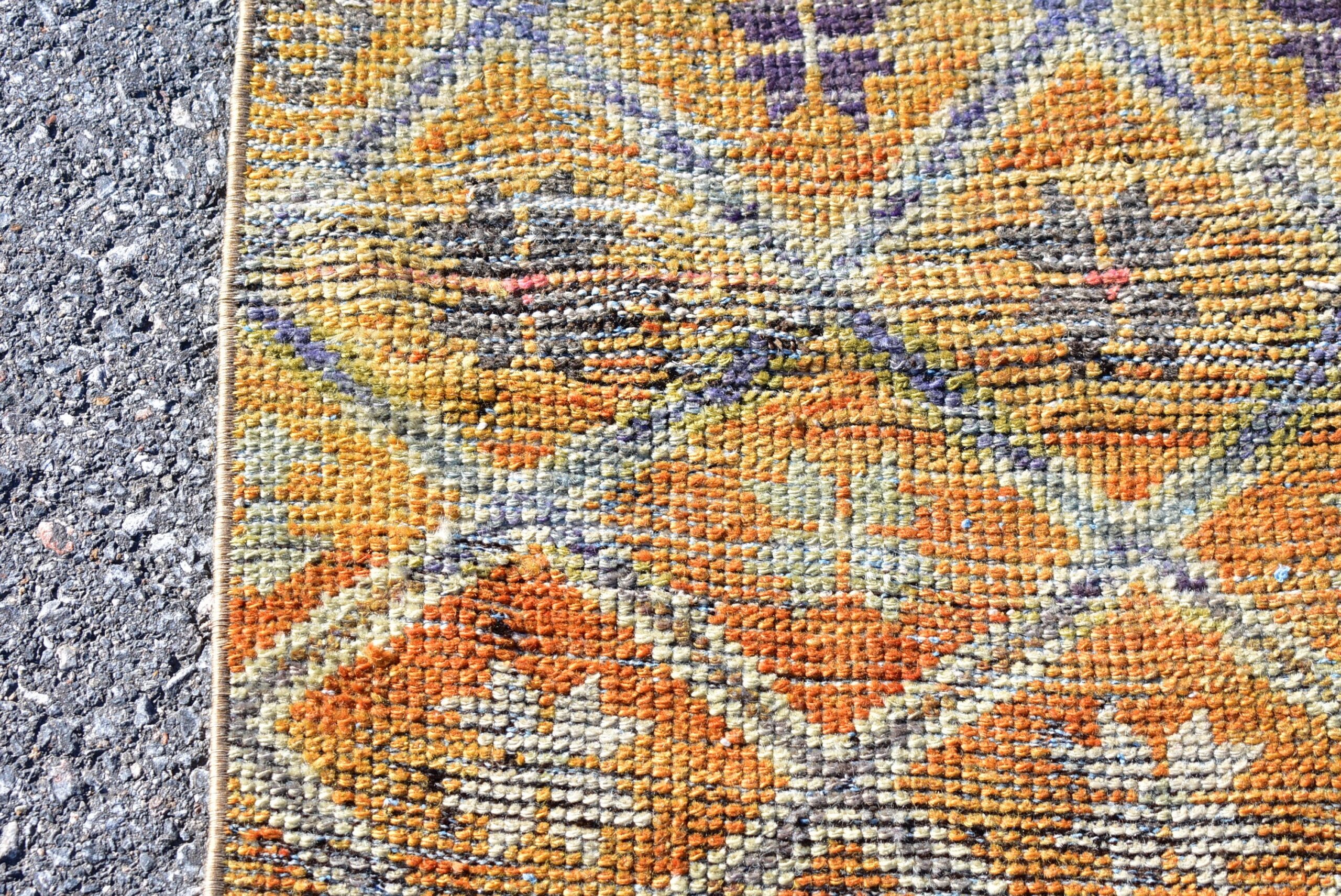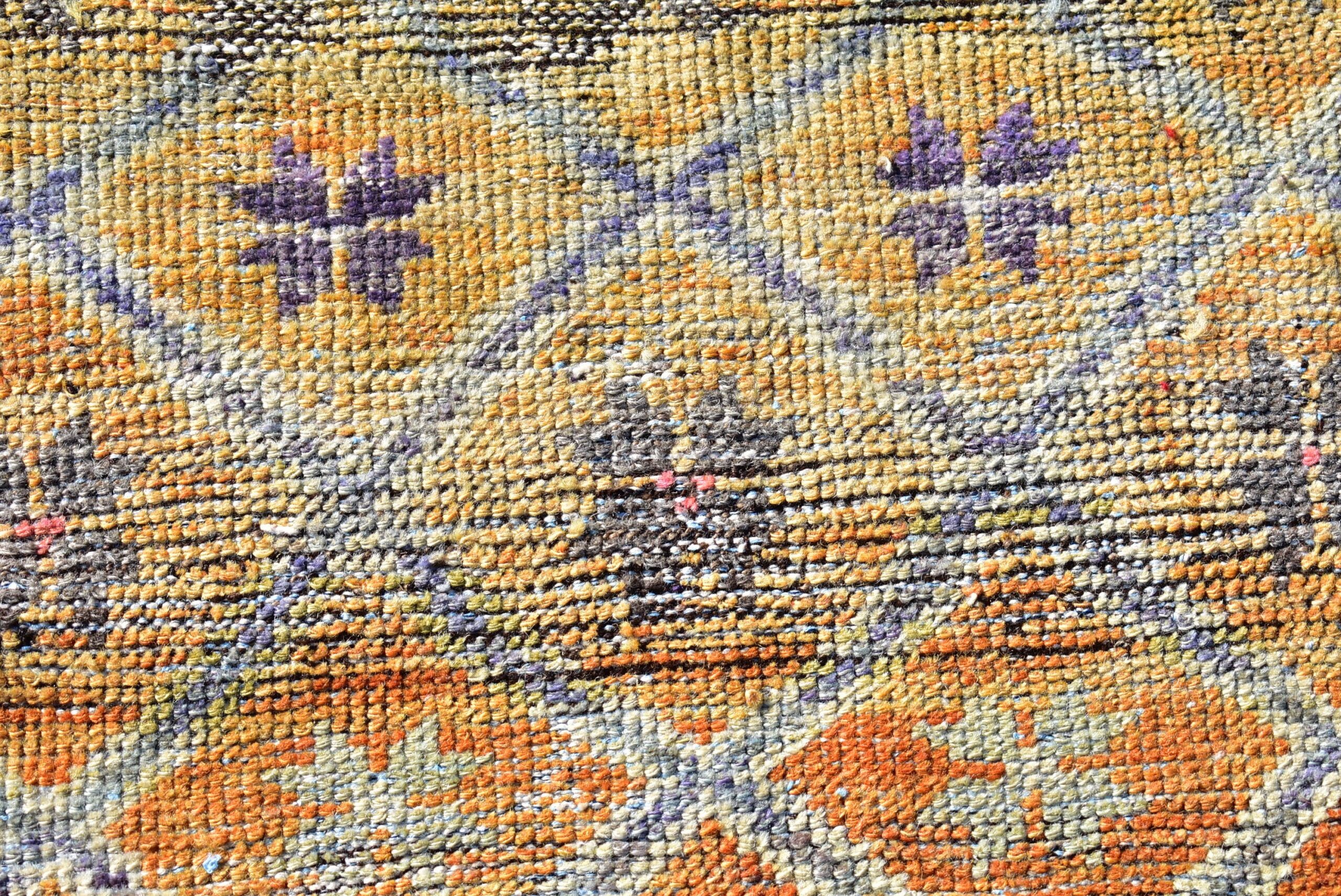 This is a vintage Turkish rug hand-knotted in a small village in Turkey by skilled Anatolian women during around the 1980s. It is made from natural wool (sheep) and dyed using all-natural (vegetable) dyes. Natural materials are more durable than synthetic materials guaranteeing a rug that can last for years while natural dyes provide colors that gets more beautiful as years pass by especially when in direct sunlight.