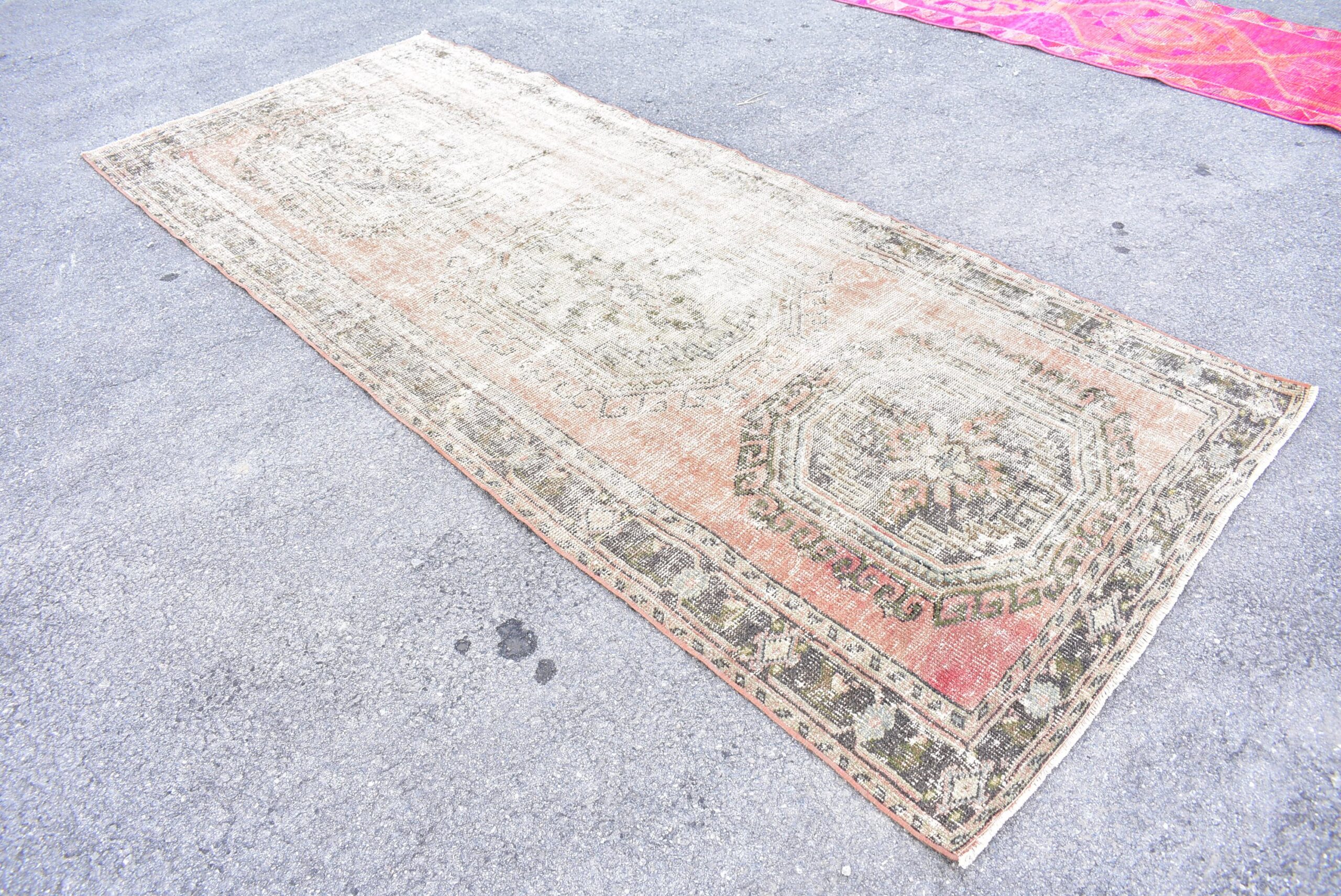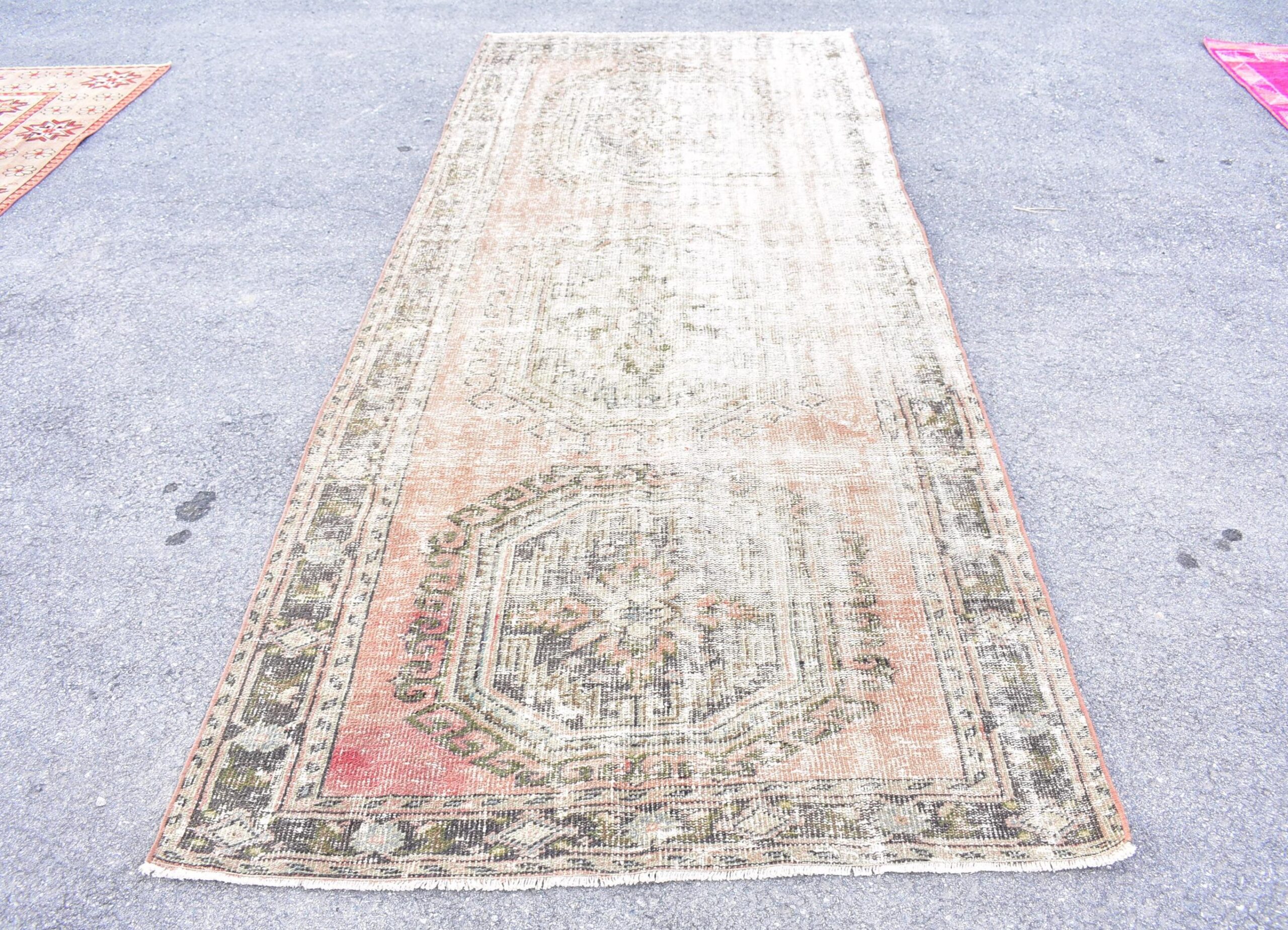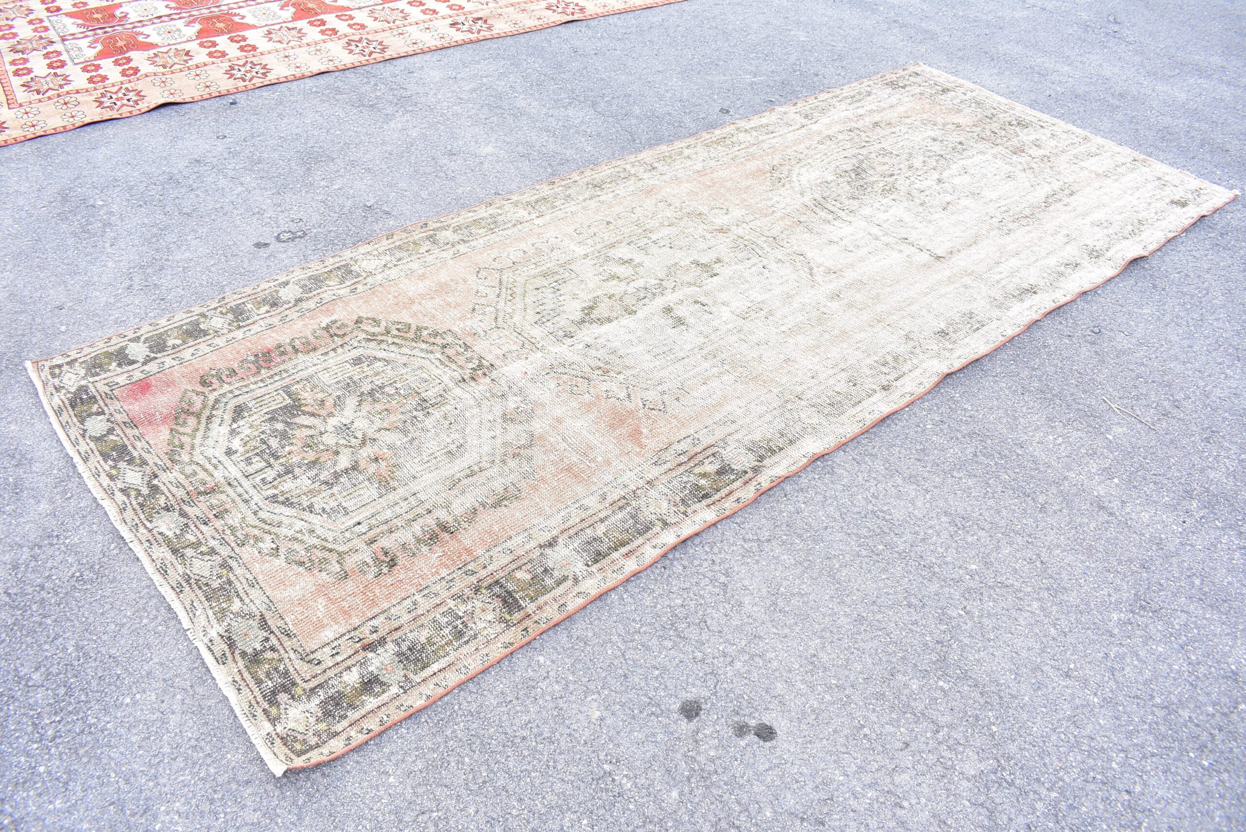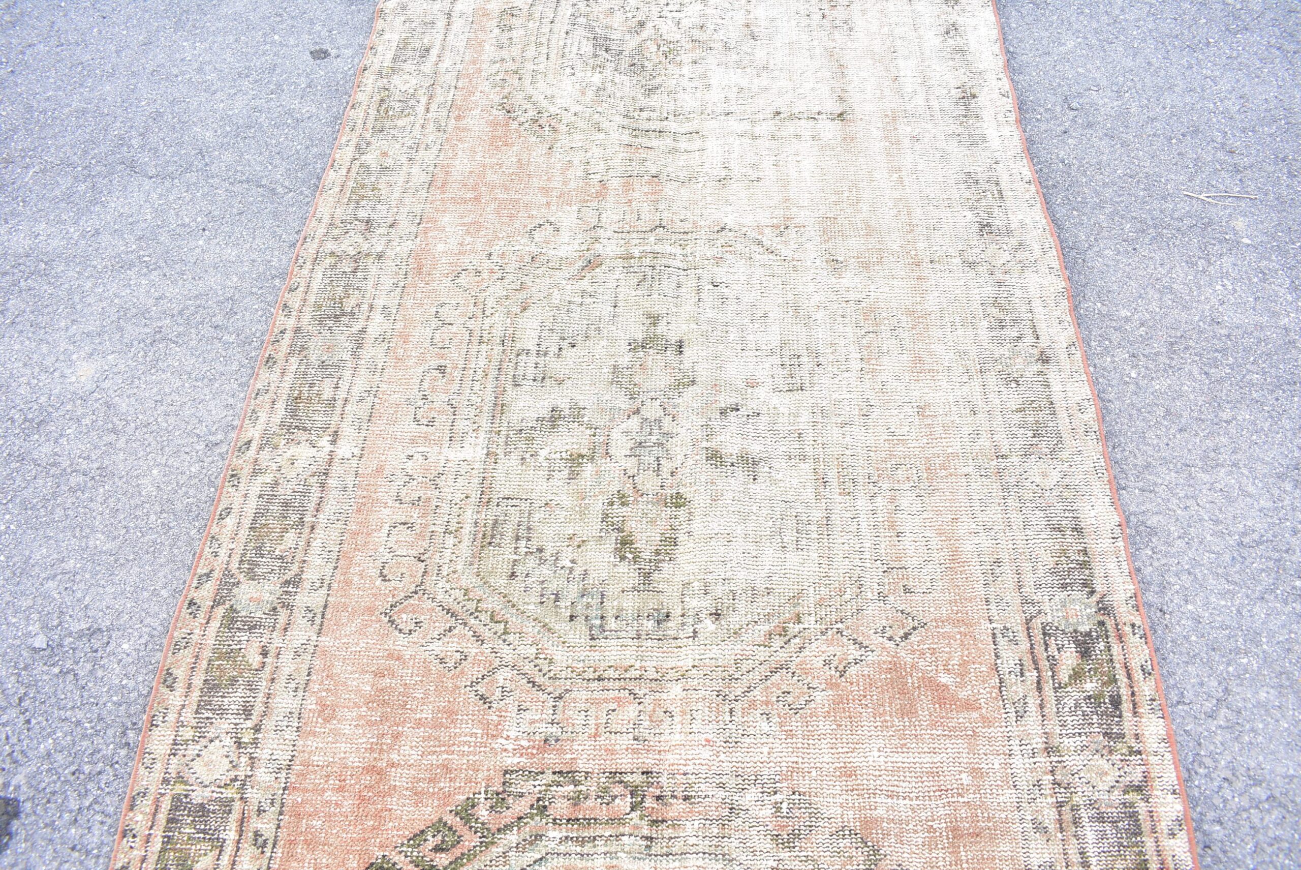Lovely and unique 4.3 ft. x 10.5 ft. (131 cm x 319 cm) vintage Turkish rug hand-knotted in Turkey from organic wool. This is an authentic vintage Turkish rug from the 1970s that has worn beautifully to perfection.