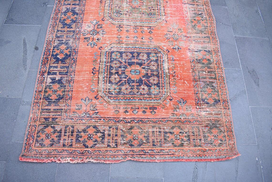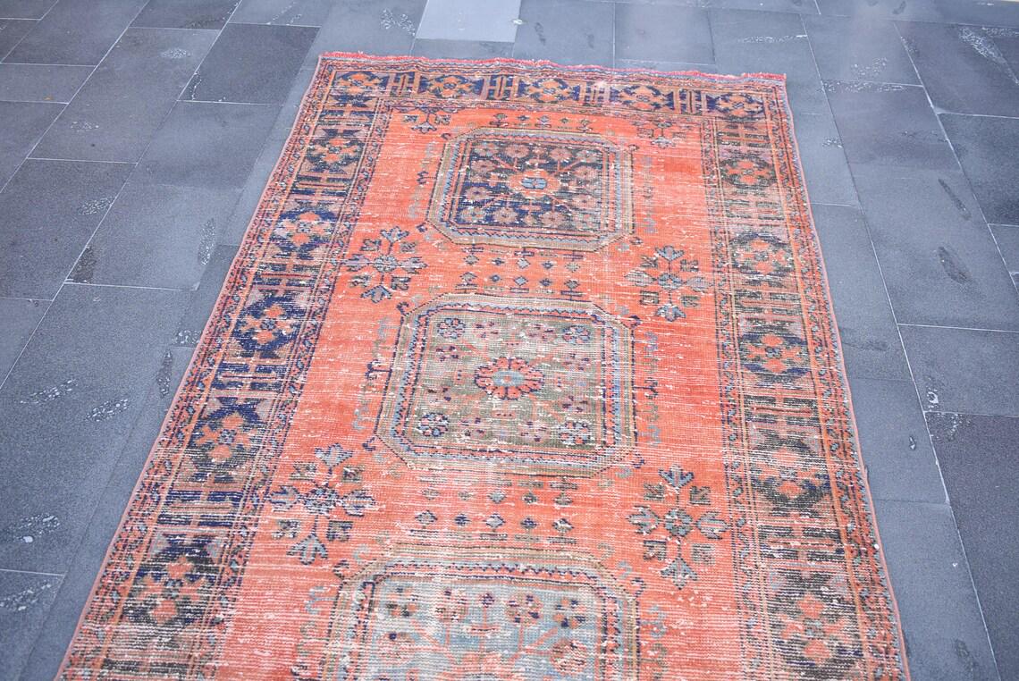 This is a vintage Turkish rug hand-knotted in a small village in Turkey by skilled Anatolian women during around the 1980s. It is made from natural wool (sheep) and dyed using all-natural (vegetable) dyes. Natural materials are more durable than synthetic materials guaranteeing a rug that can last for years while natural dyes provide colors that gets more beautiful as years pass by especially when in direct sunlight.